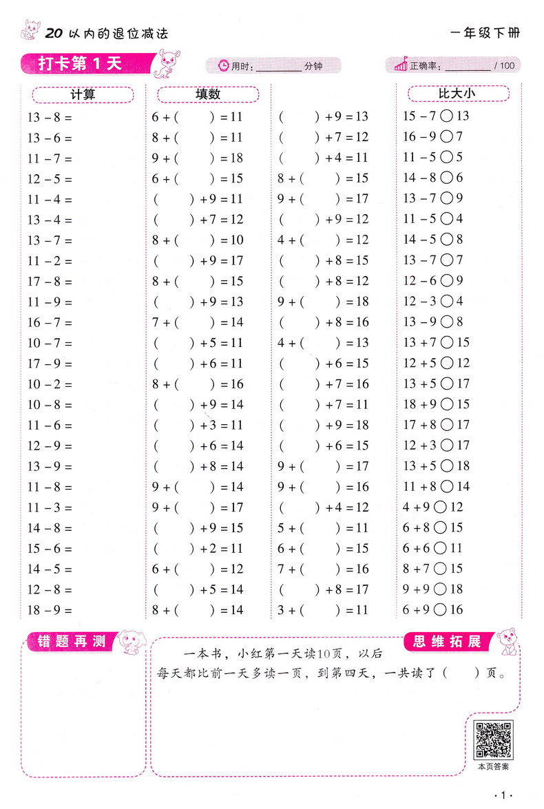 口算题10000道一年级下册每天100道小学生计算题口算速算专项训练