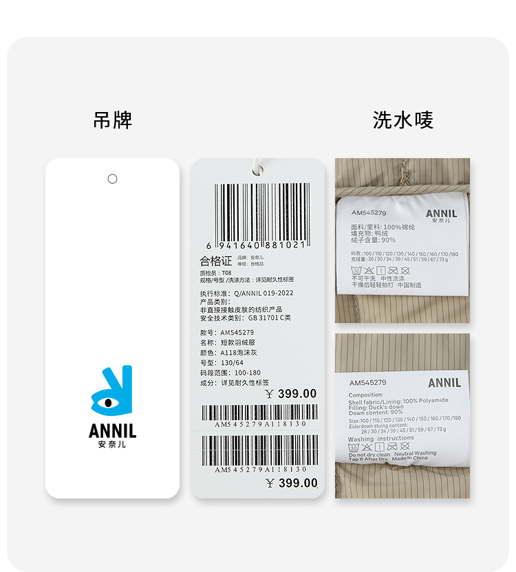 【实体店同款】男女童短款羽绒服冬季新款安奈儿童装AM545279