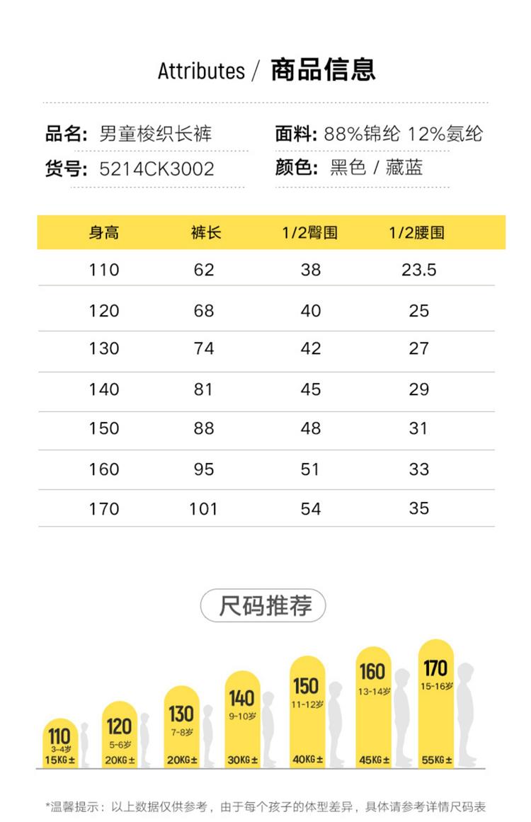 KIDS卡尔美童装男童运动裤中大童春季新款儿童休闲长裤