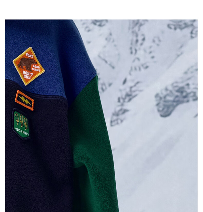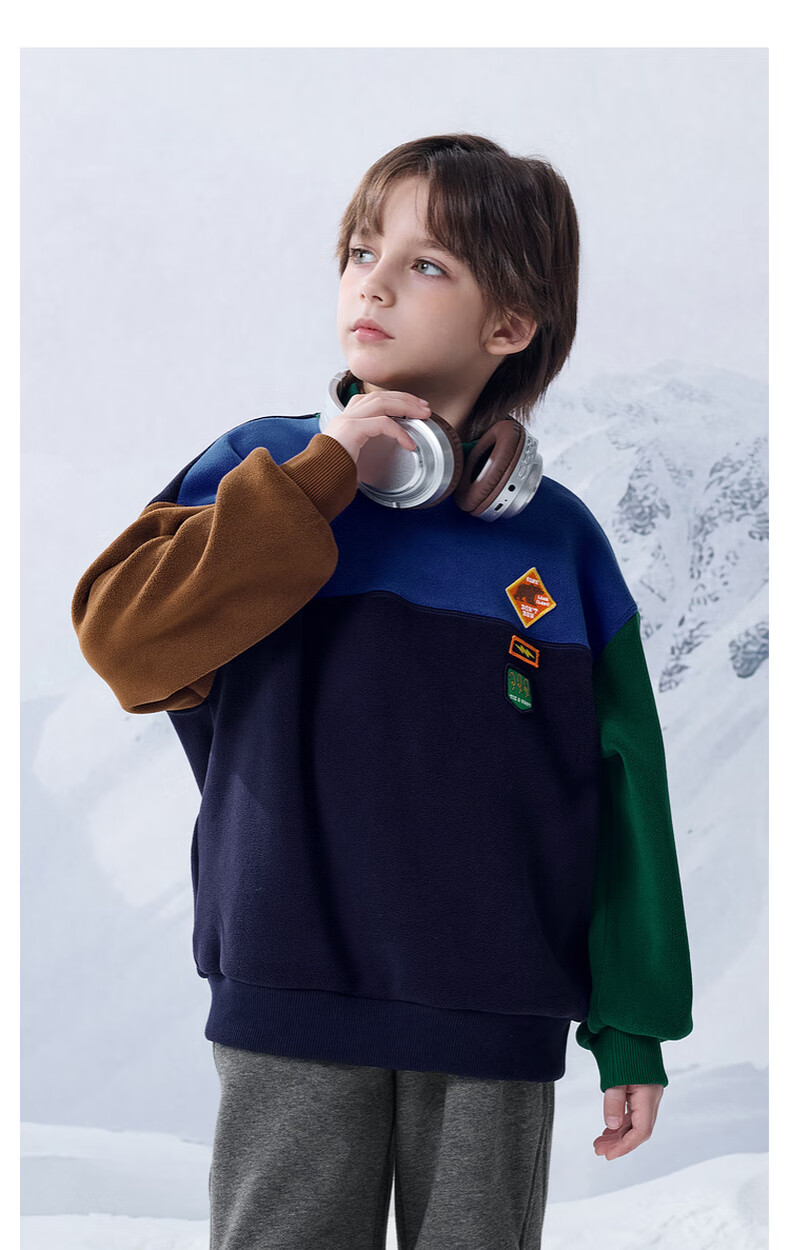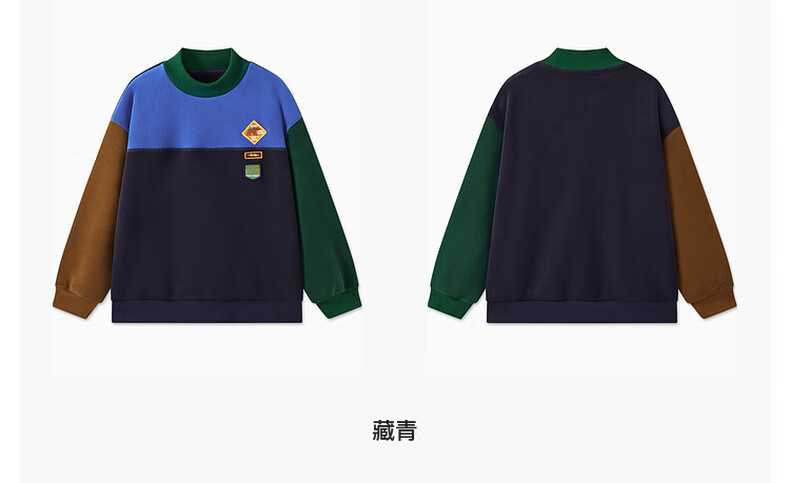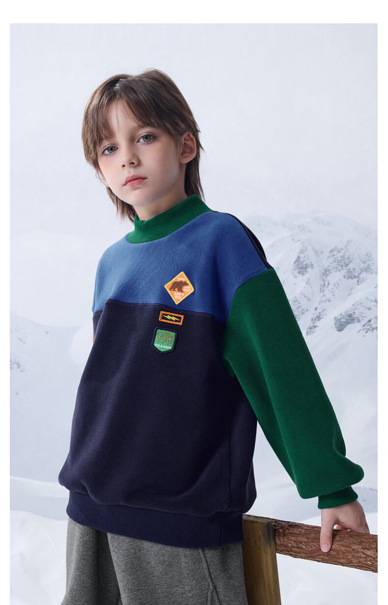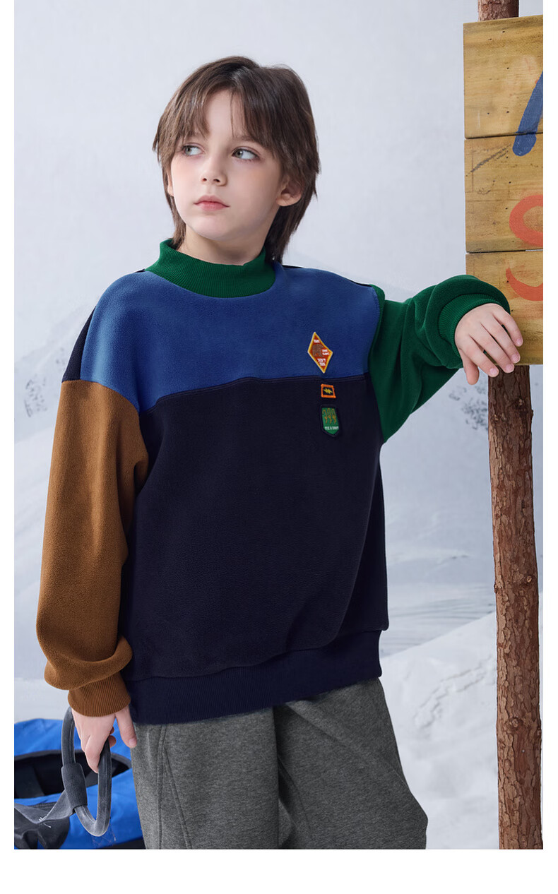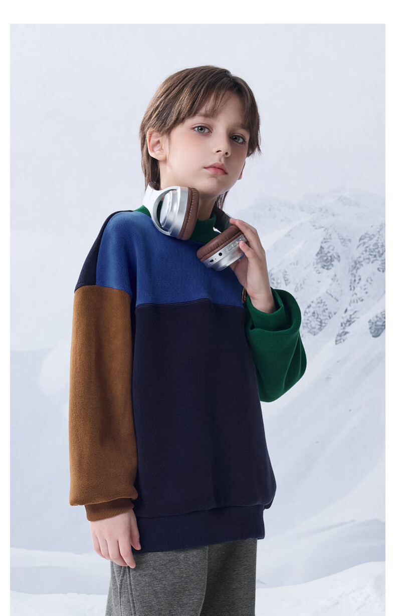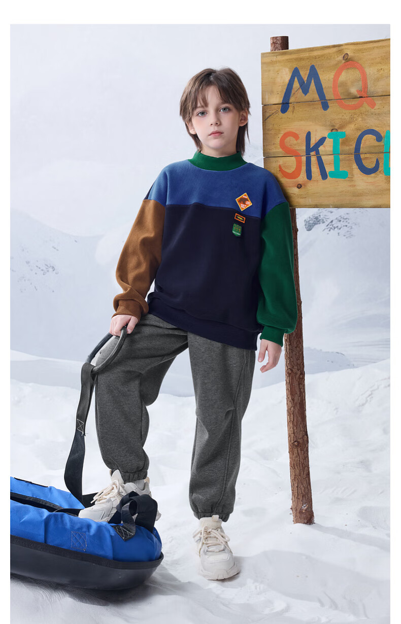 【MQD】冬季新品男大童撞色拼接加绒潮酷休闲半高领卫衣