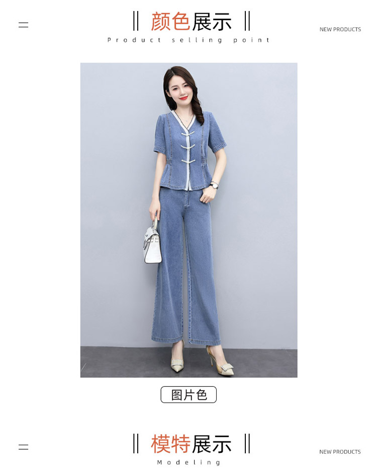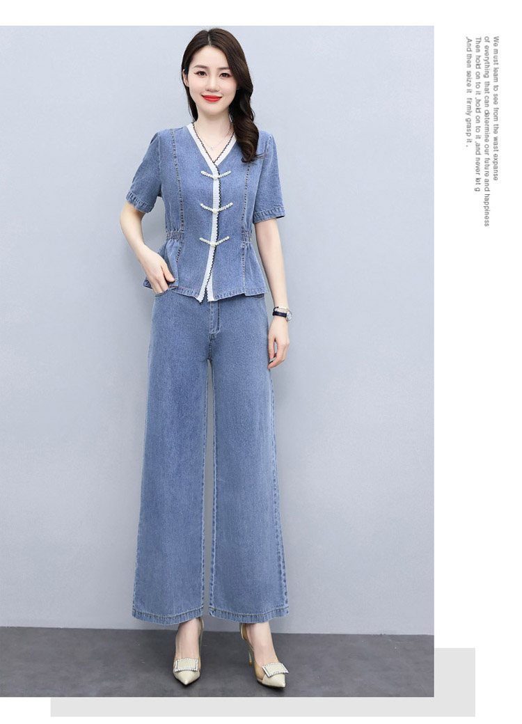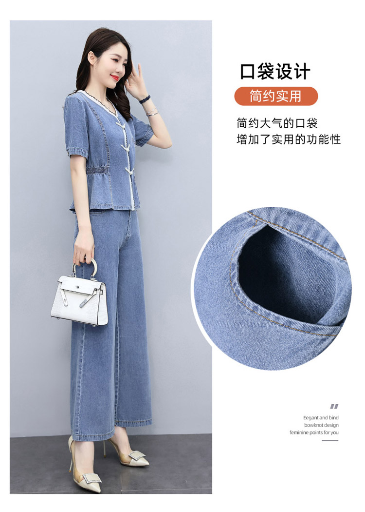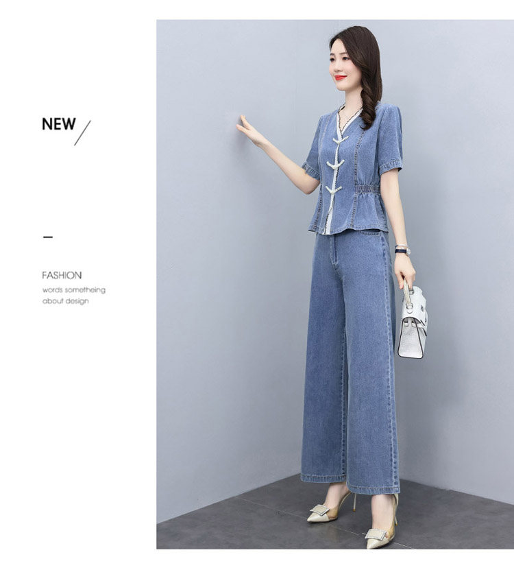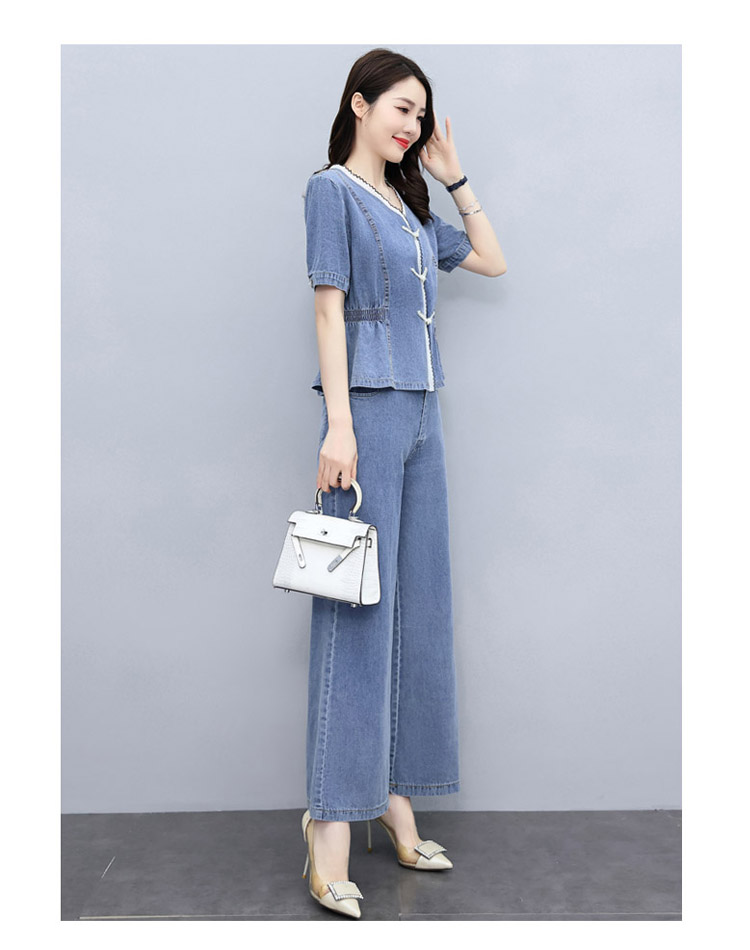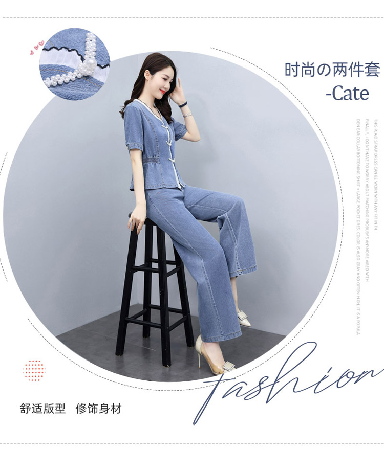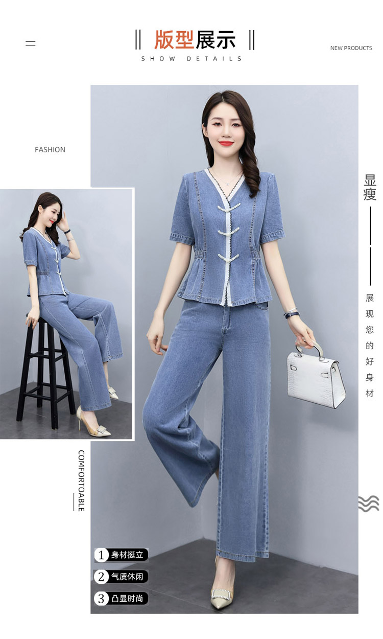 优雅修身,夏季花边牛仔时尚套装HR-XPHA10-2