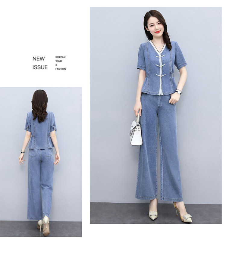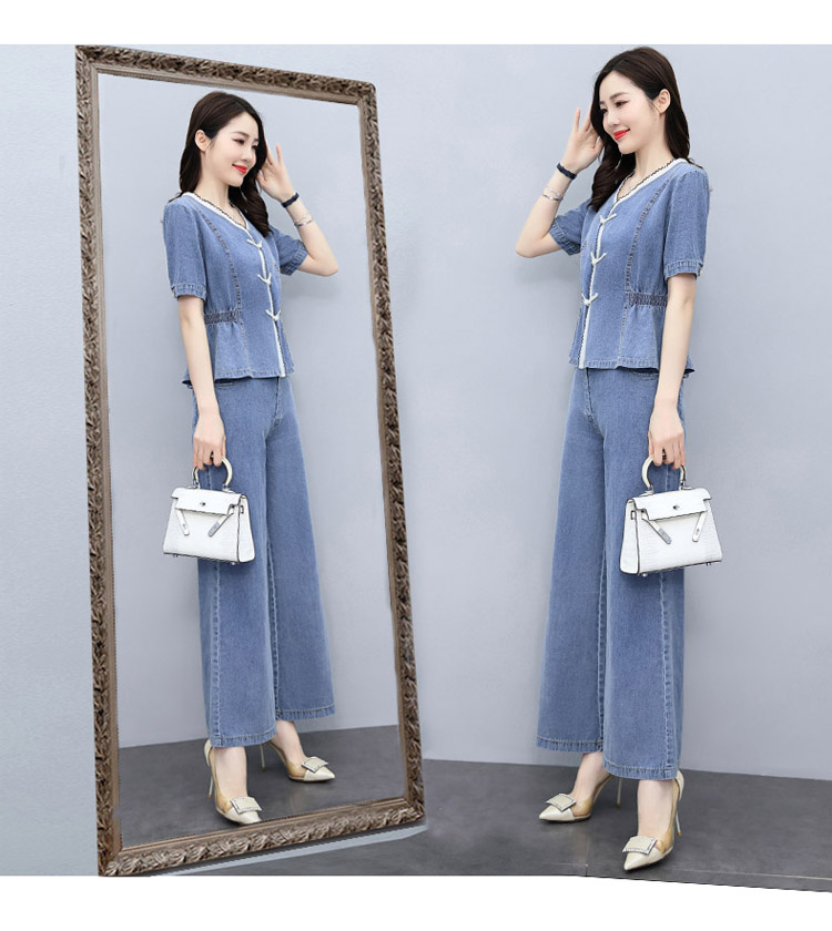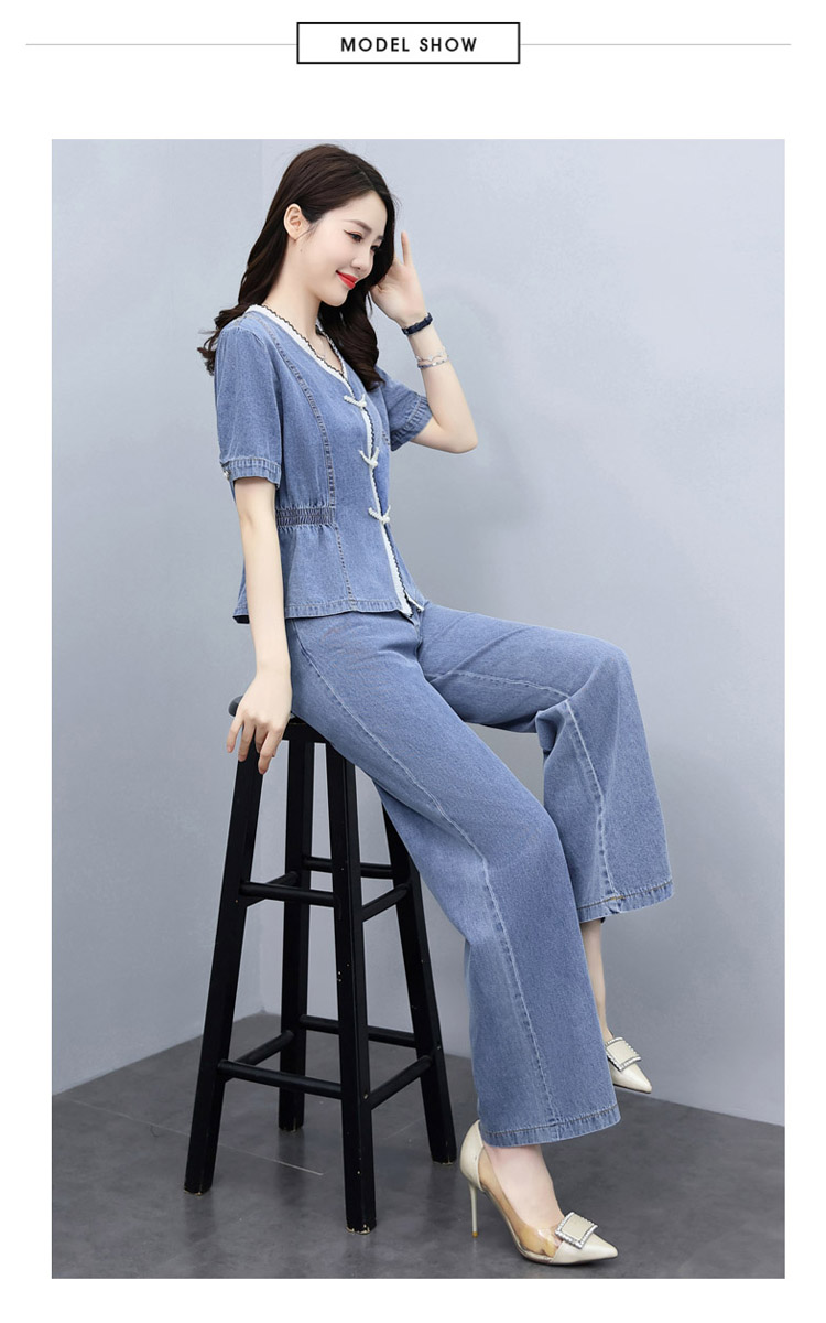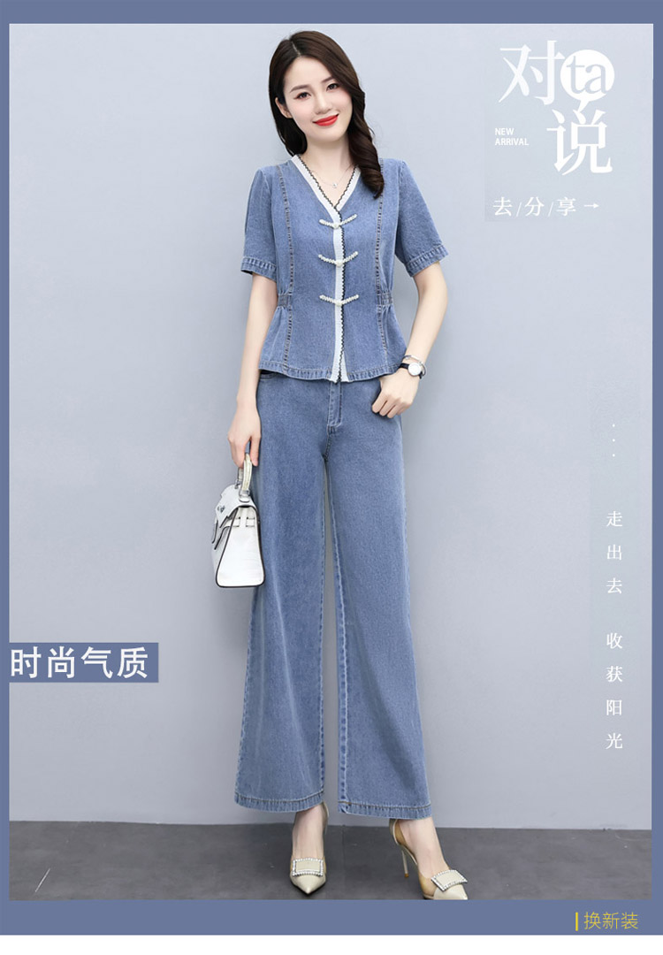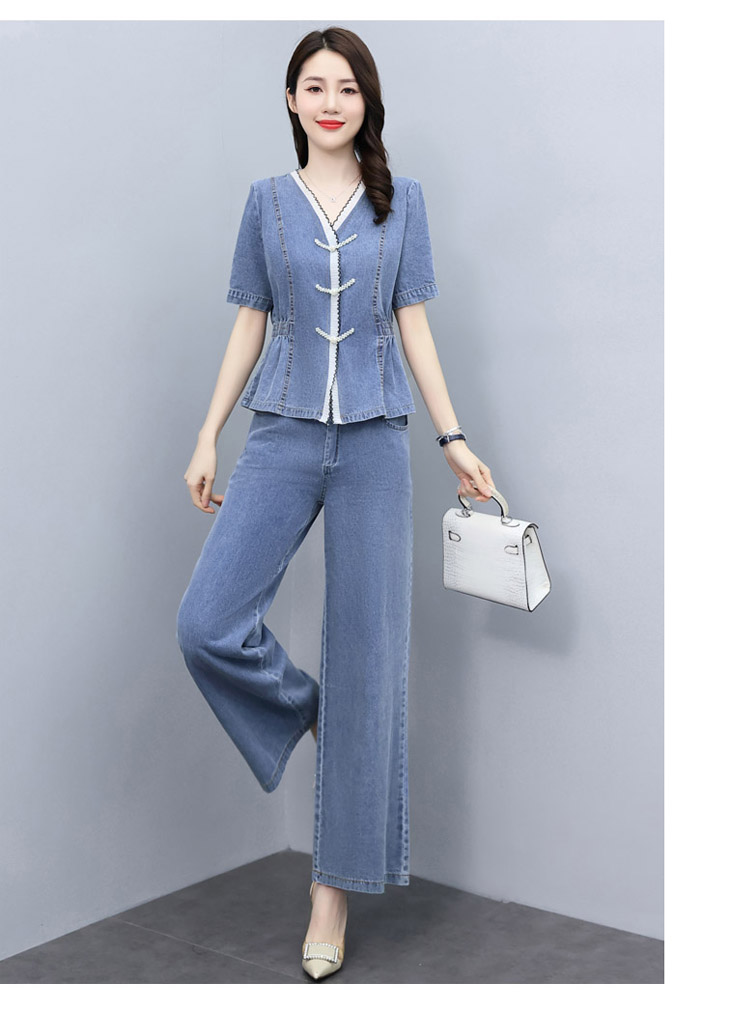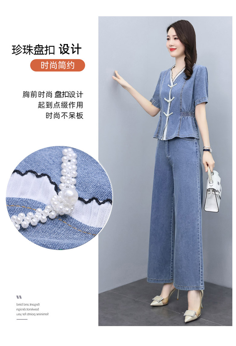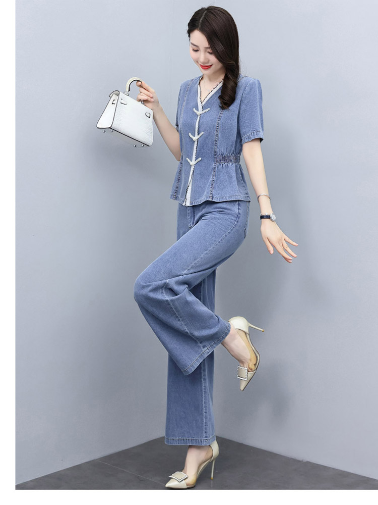 优雅修身,夏季花边牛仔时尚套装HR-XPHA10-2