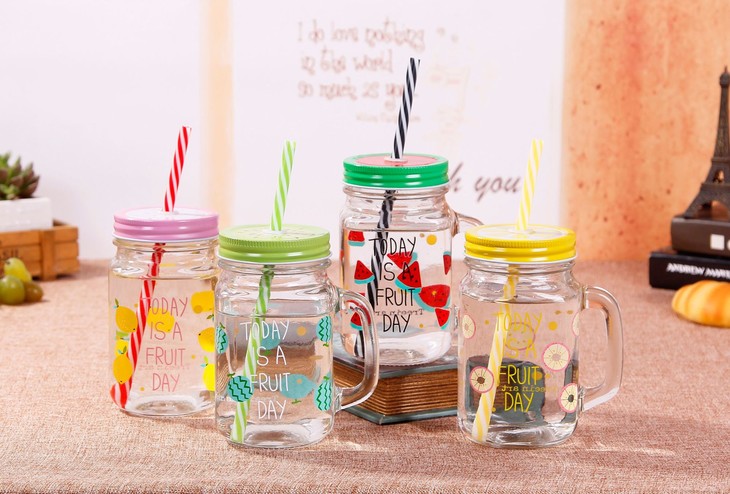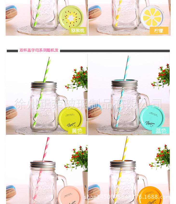 公鸡杯梅森杯饮料杯透明玻璃把手杯梅森瓶夏日柠檬杯子带灯