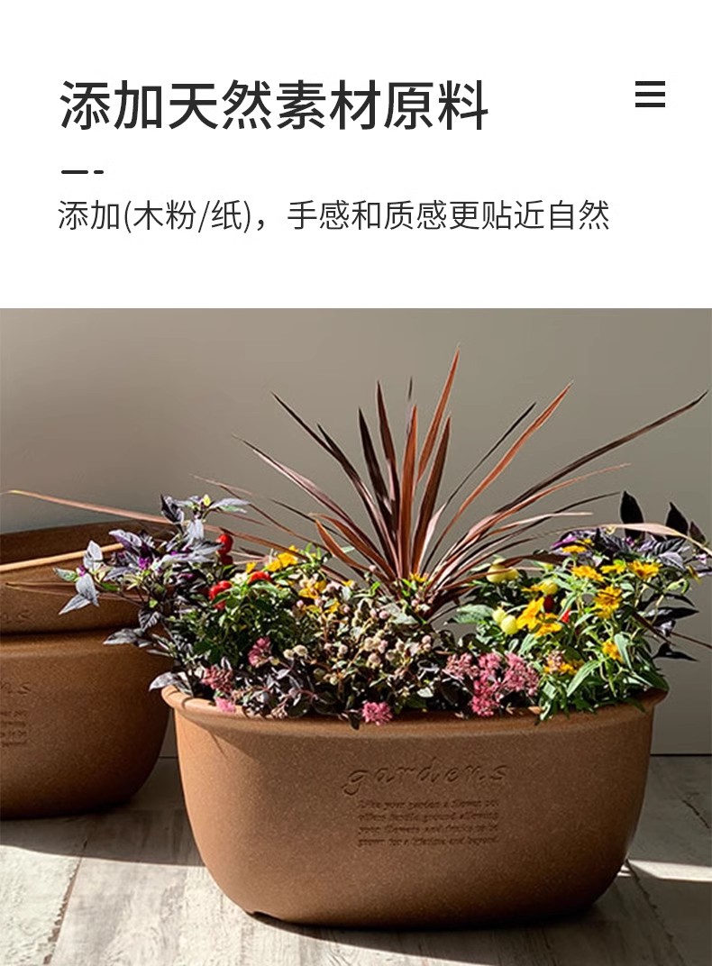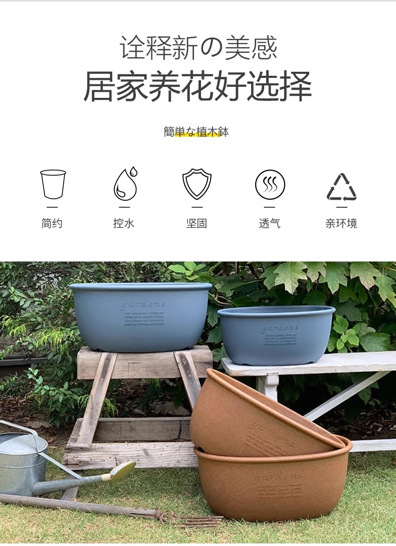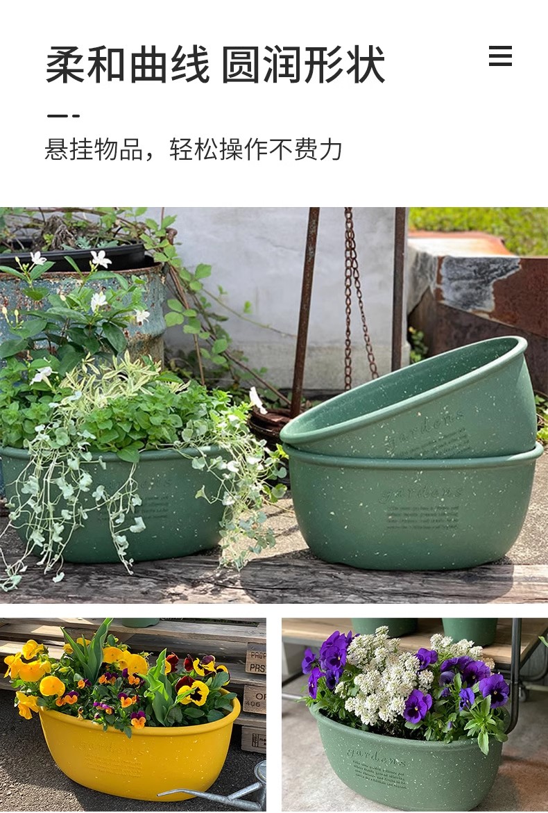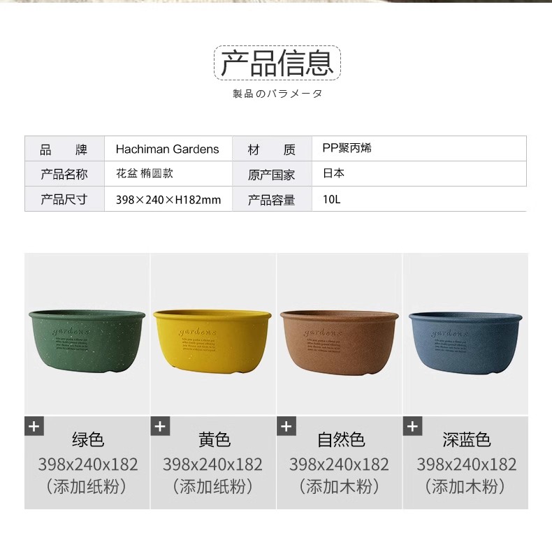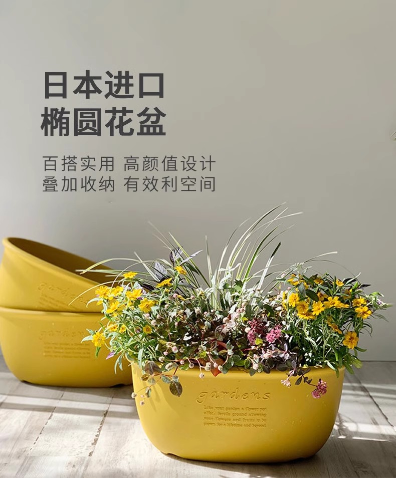 日本进口Hachiman Gardens花盆+托盘 椭圆形 398x240x182mm 黄色