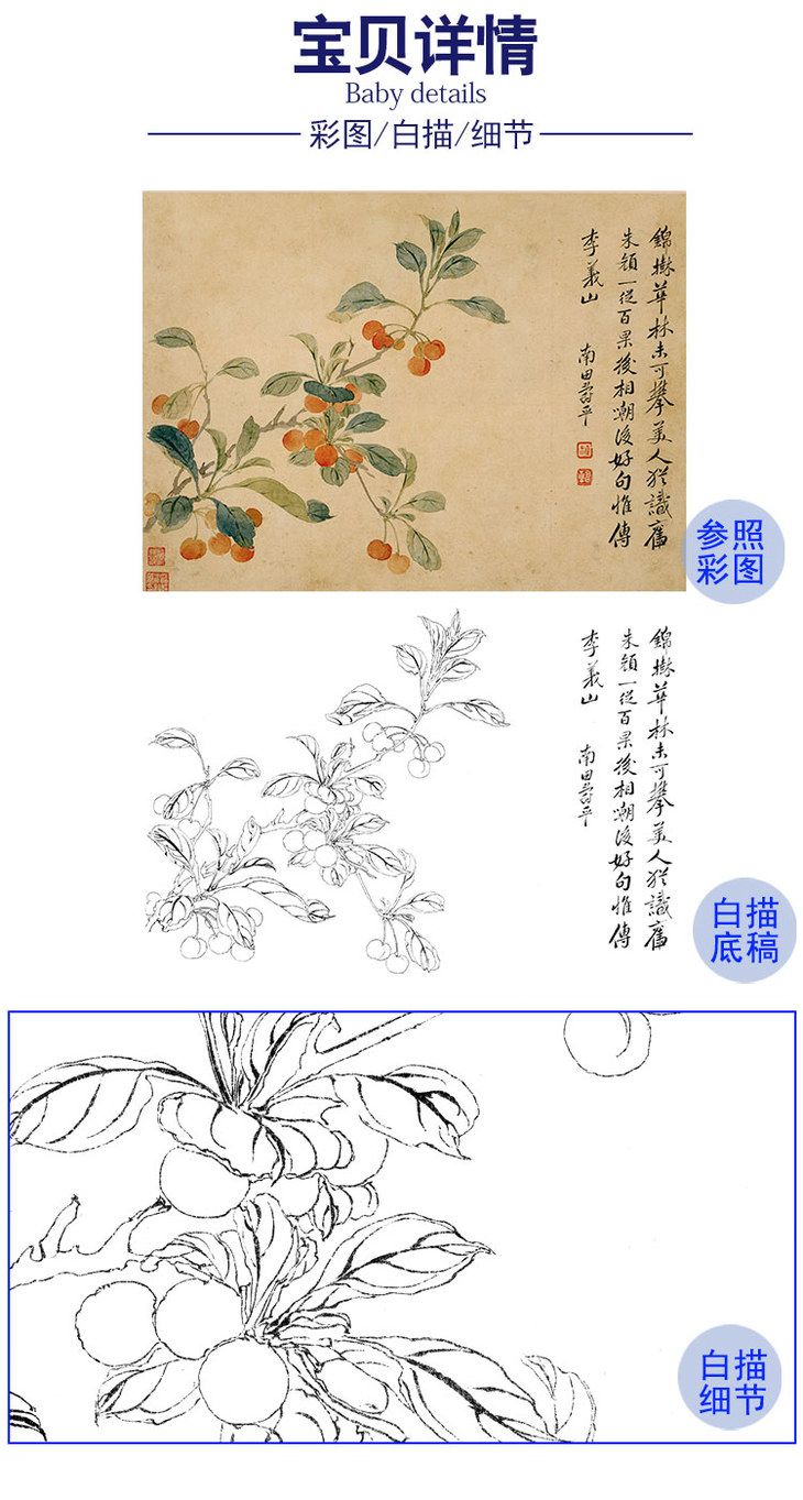 【长卷】工笔花鸟画白描底稿古画长卷恽寿平《百花图卷》多种白描尺寸可选G040