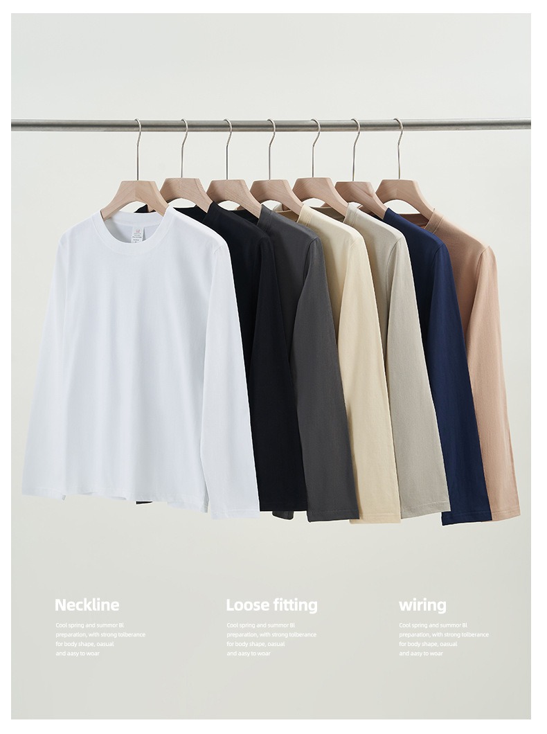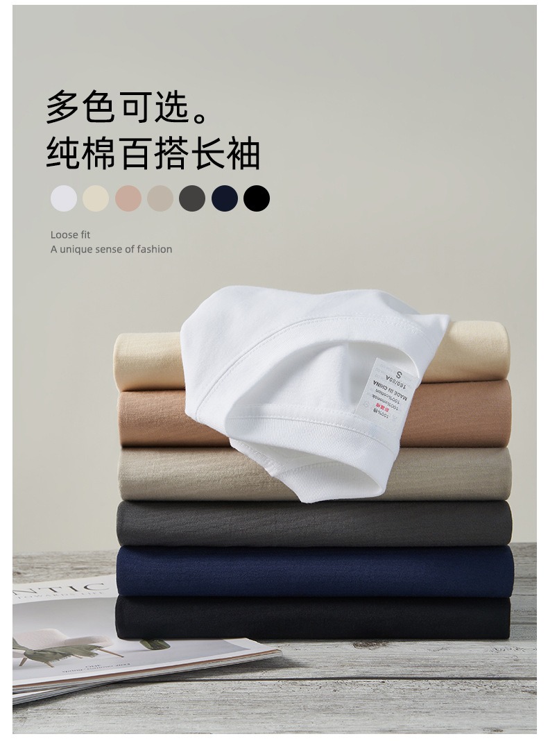 【220g重磅 7色可选 99元3件】质感纯棉圆领长袖T恤(选三件加入购物车一起付款)