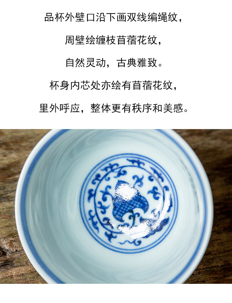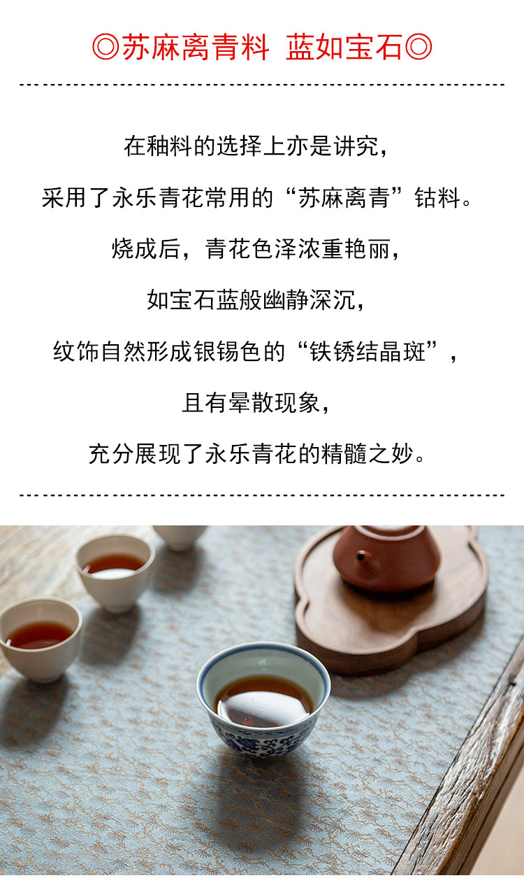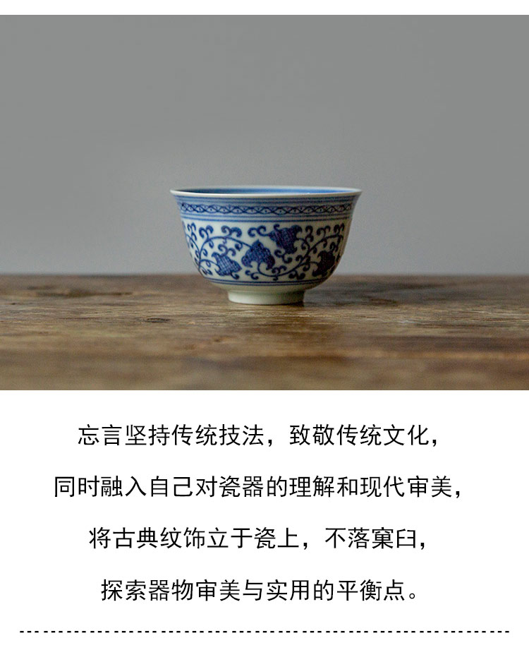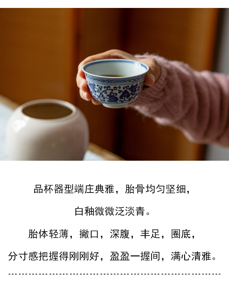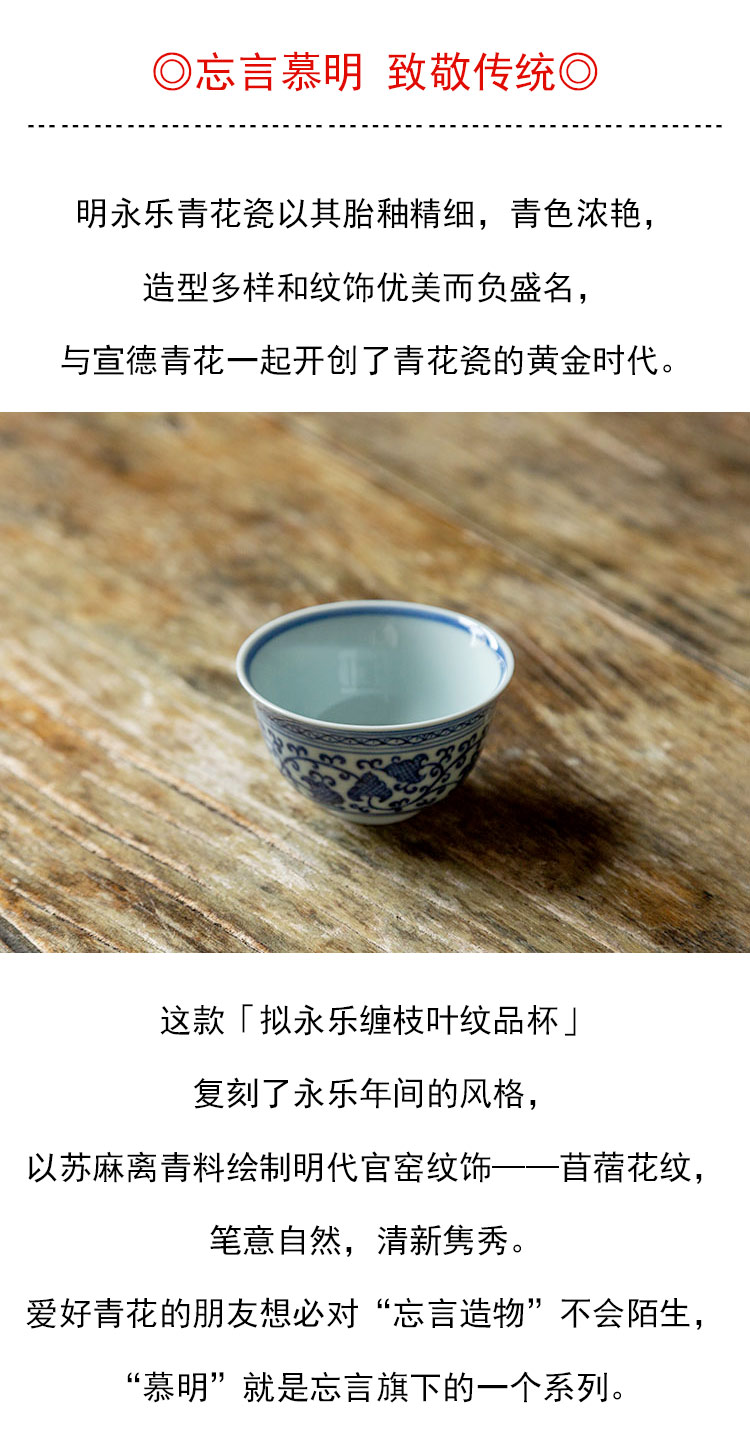 茶香记 拟永乐缠枝叶纹品杯 忘言慕明 青花瓷 清新隽秀 古典雅致