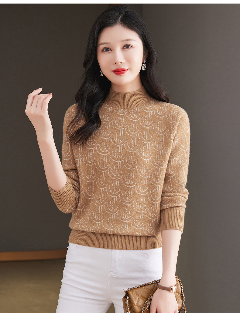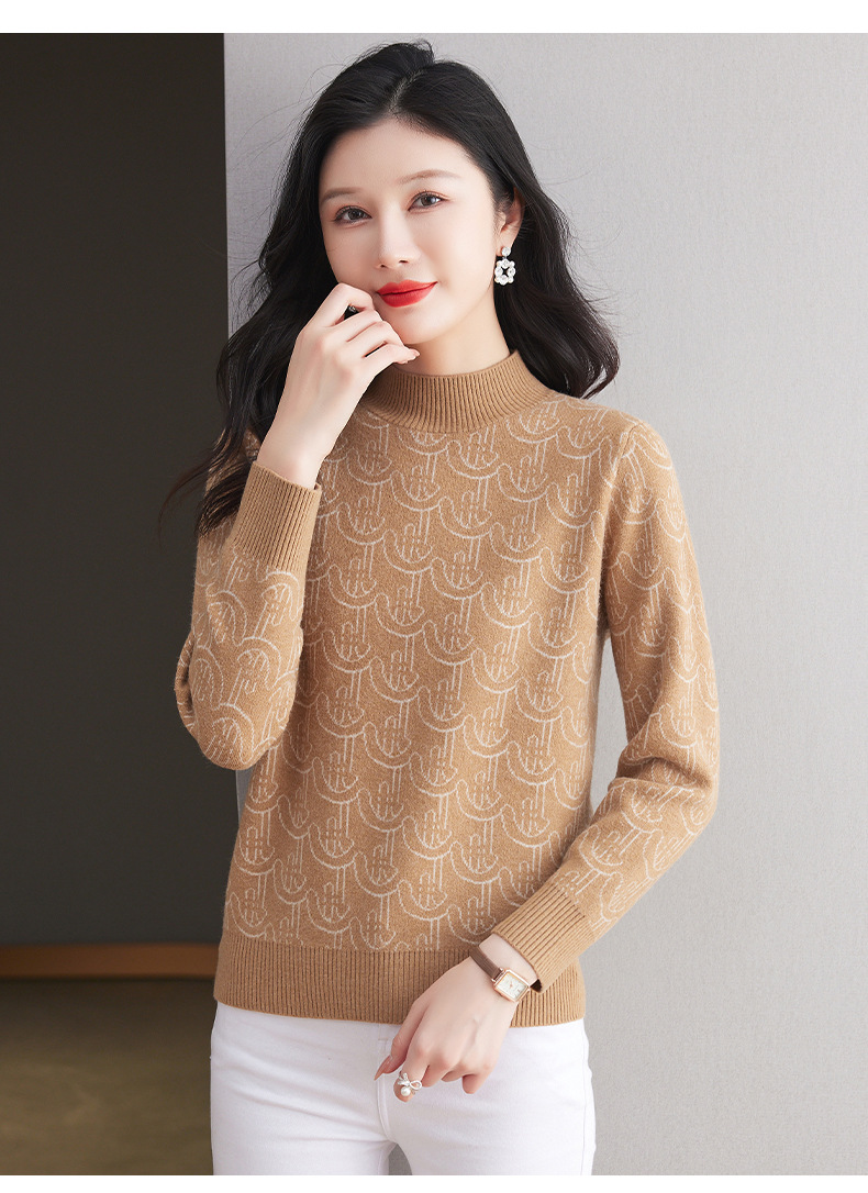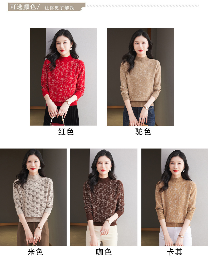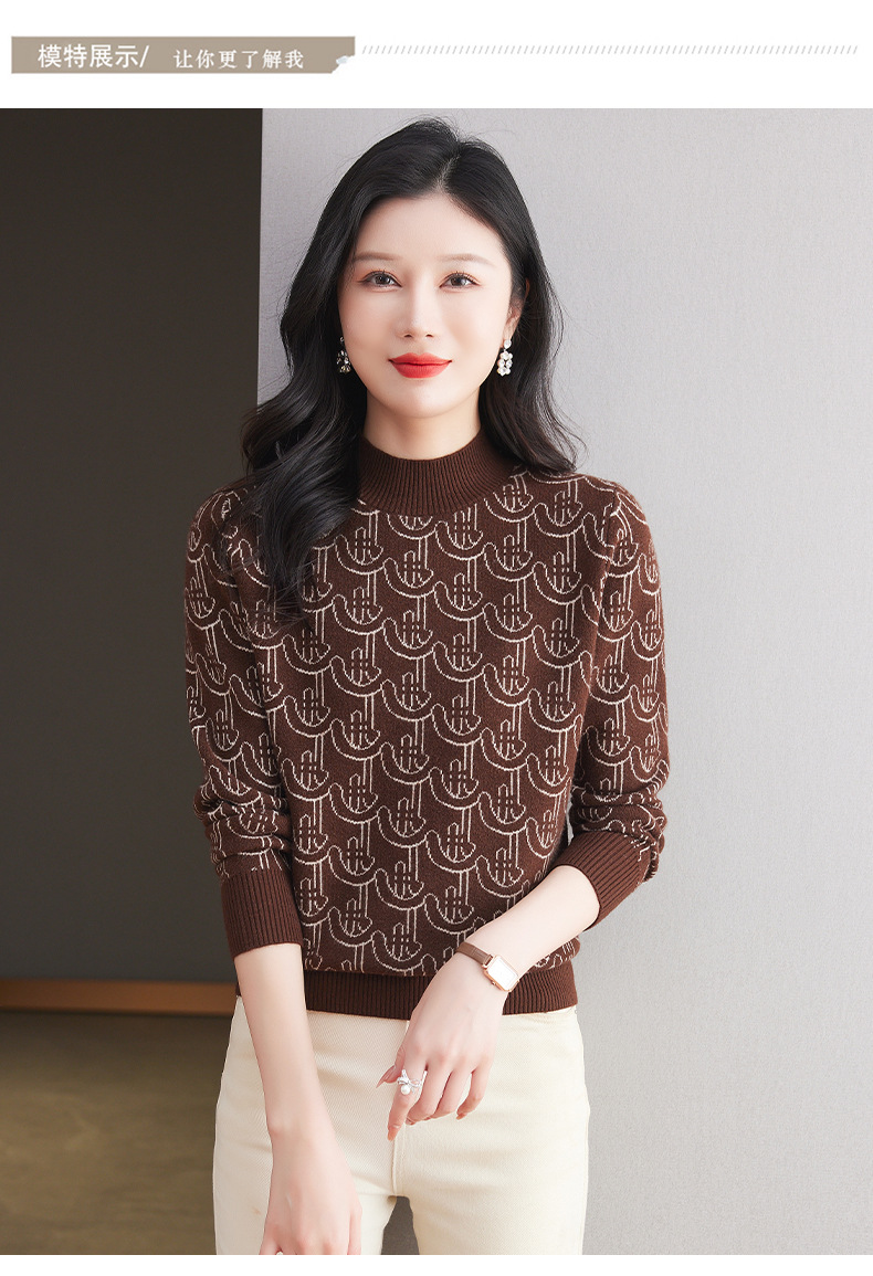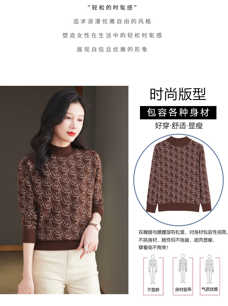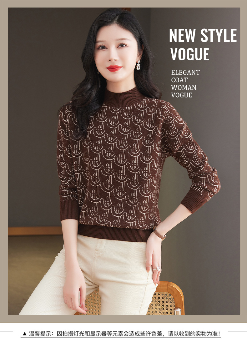 CC-103-86633新款半高领提花宽松女士上衣打底衫秋冬气质百搭羊毛厚款针织衫女