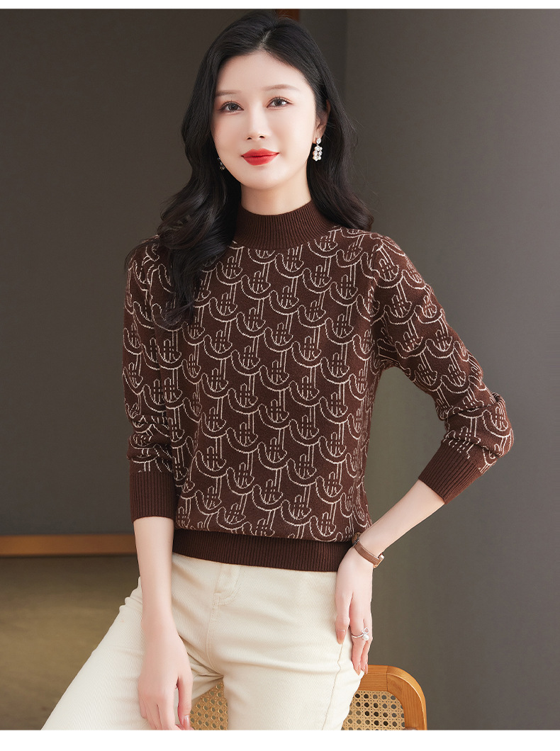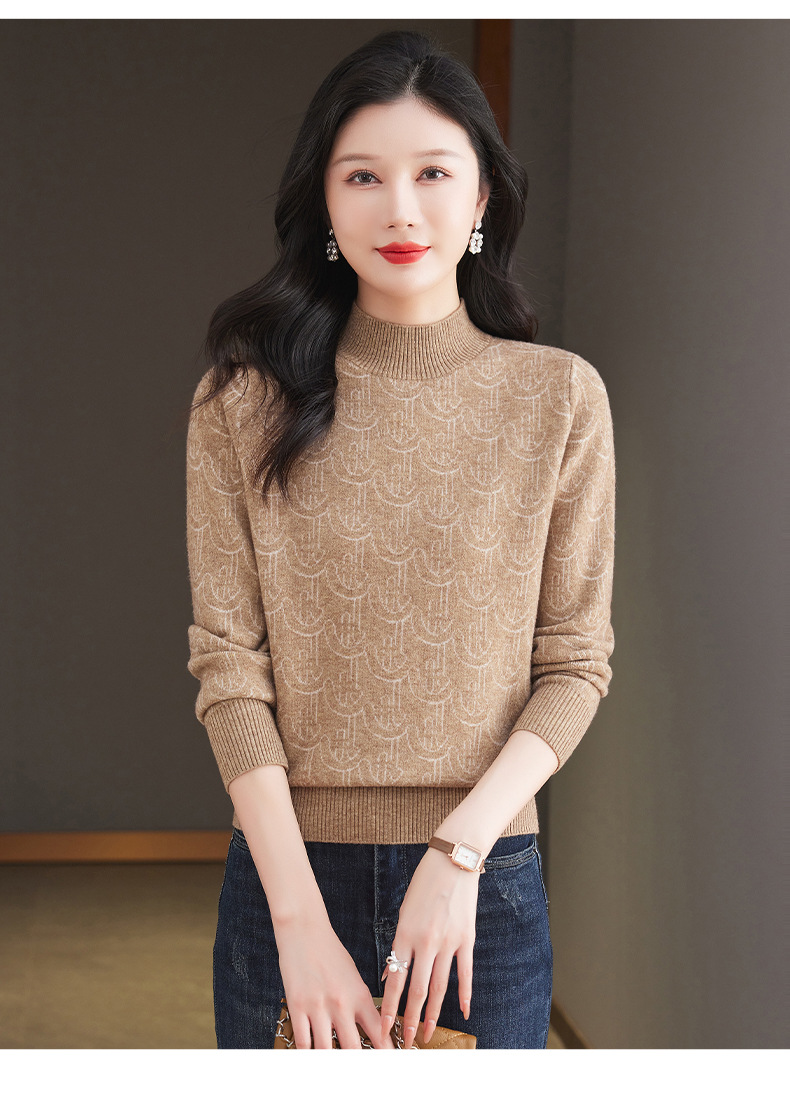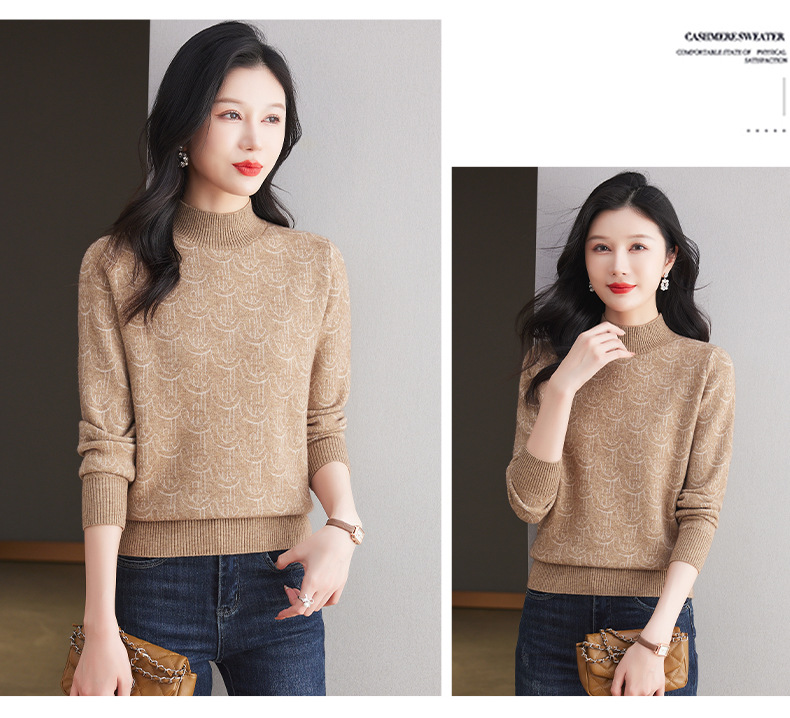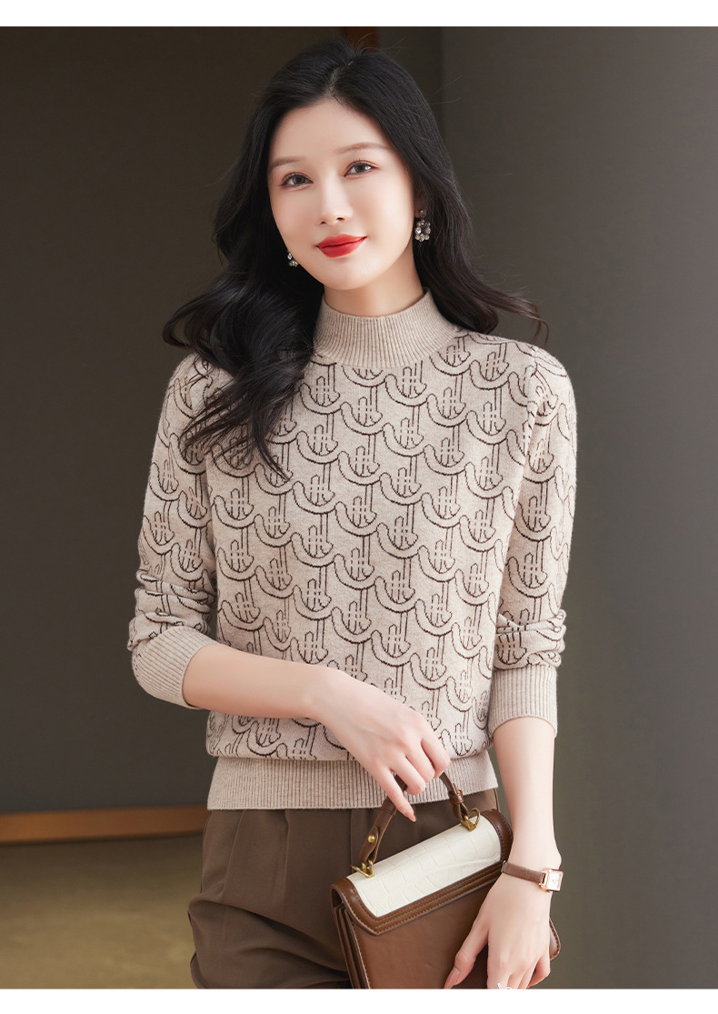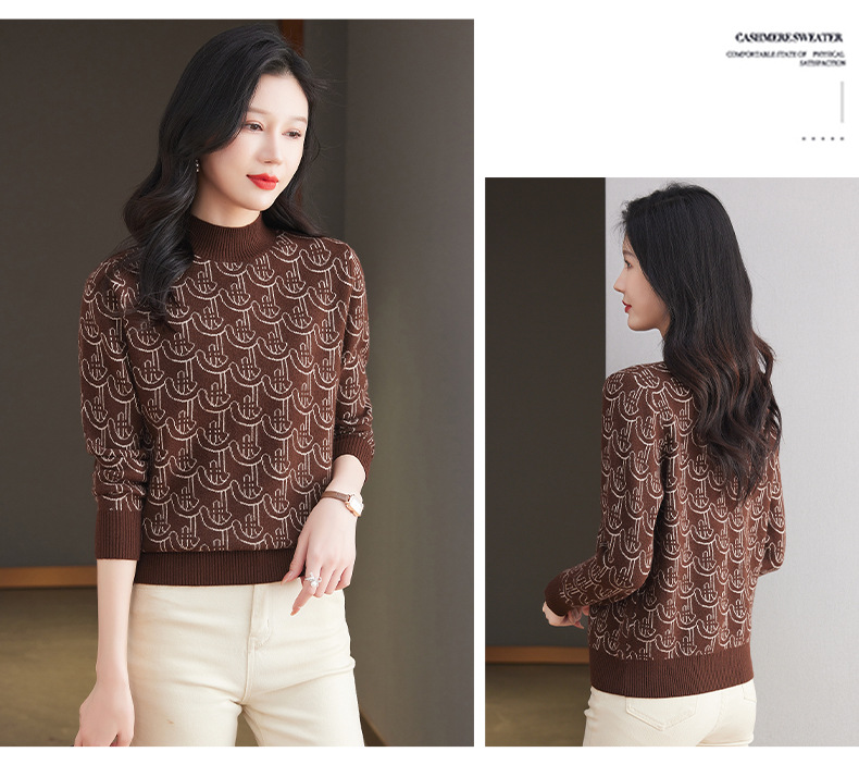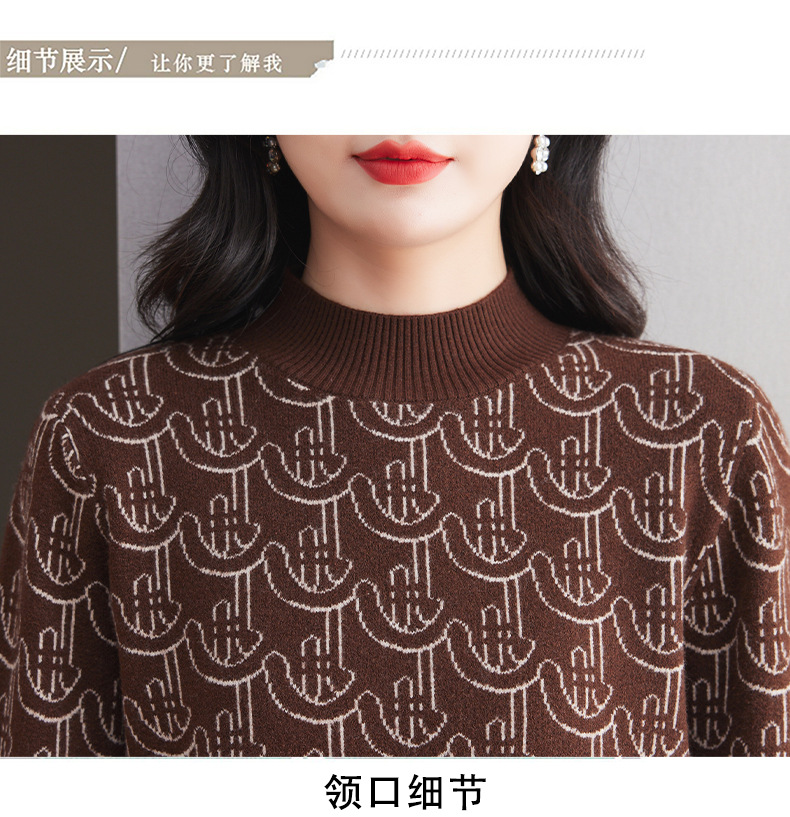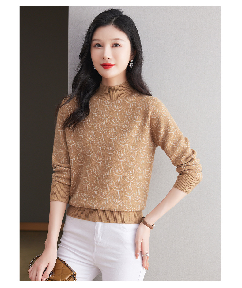 CC-103-86633新款半高领提花宽松女士上衣打底衫秋冬气质百搭羊毛厚款针织衫女
