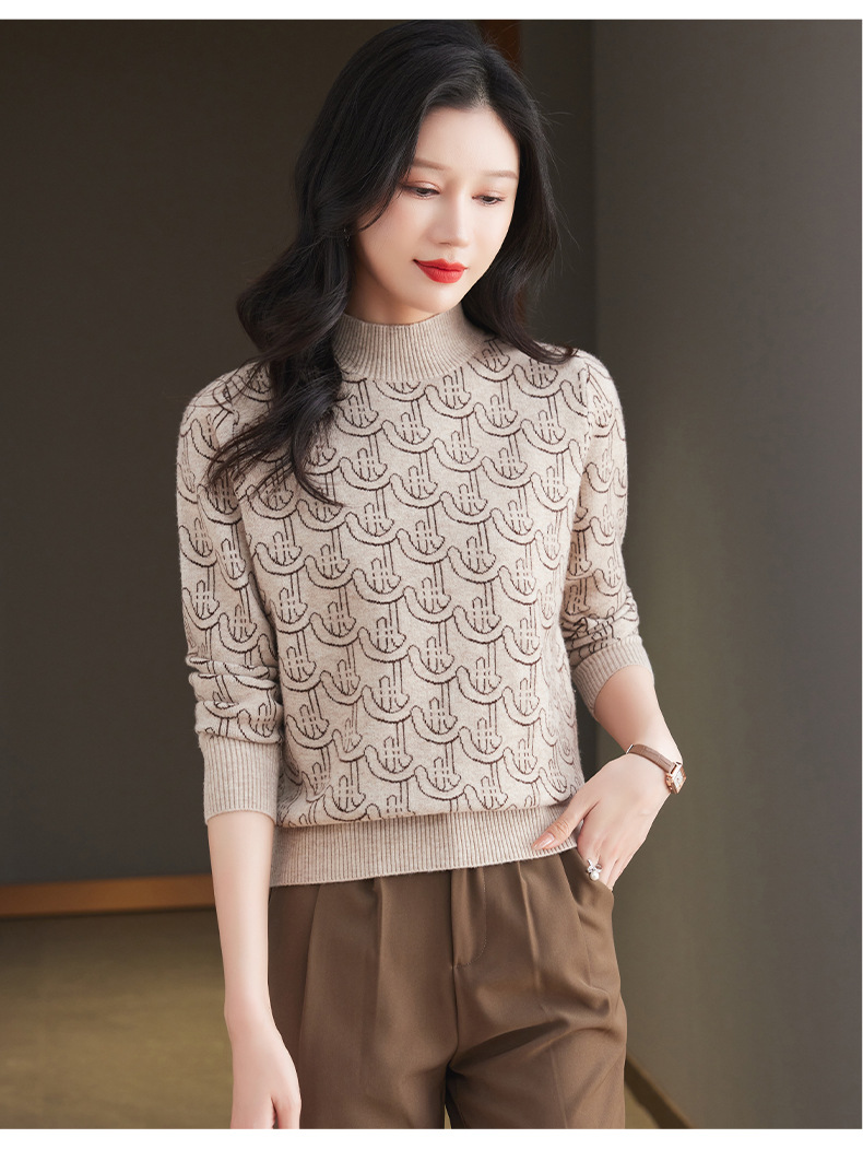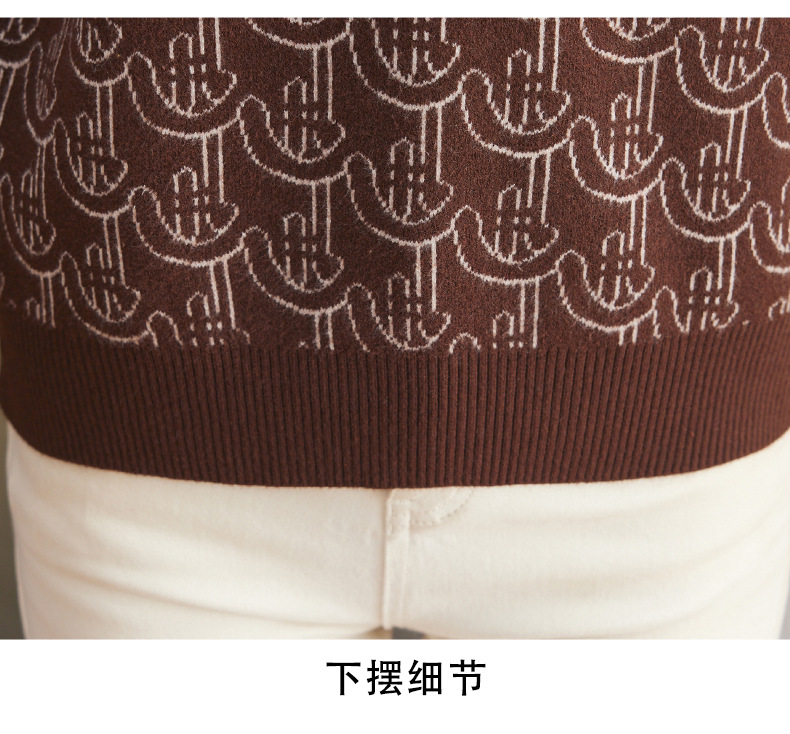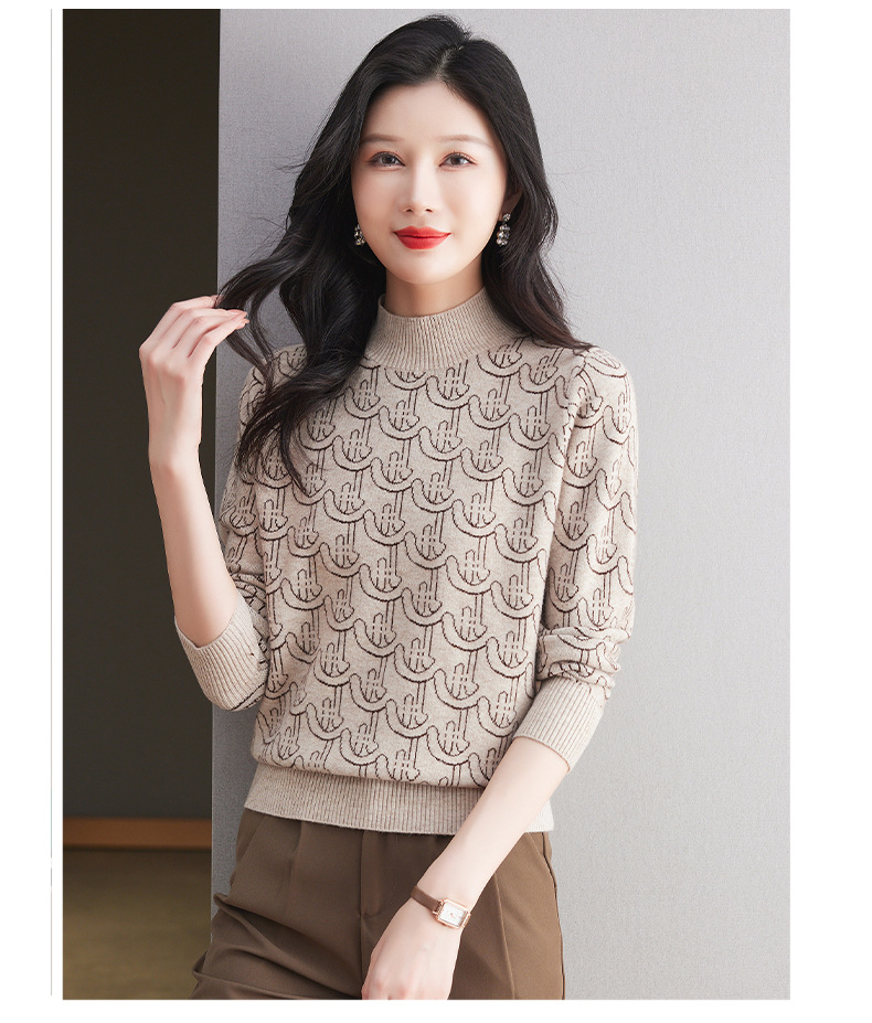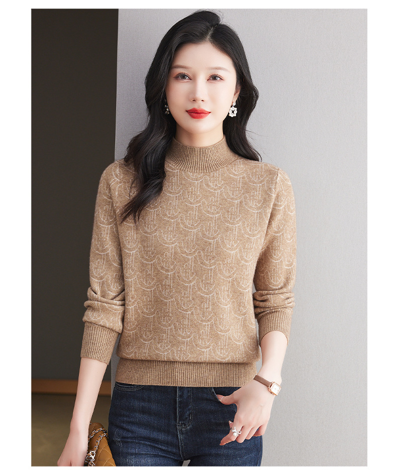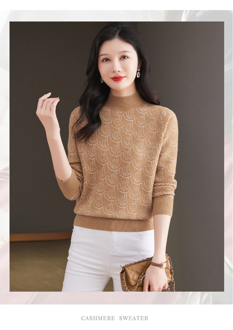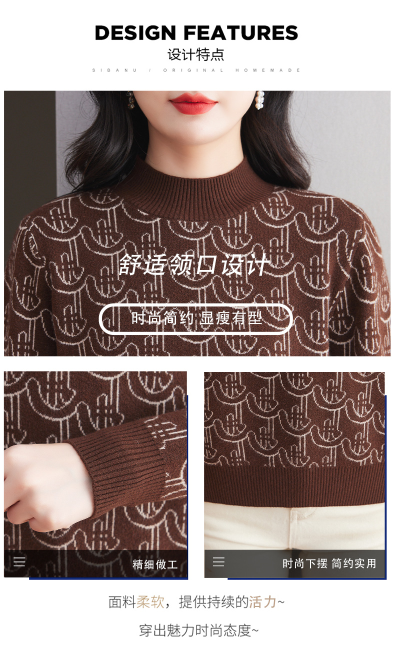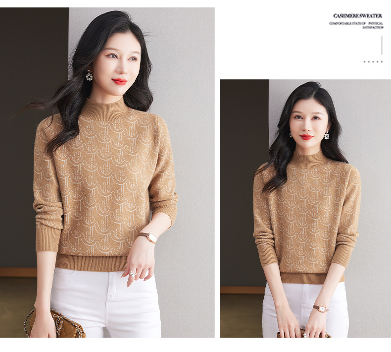 CC-103-86633新款半高领提花宽松女士上衣打底衫秋冬气质百搭羊毛厚款针织衫女