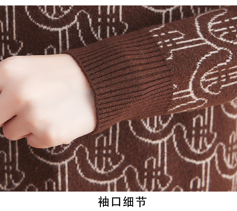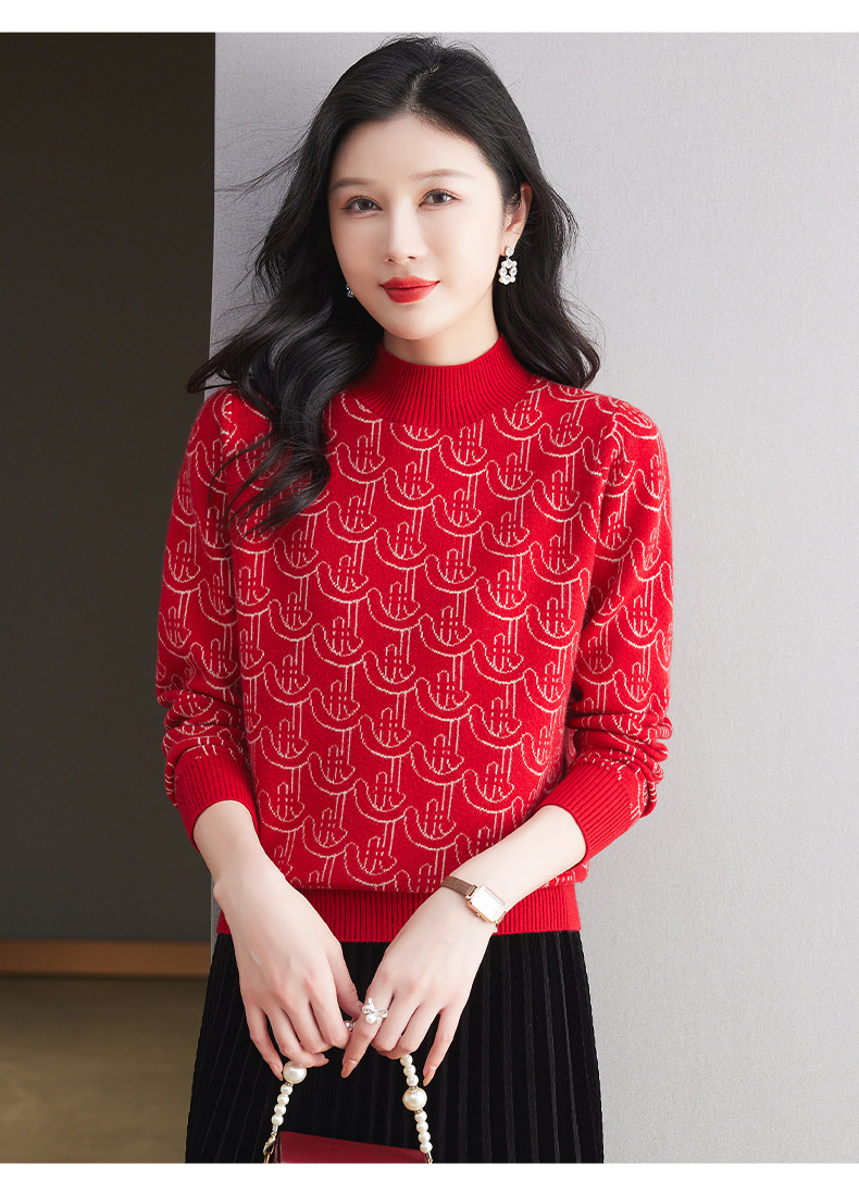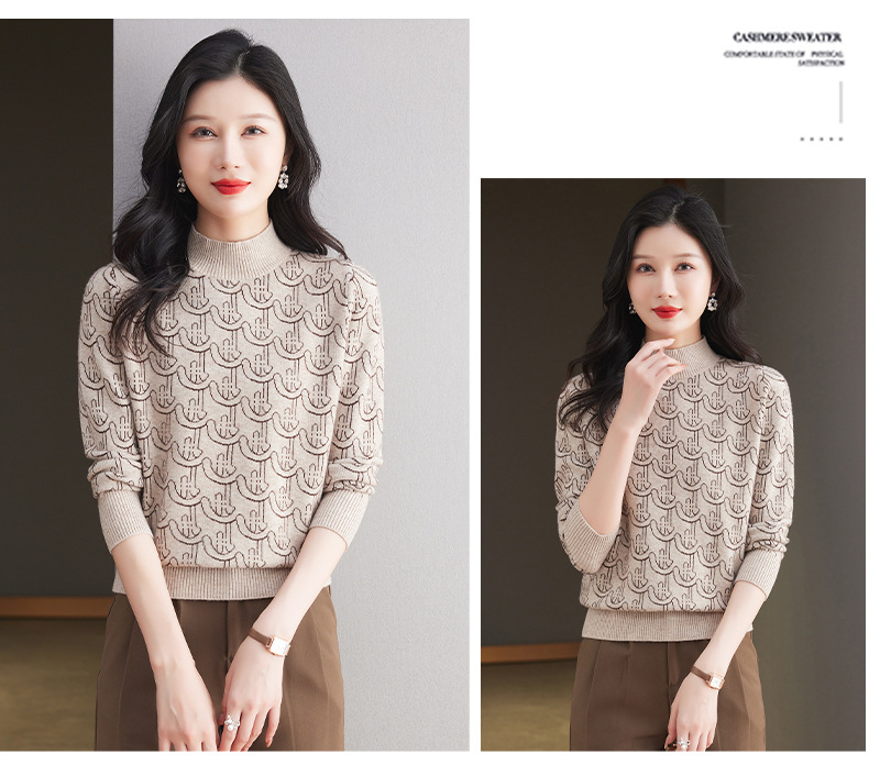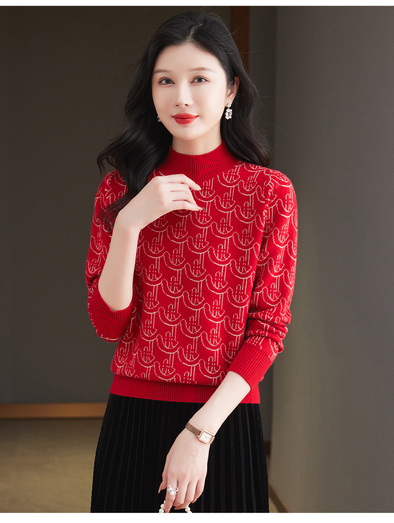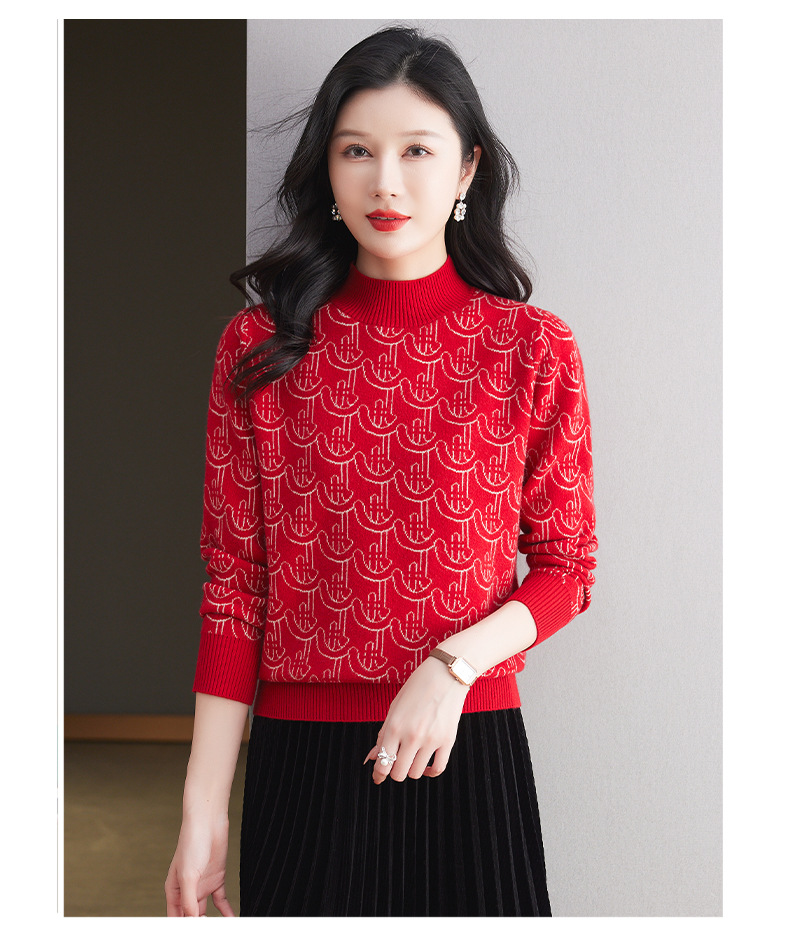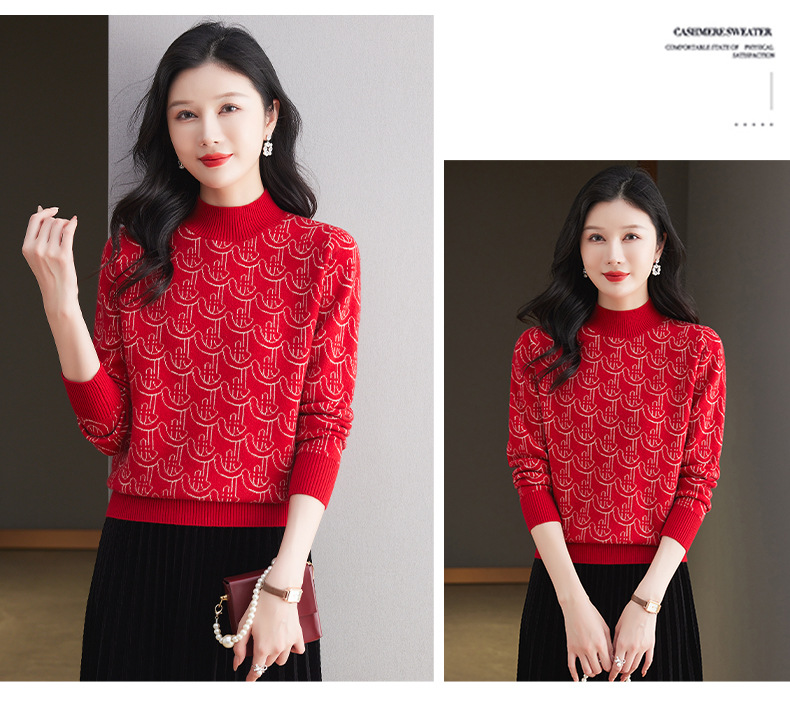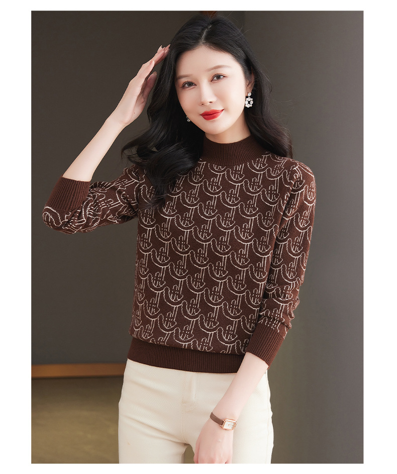 CC-103-86633新款半高领提花宽松女士上衣打底衫秋冬气质百搭羊毛厚款针织衫女