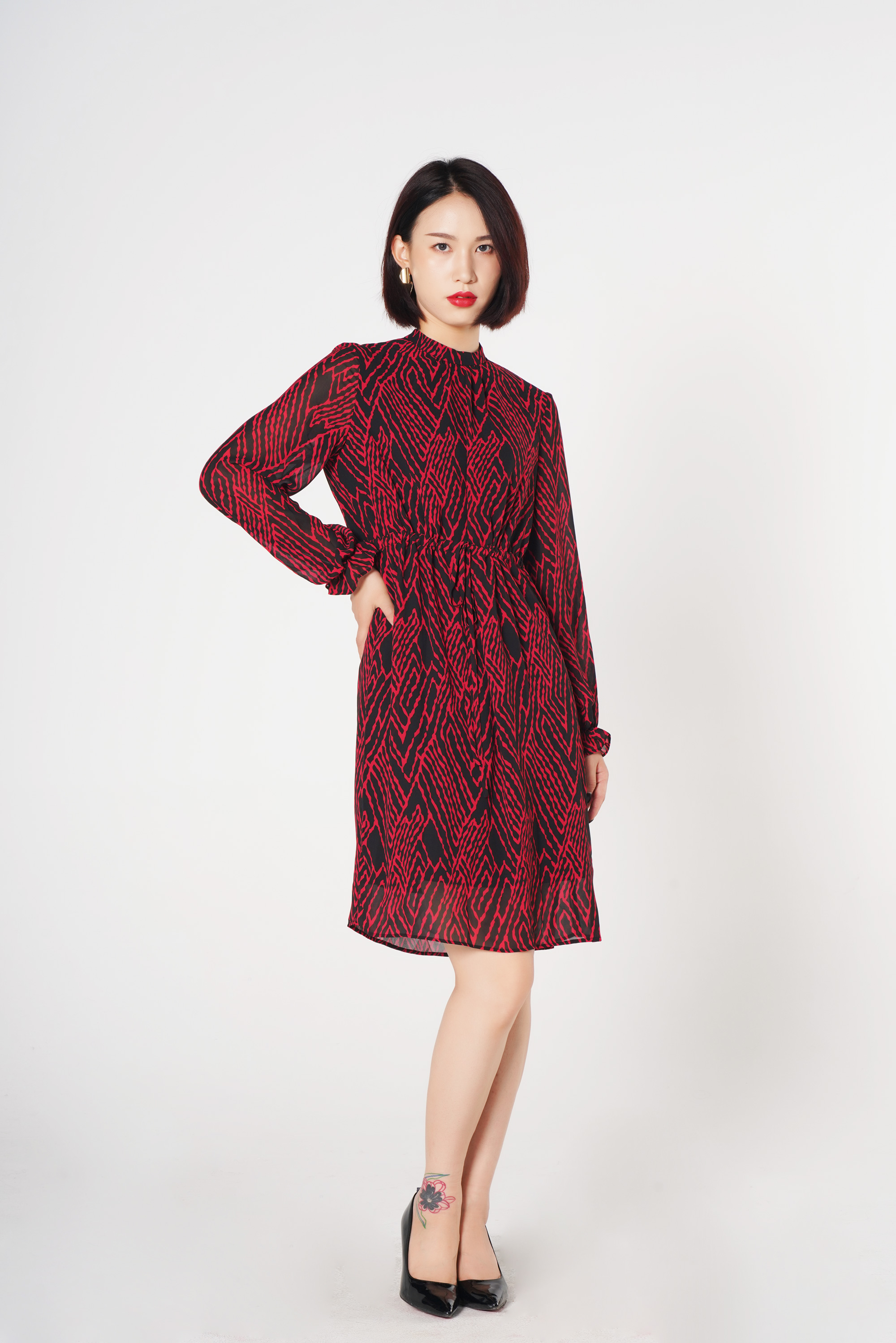 动物纹的元素在时尚界有着不可替代的地位 ,散发独特时髦感,红色让人惊艳,长款连衣裙内搭还是单穿都让人无法移开视线