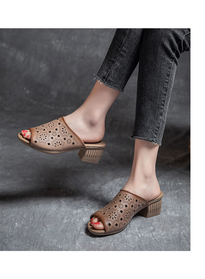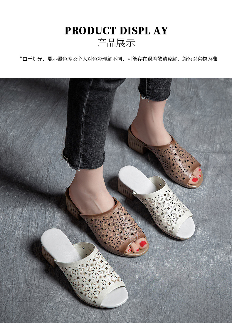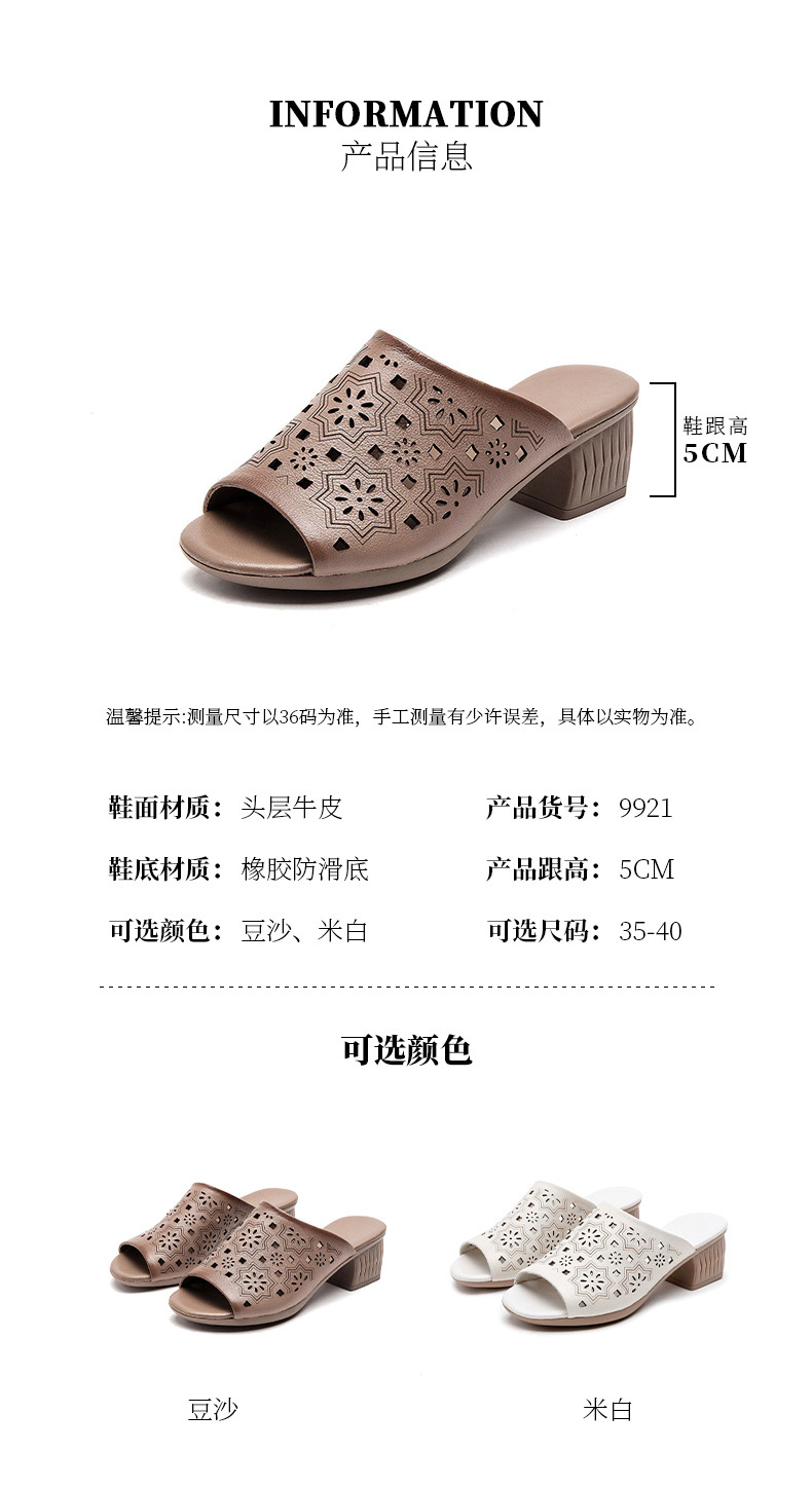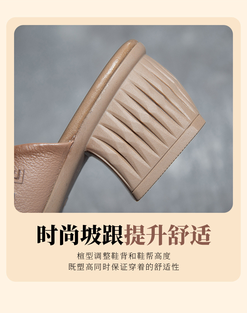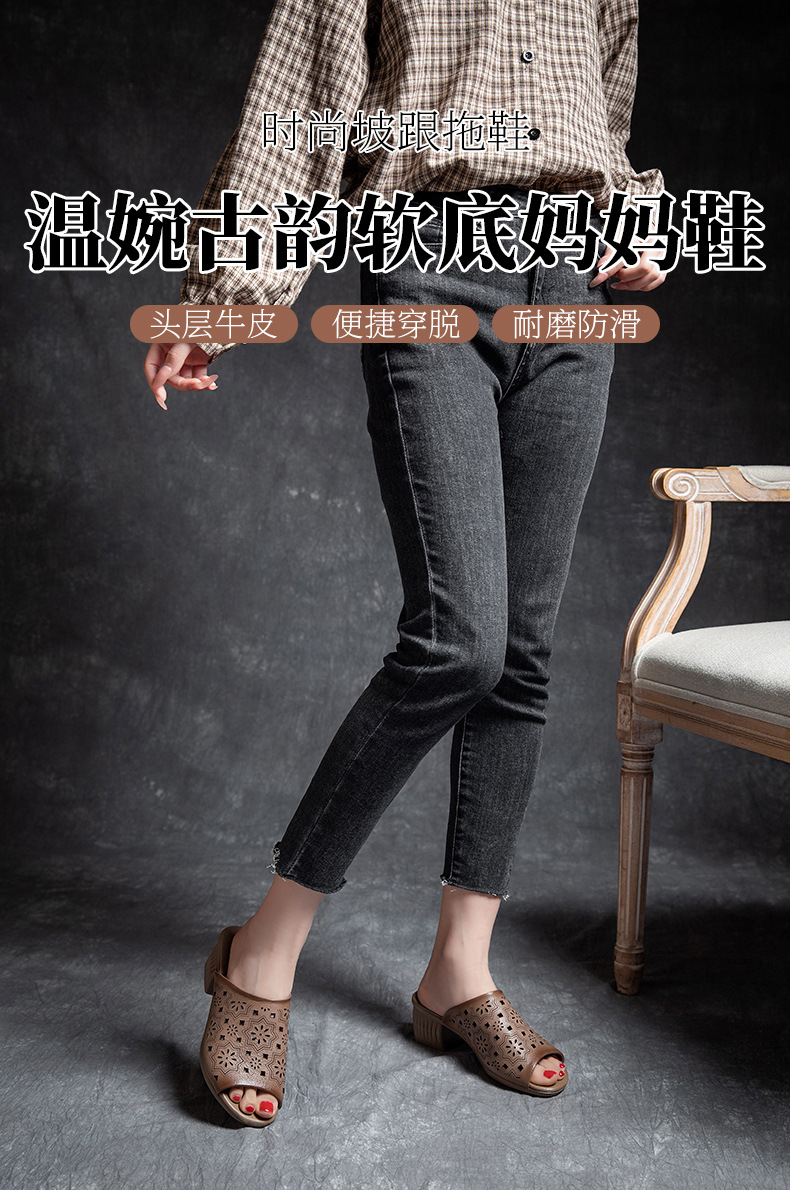 MLD-9921夏季新款粗高跟拖鞋女外穿复古鱼嘴鞋民族风凉拖鞋女