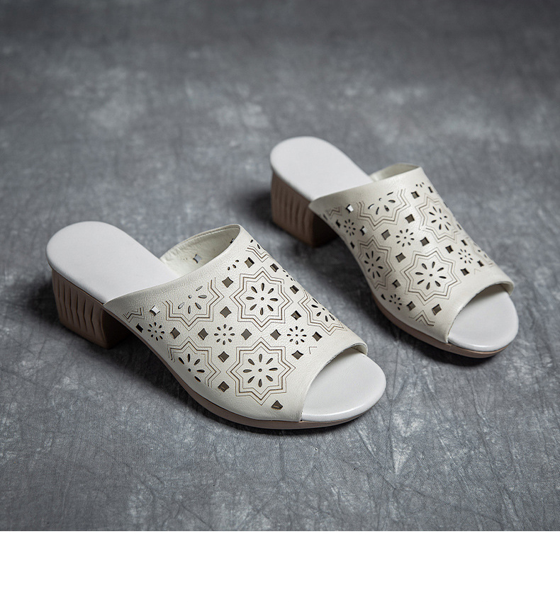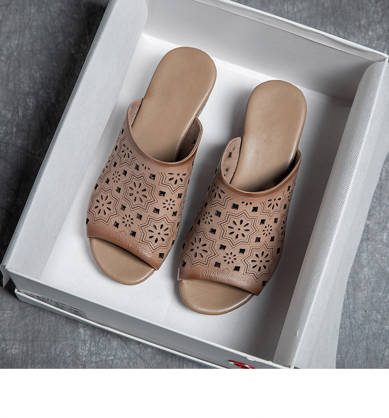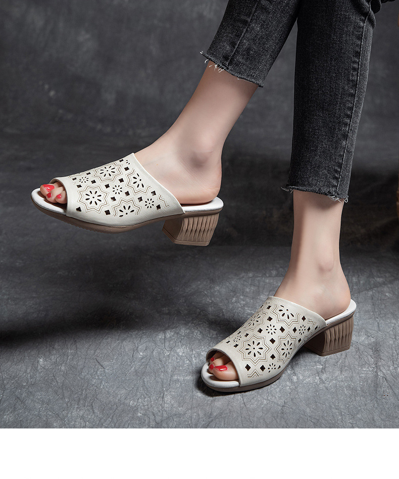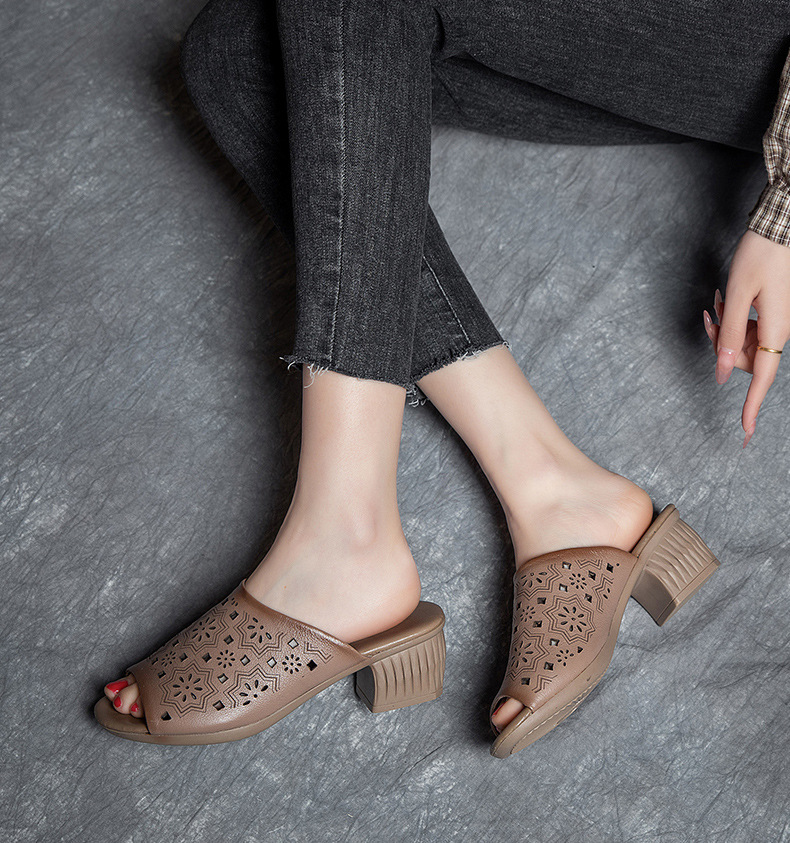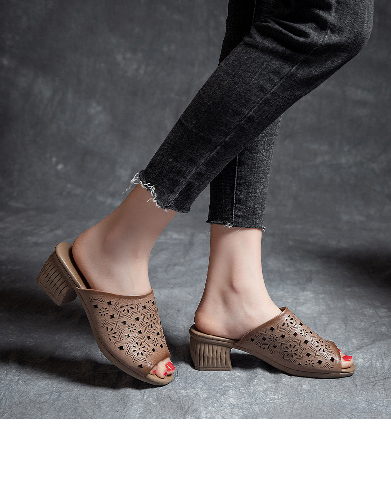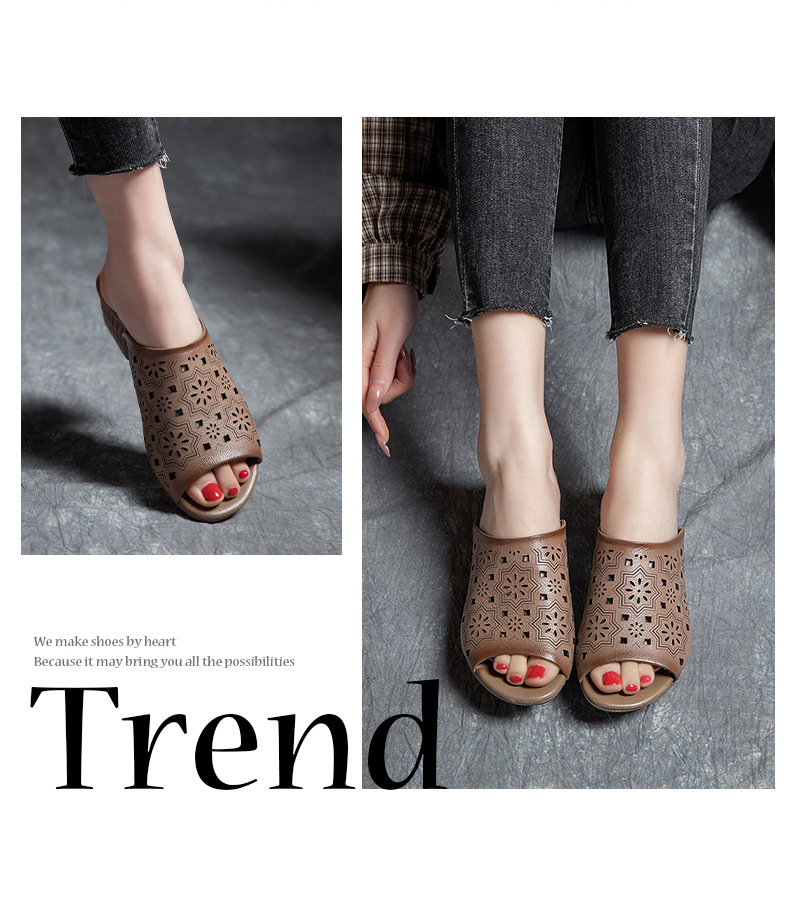 MLD-9921夏季新款粗高跟拖鞋女外穿复古鱼嘴鞋民族风凉拖鞋女
