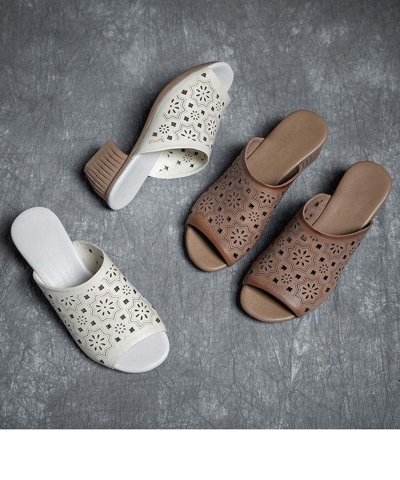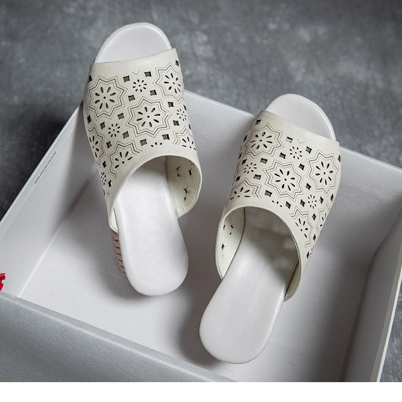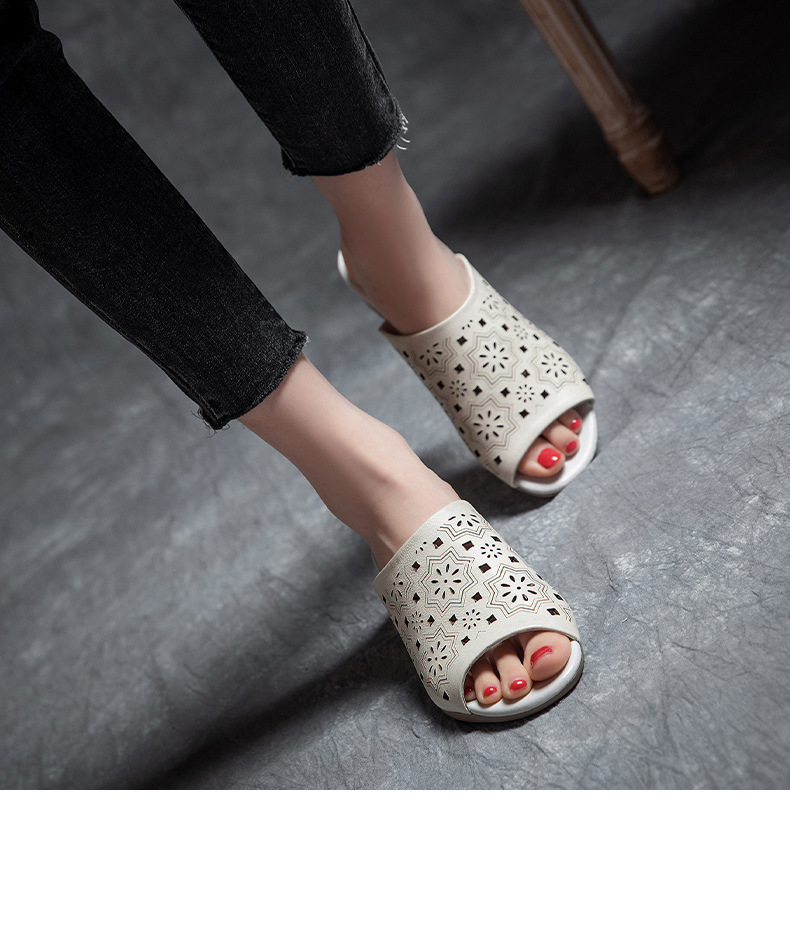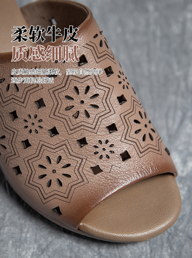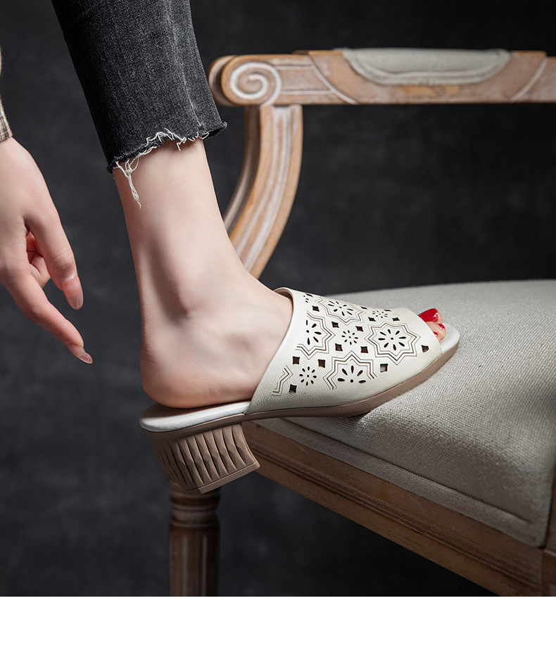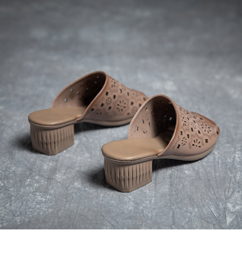 MLD-9921夏季新款粗高跟拖鞋女外穿复古鱼嘴鞋民族风凉拖鞋女