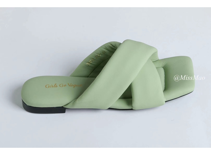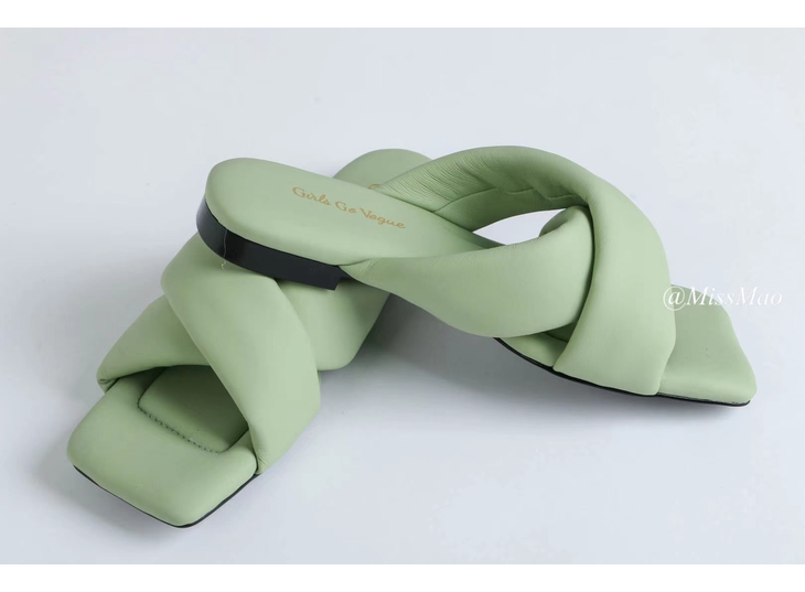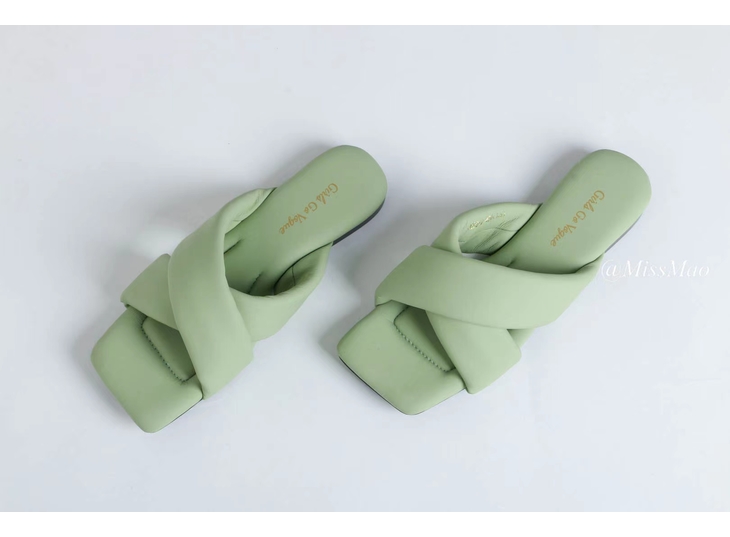 时髦精,基础色的鞋子太多了,那么这双方头,软皮面,抹茶绿的拖鞋