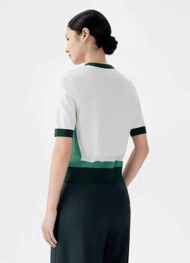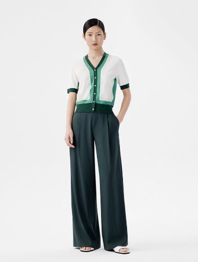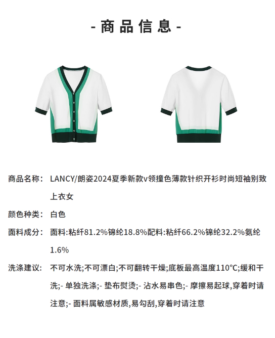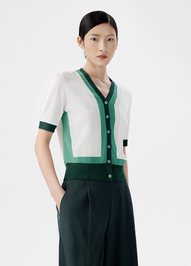 朗姿 v领撞色薄款针织开衫短袖LCET05KCD456