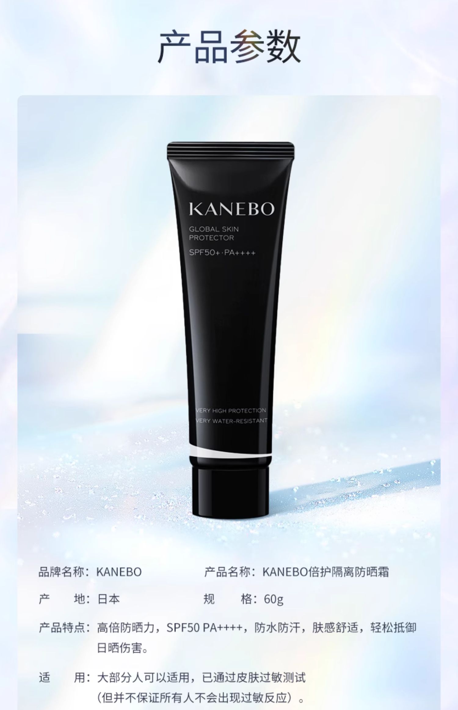 Kanebo嘉娜宝倍护隔离防晒霜防水防汗女面部防紫外线SPF50+ 60g