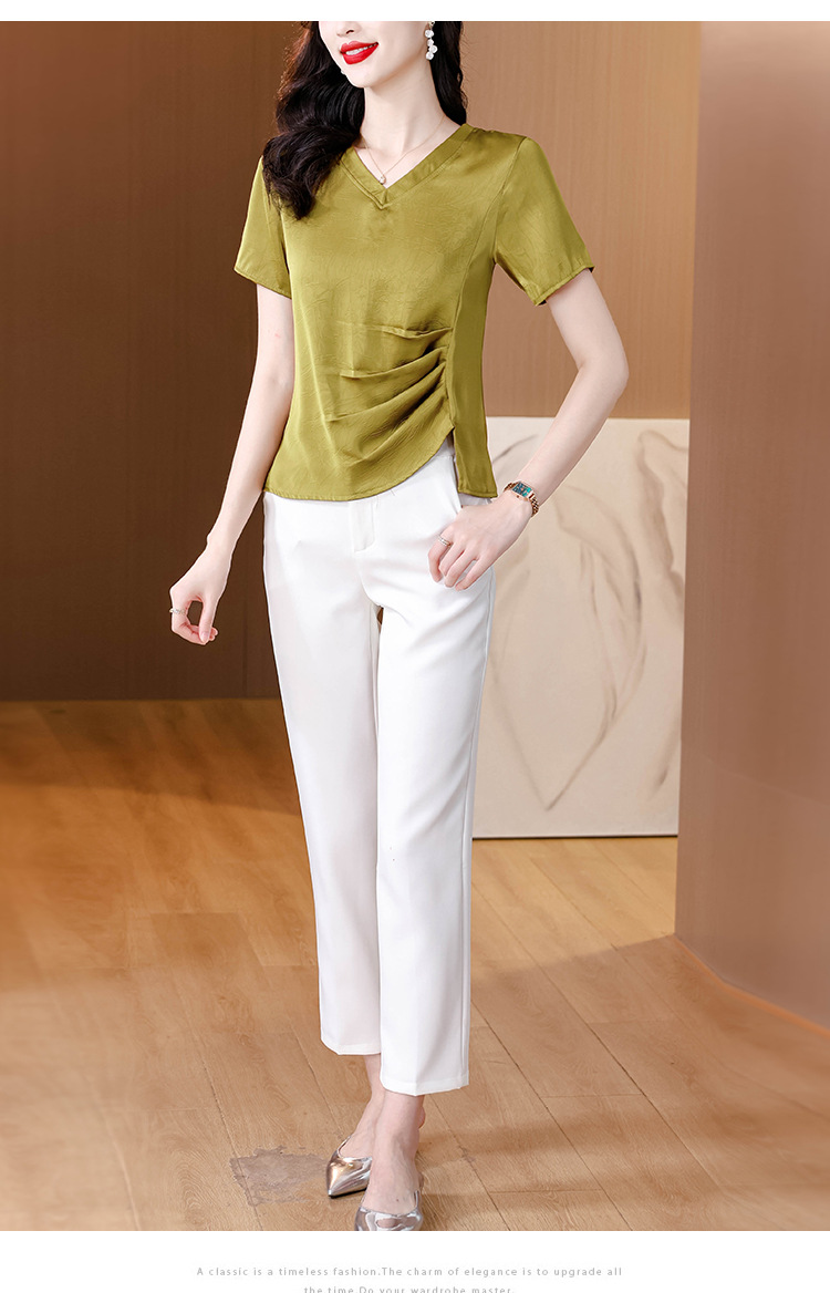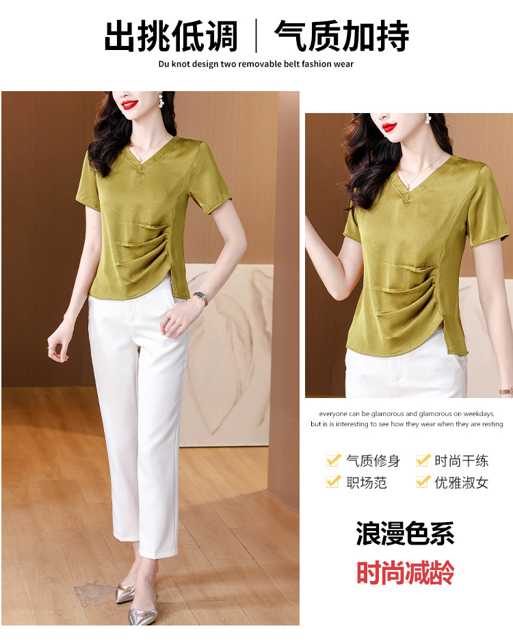 SMZ18884 2024高级感开叉短袖t恤女夏季装新款时尚小衫高级感不规则上衣潮