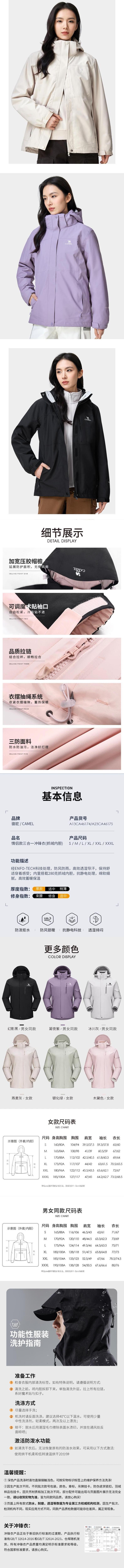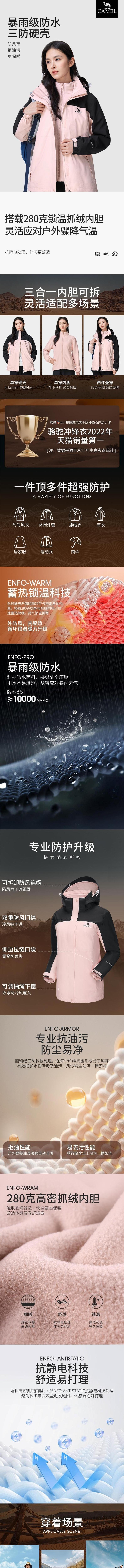 CAMEL骆驼 女三合一冲锋衣(抓绒内胆) A9W114120-1X-1