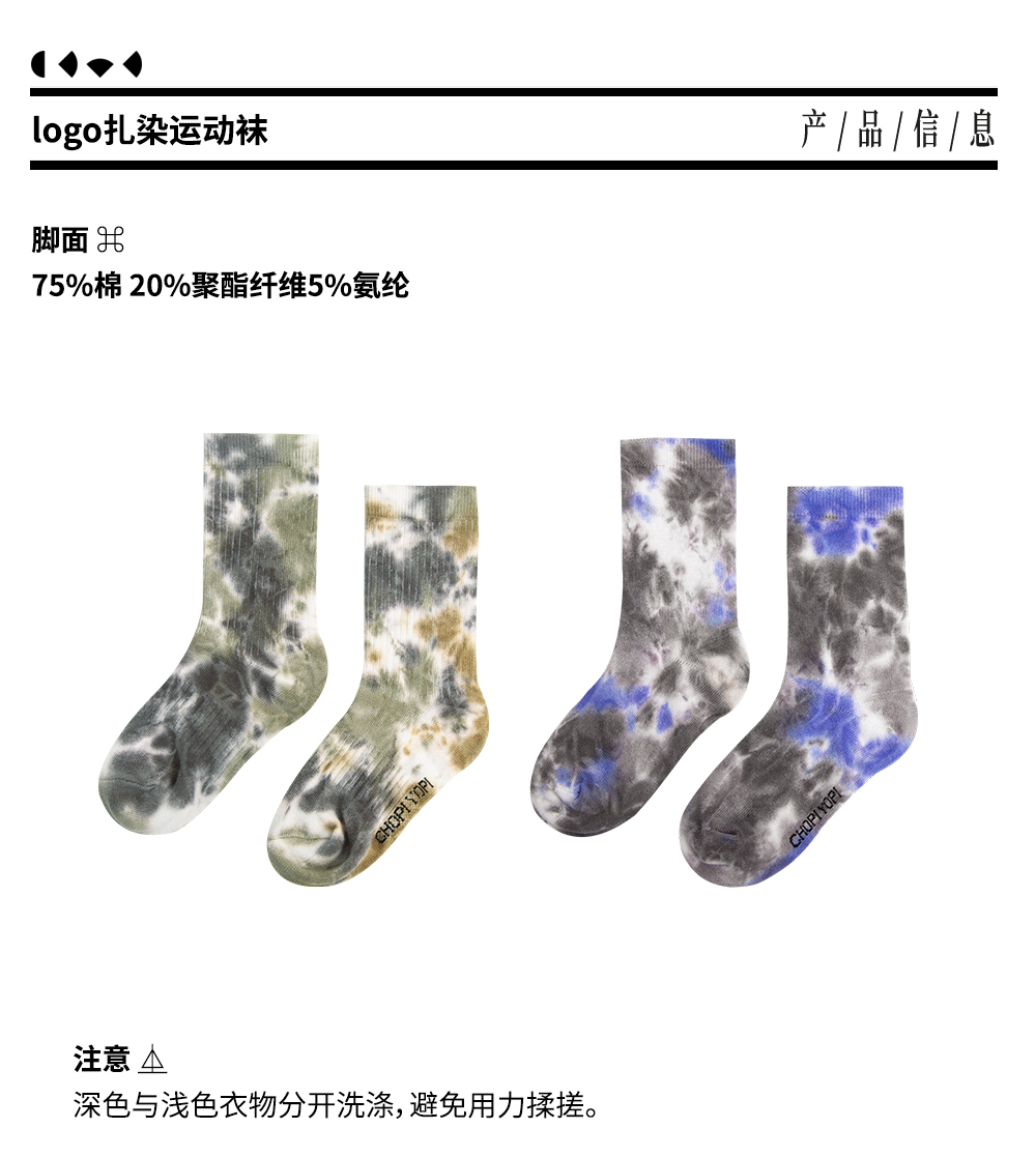 chopiyopi童装 儿童logo扎染运动袜高弹透气夏季袜子 chopiyopi