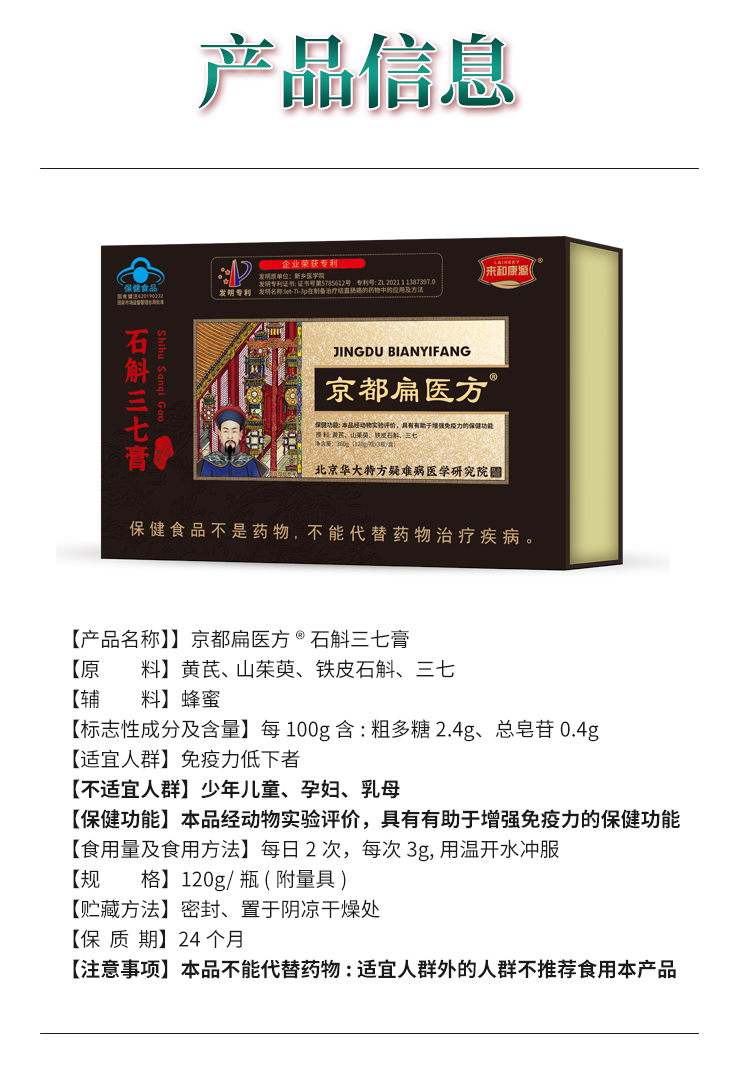 热卖中!!京都扁医方石斛三七膏 蓝帽认证 增强免疫力 草本滋补 古法熬制 一盒*3瓶