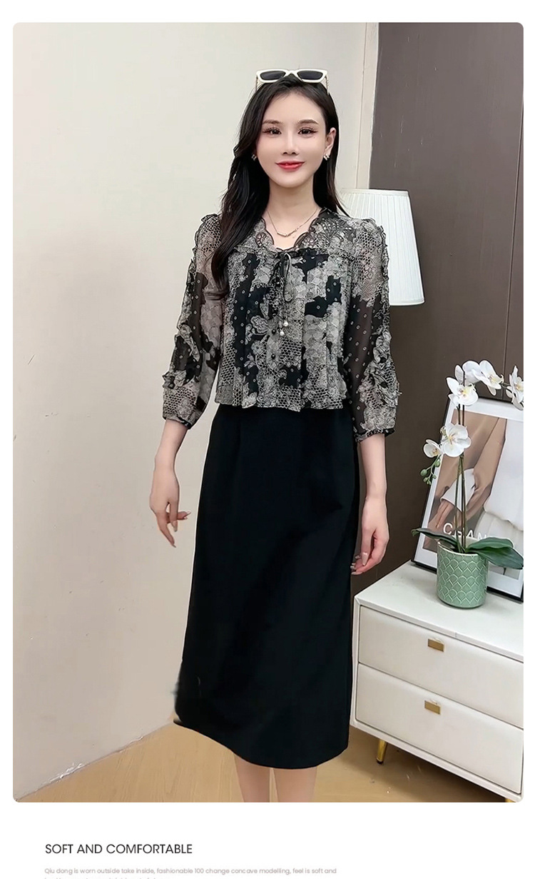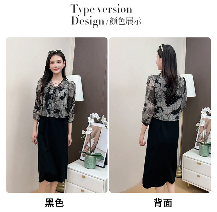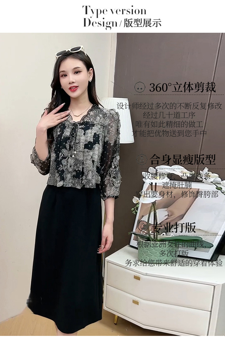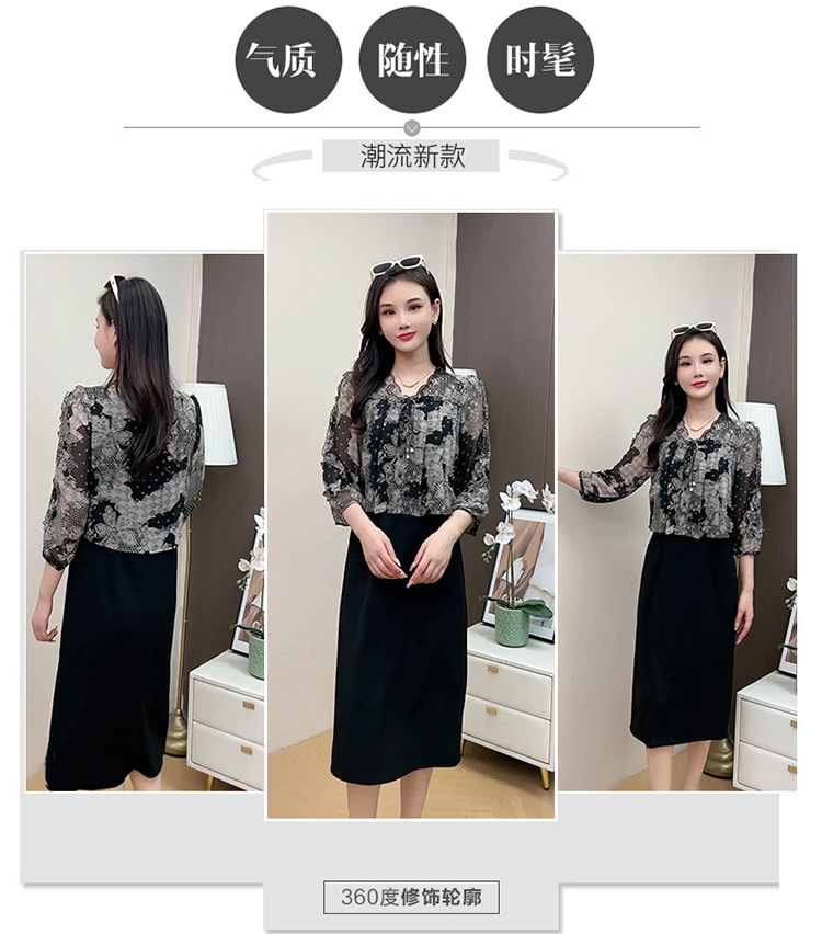 QYM 5A25203-Y时尚假两件短袖连衣裙过膝长裙 商品图2