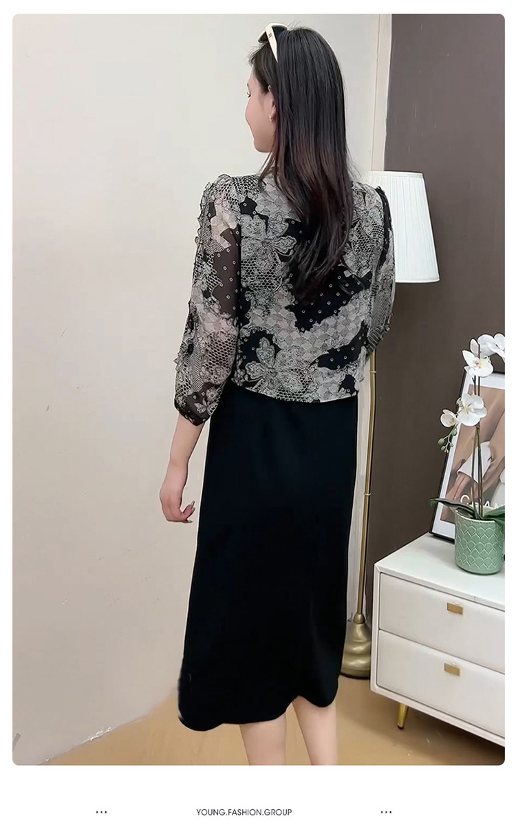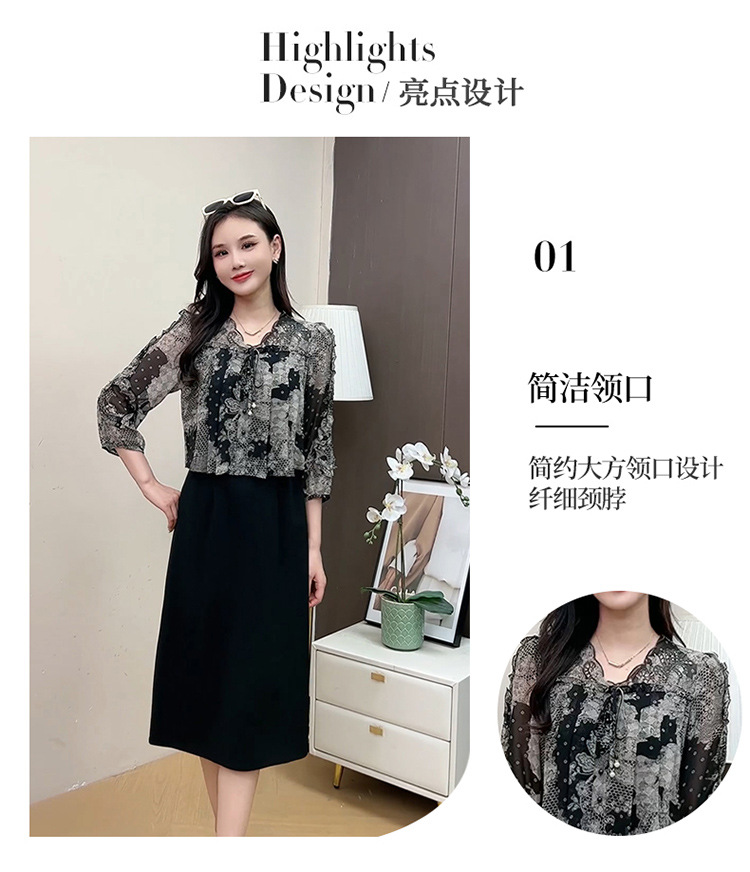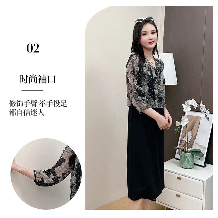 QYM 5A25203-Y时尚假两件短袖连衣裙过膝长裙 商品图3