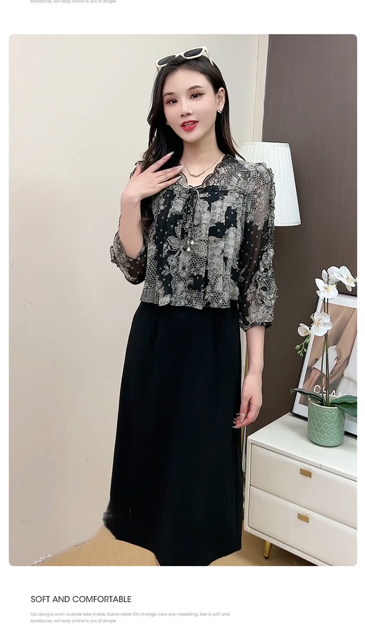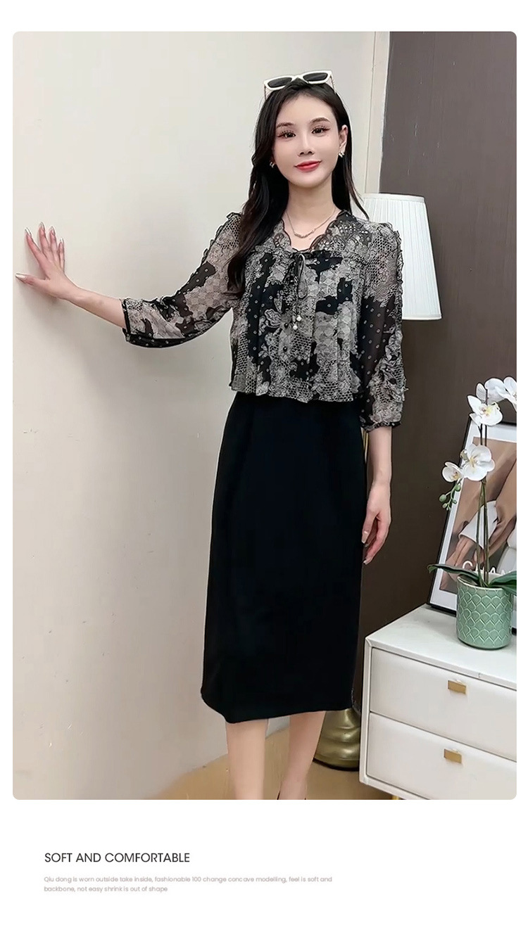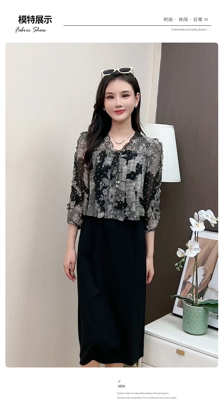 QYM 5A25203-Y时尚假两件短袖连衣裙过膝长裙 商品图1