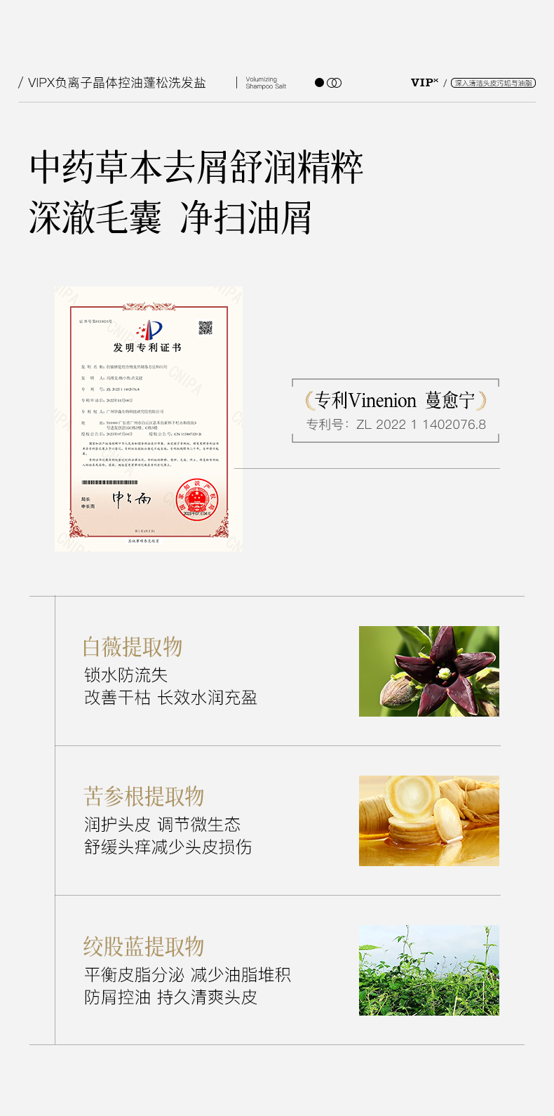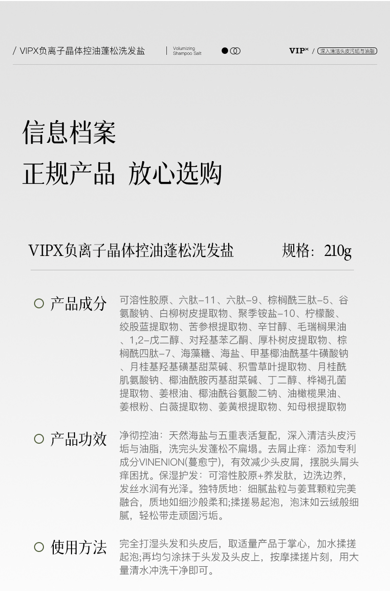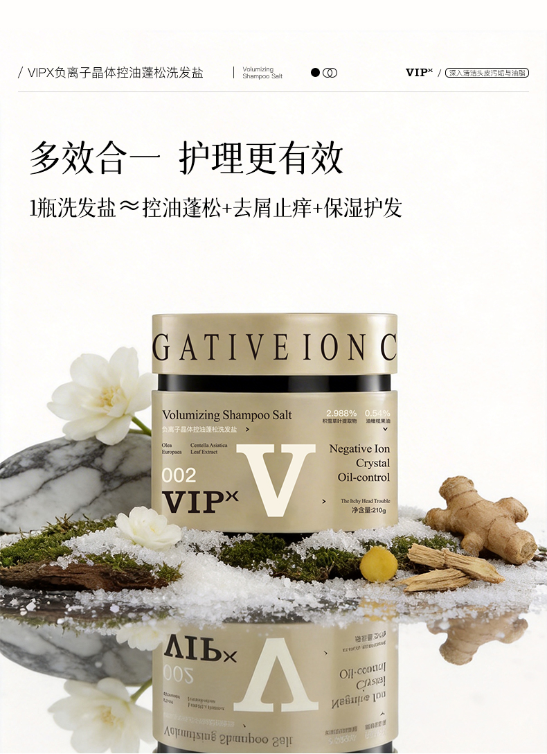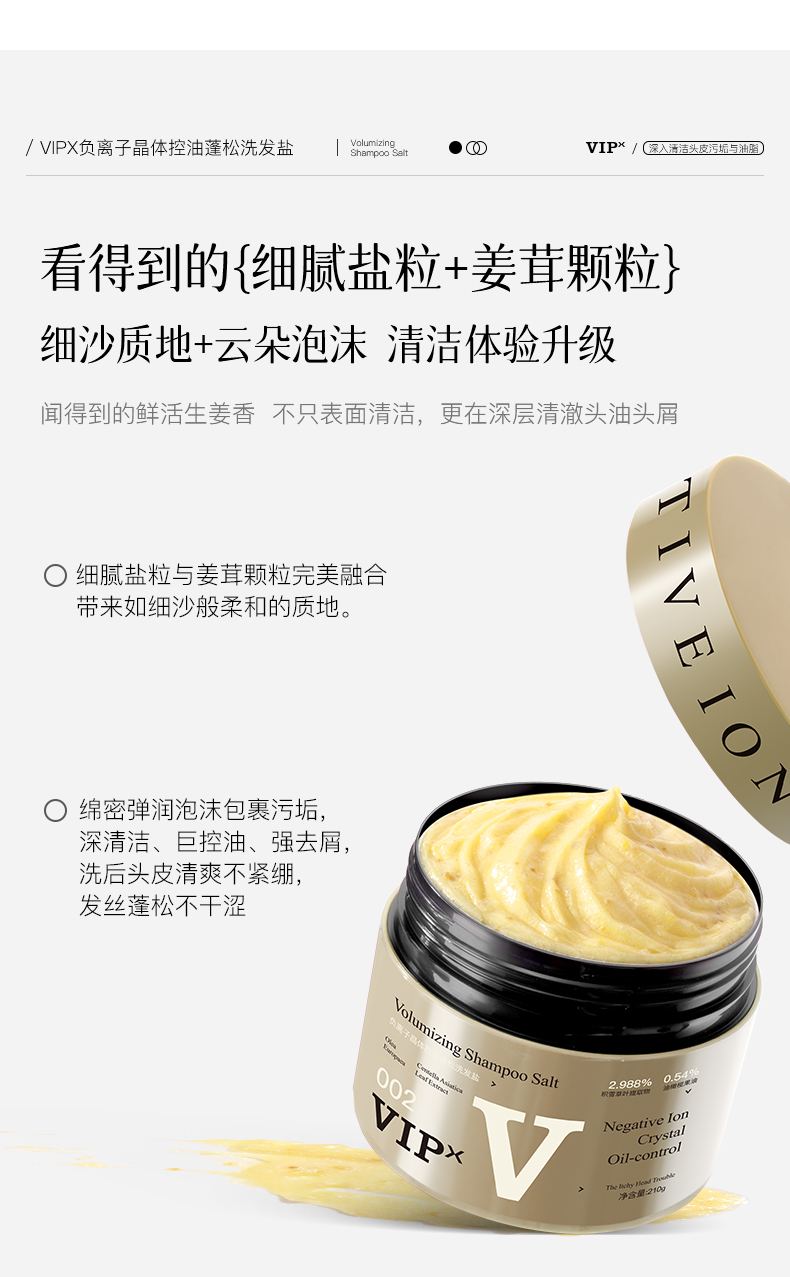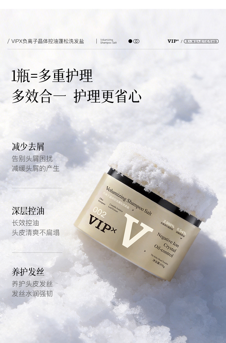VIPX负离子晶体控油蓬松洗发盐 专利加持 给头皮来场 “深层 SPA” 控油去屑止痒