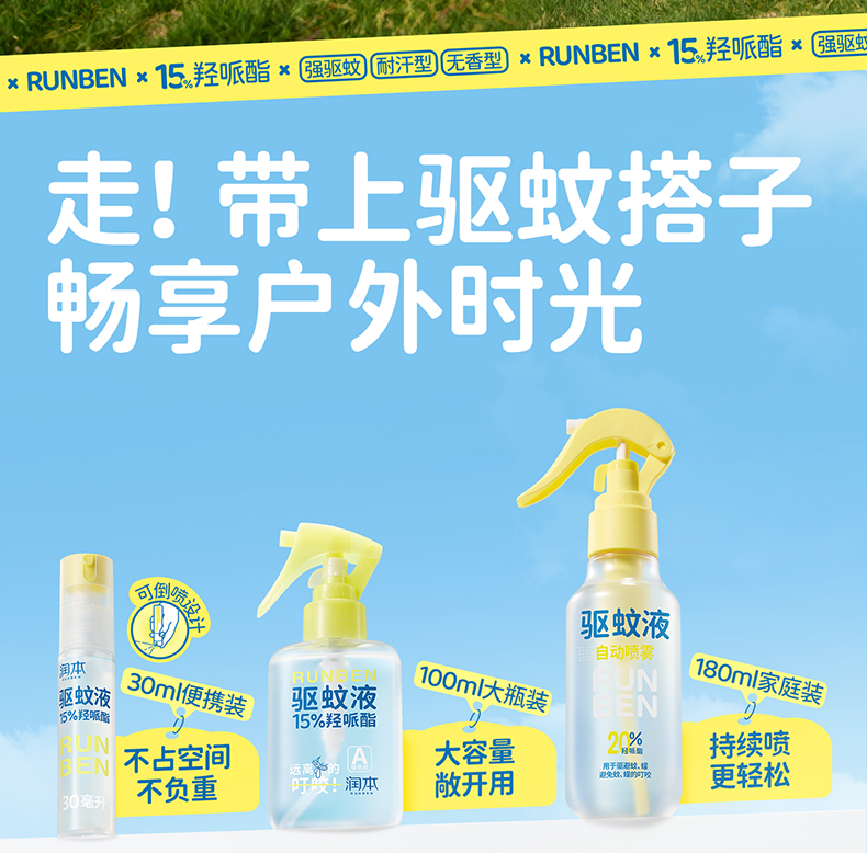 【长轻专属】润本羟哌酯驱蚊液 【时效8h】户外专用防蚊喷雾 倒喷+自动喷头组合