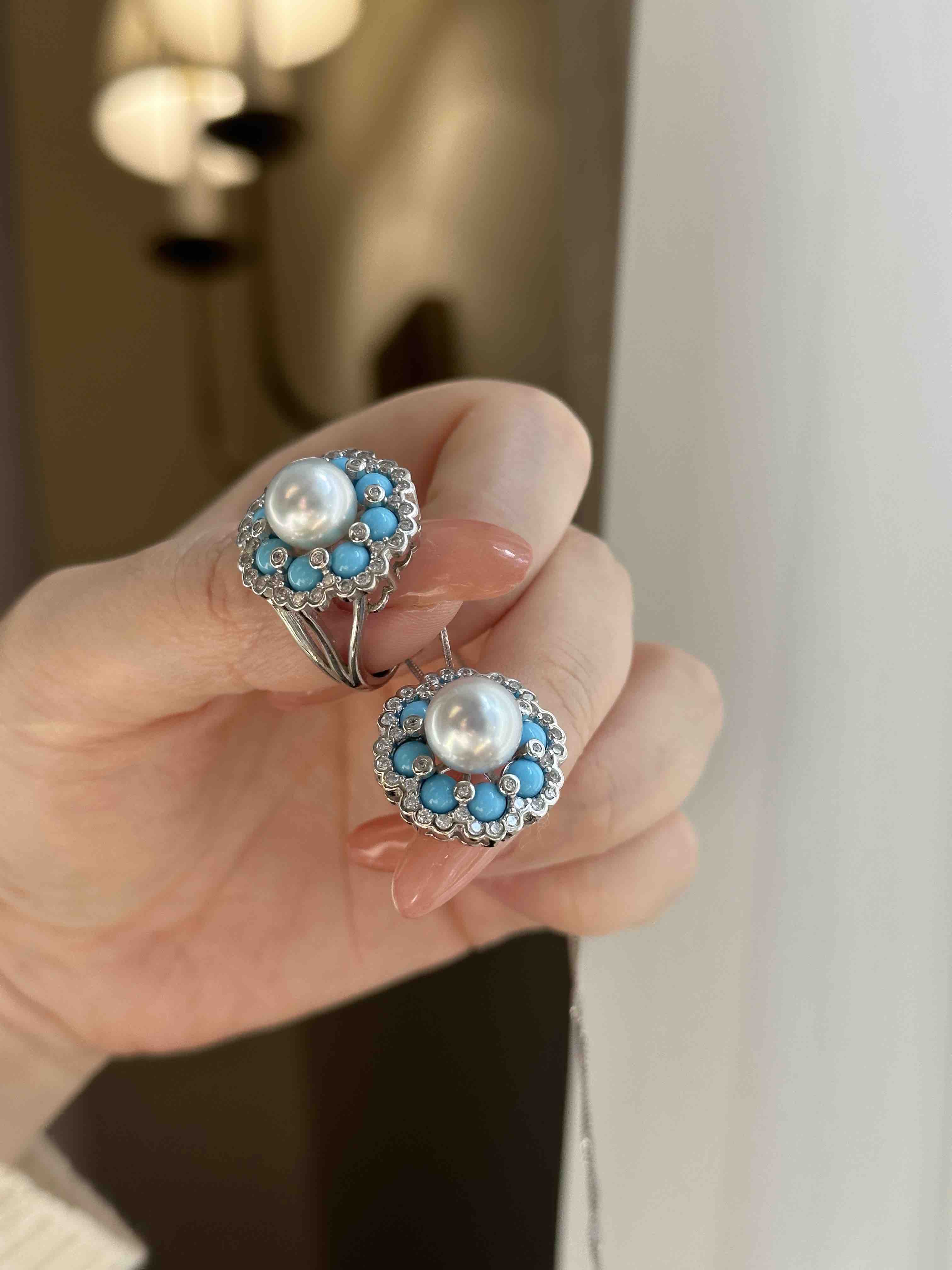 ✅ 精工人工绿松石镶嵌 惊艳耐看 S925纯银配件 外镀铑白金 保色无忧