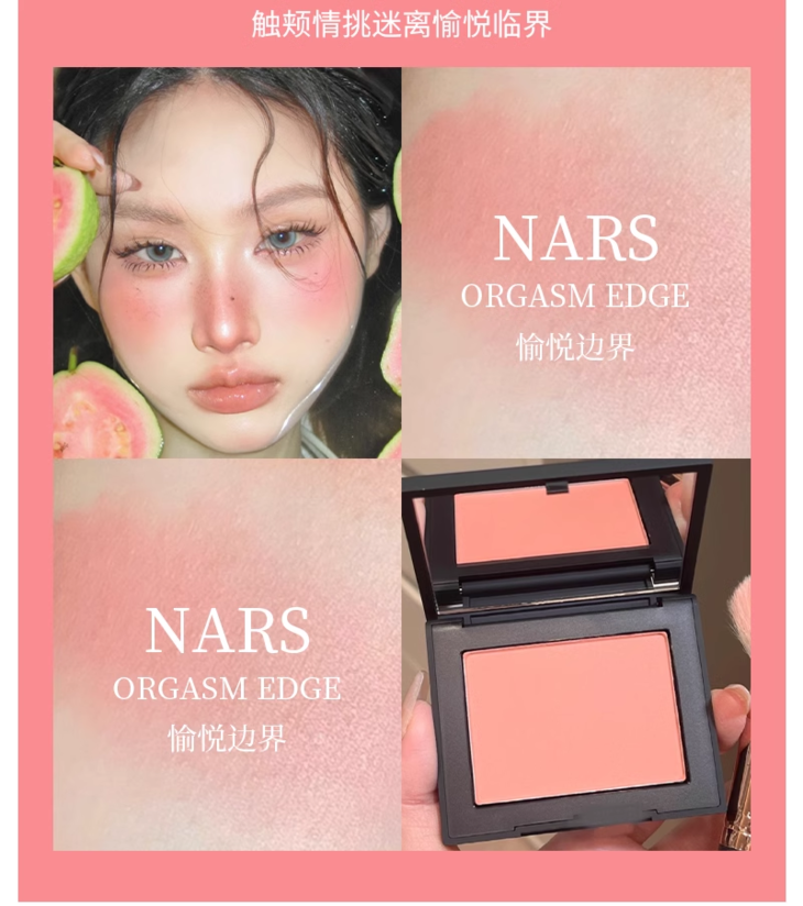 👑NARS 腮红#ORGASM EDGE ✨NARS腮红在今年重磅升级了!磨砂质感外壳不沾指纹 💫粉质细腻,上脸超好晕染、不卡粉、还隐形毛孔✔️ 💞#ORGASM EDGE【愉悦边界】 🩷哑光版的传奇色,更显自然通透,日常也能驾驭,氛围感第一名 🎀熟成蜜桃,温热触颊,情挑迷离,愉悦临界 🍑氛围感半熟蜜桃粉通透饱满,任何肤色都能驾驭