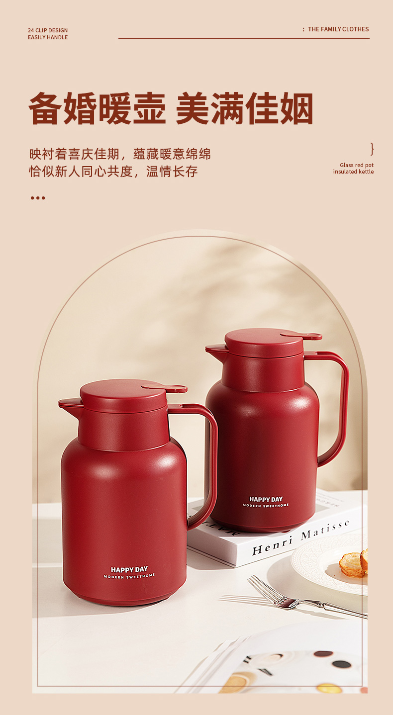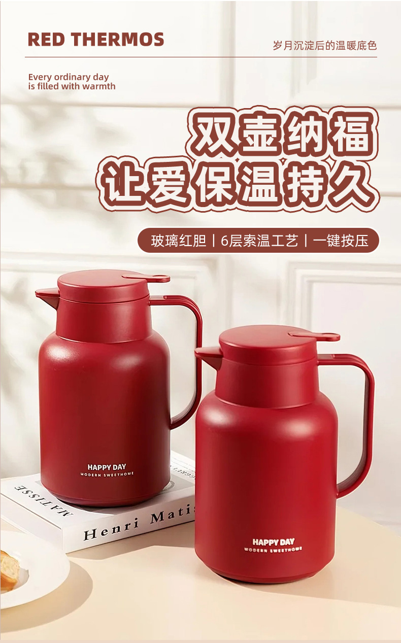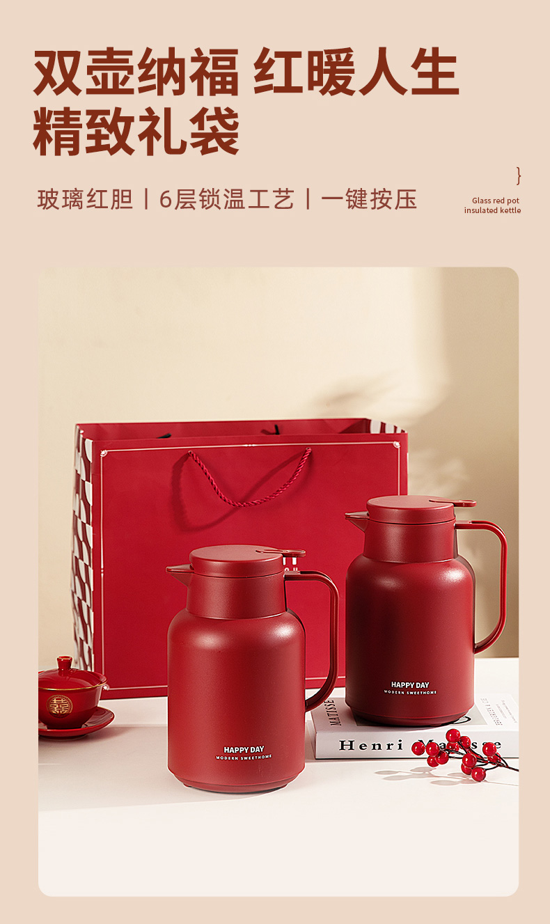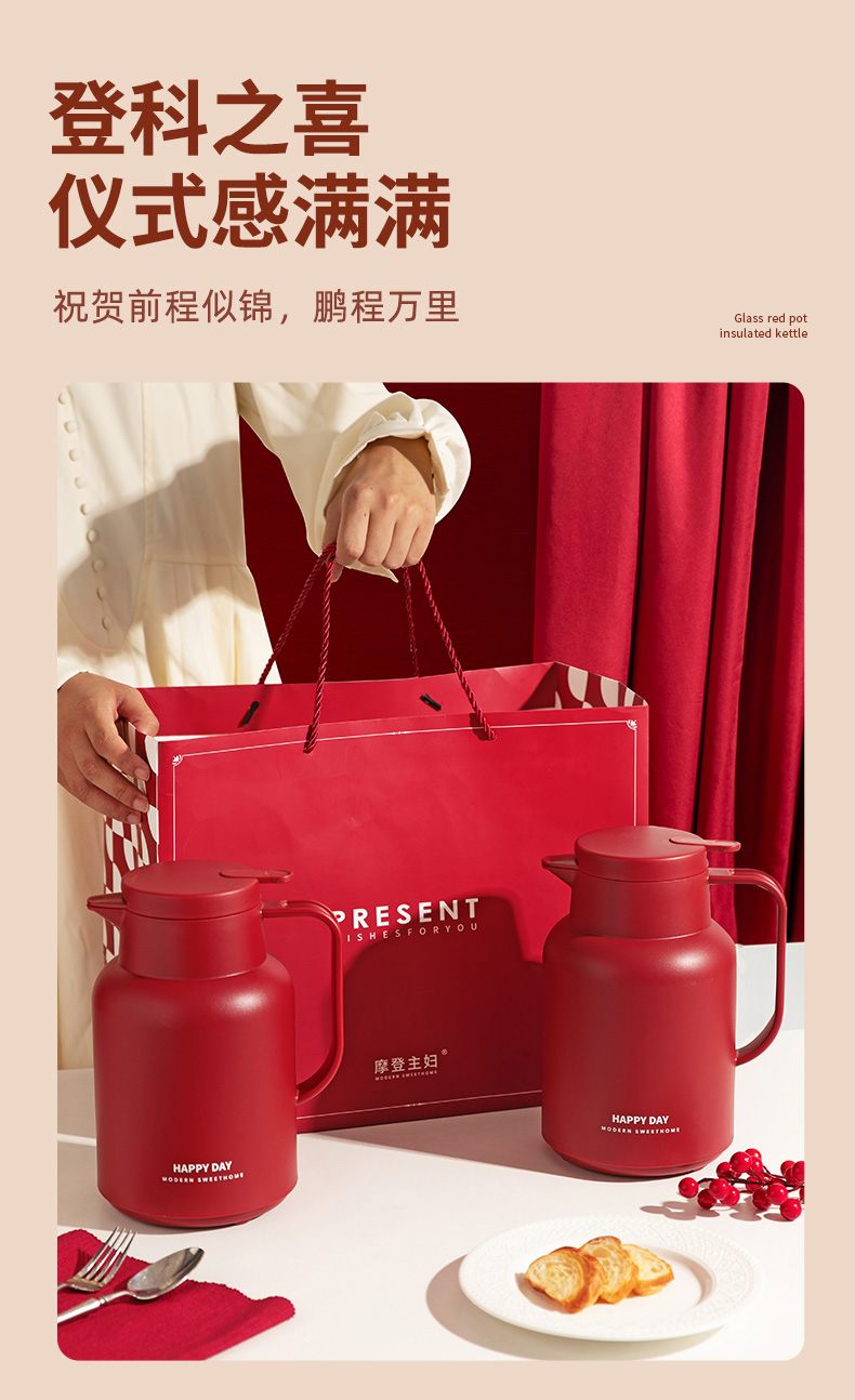 摩登主妇红色保温壶陪嫁物品女方全套水壶结婚一对新婚礼物热水瓶