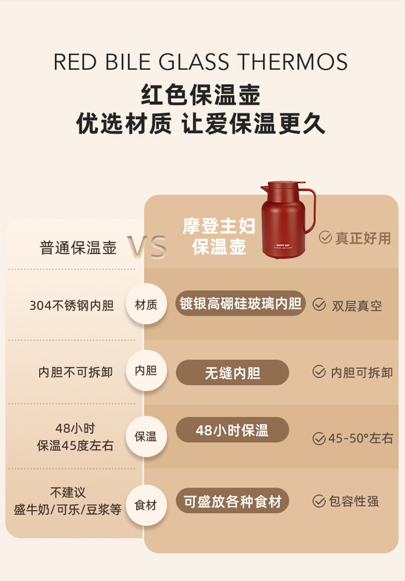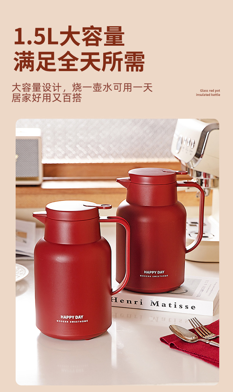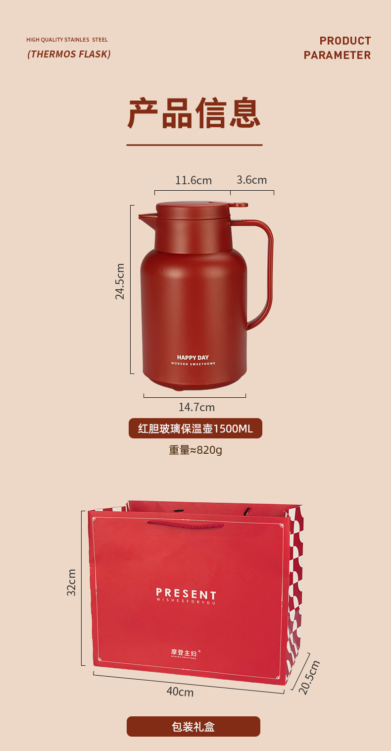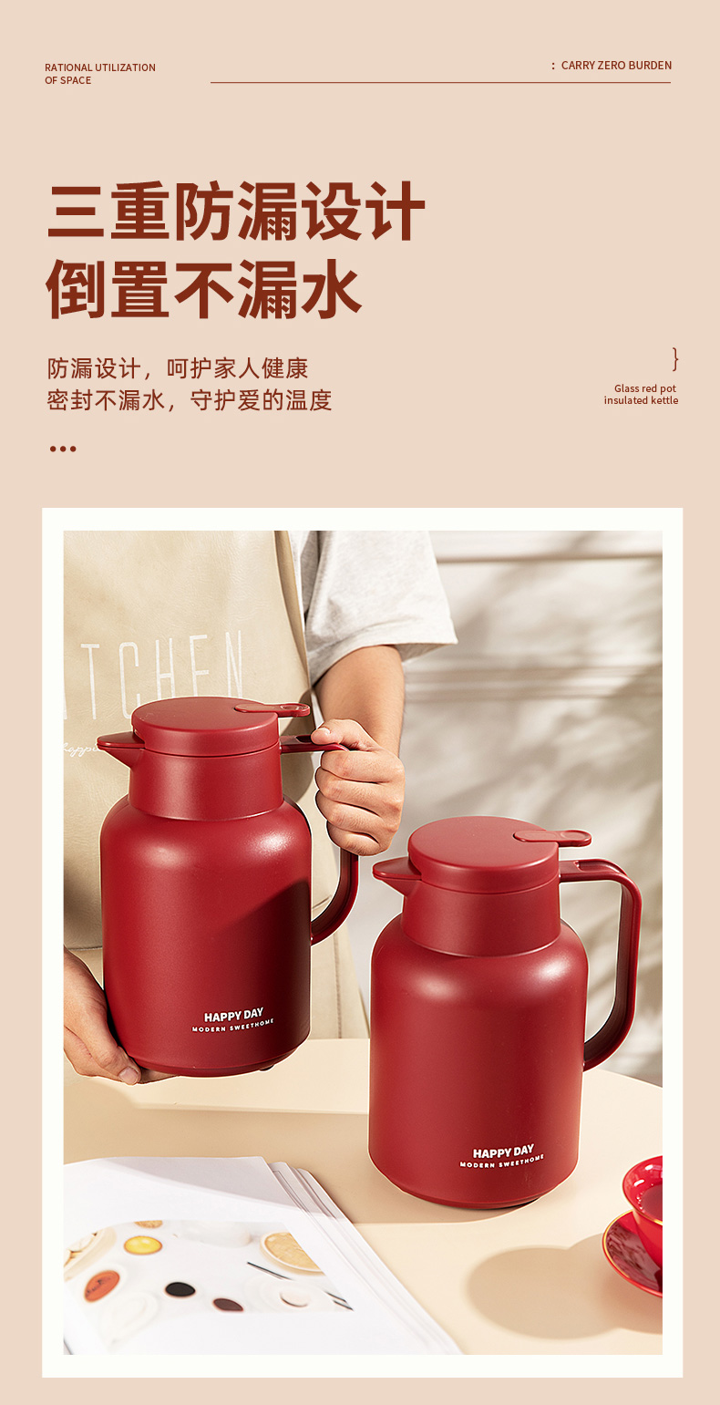 摩登主妇红色保温壶陪嫁物品女方全套水壶结婚一对新婚礼物热水瓶