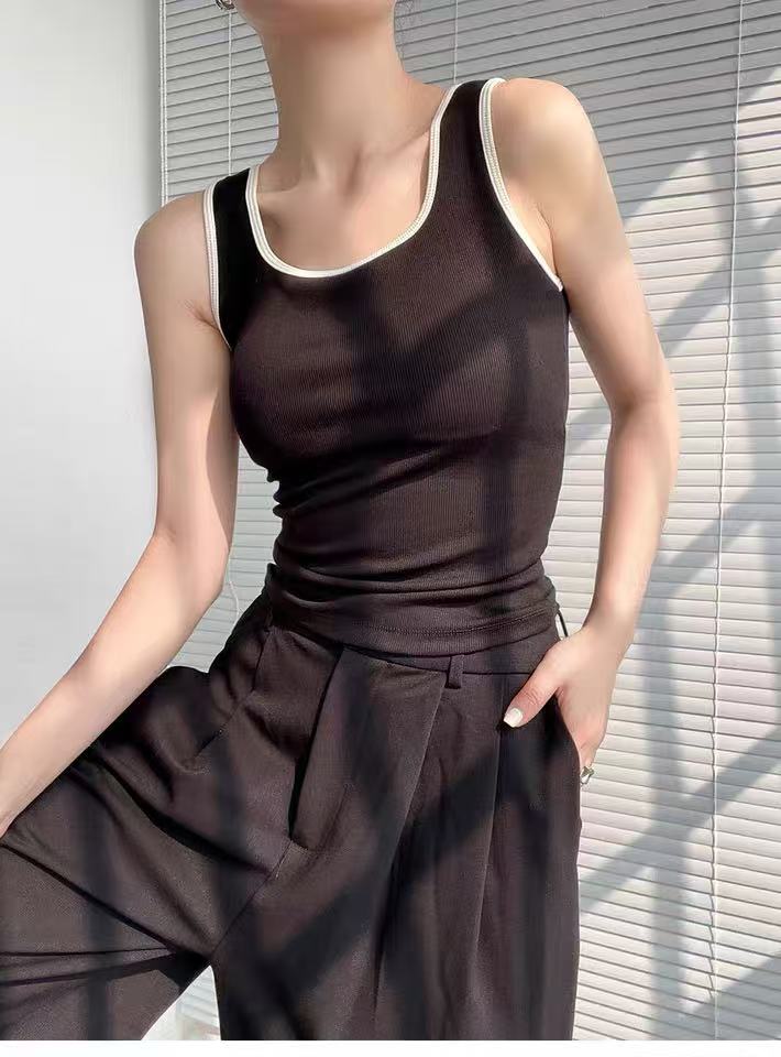 女王节抢购价-不支持退→【自营】🔥内里磨毛绒【超暖美背】有胸垫~(拼色边)一体杯螺纹棉美背背心-喜出