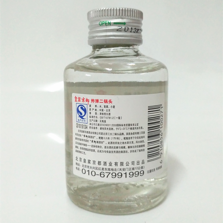 【推荐】皇家京都 ZD二锅头 56度 清香出口型白酒 100ml*20瓶