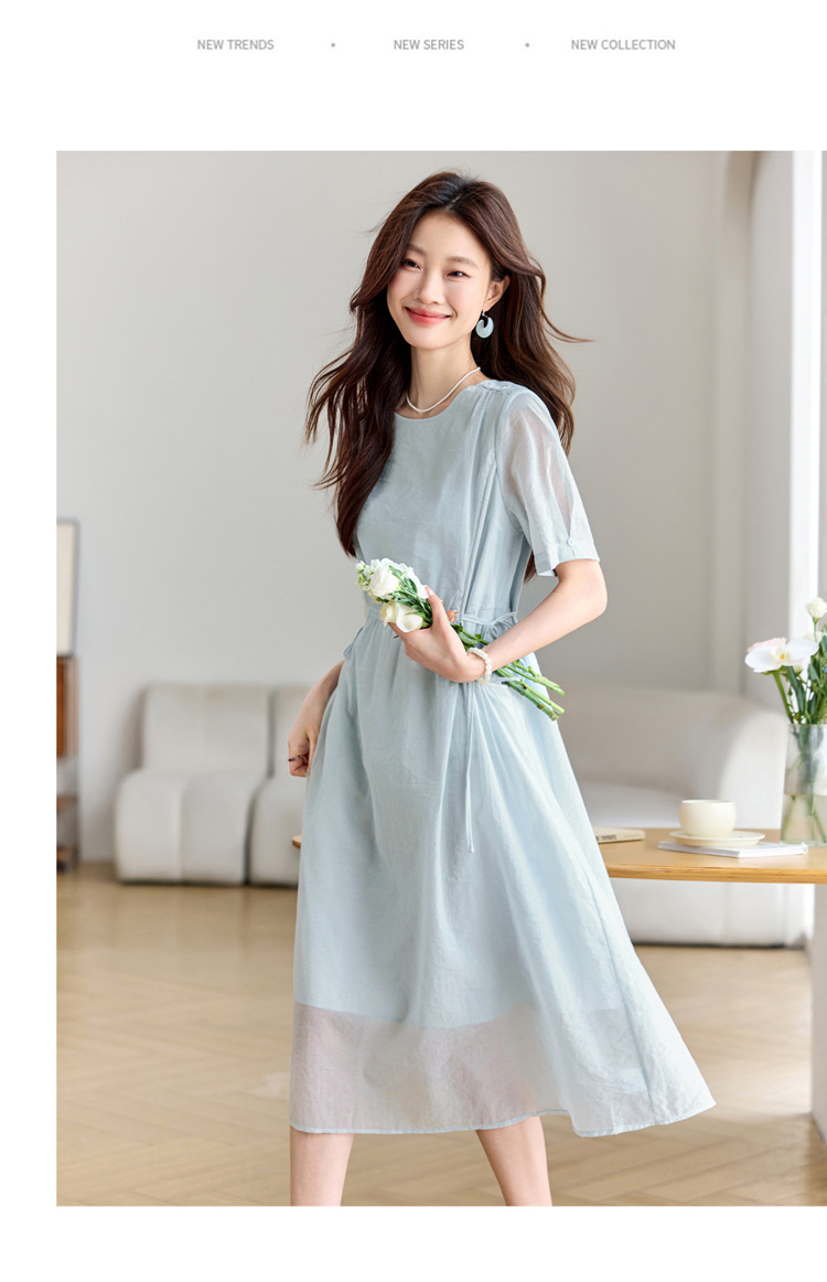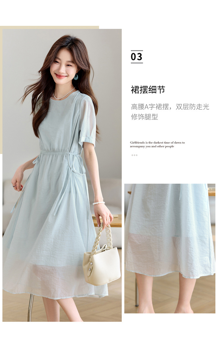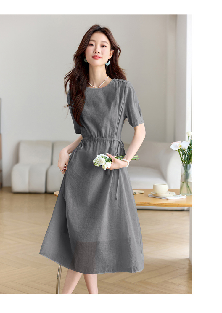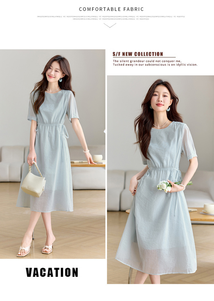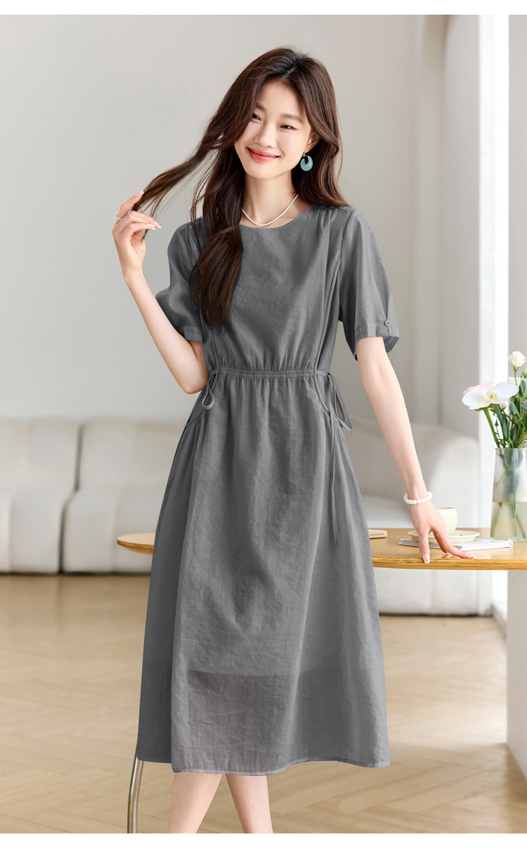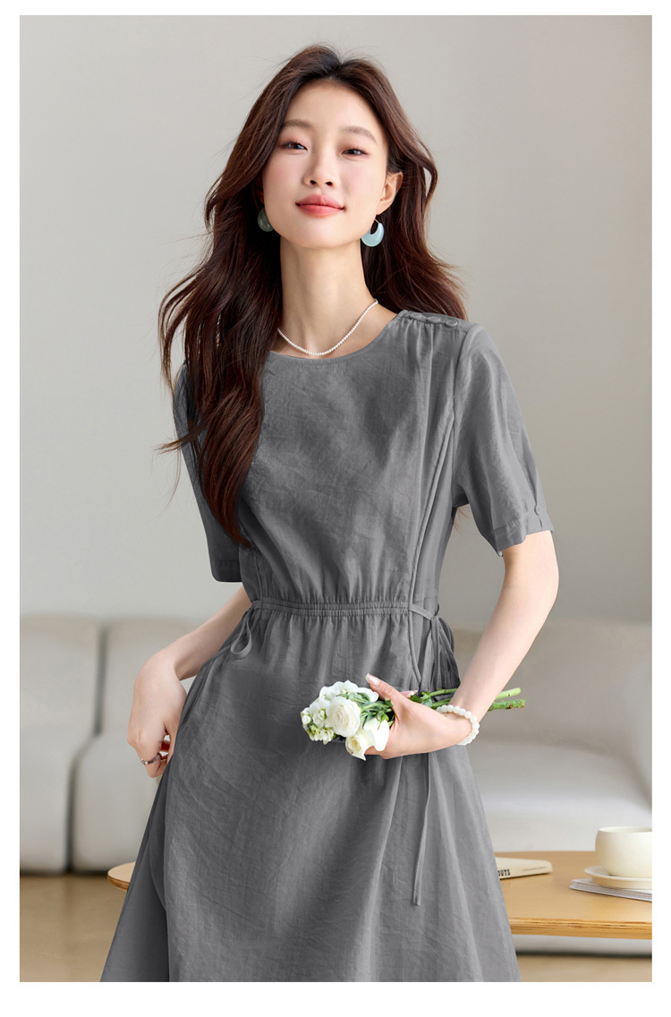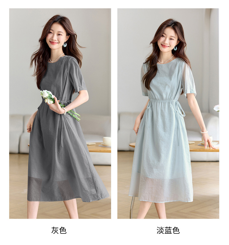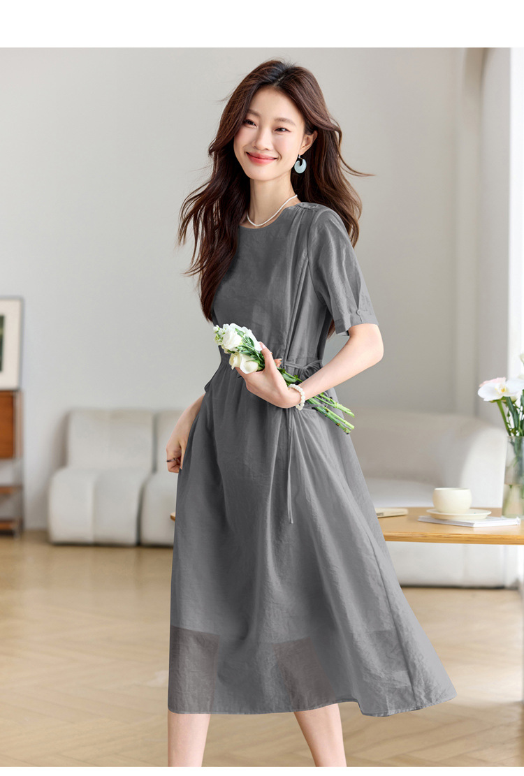 2025夏季新款时尚洋气减龄休闲百搭短袖中长裙连衣裙MUZL88055