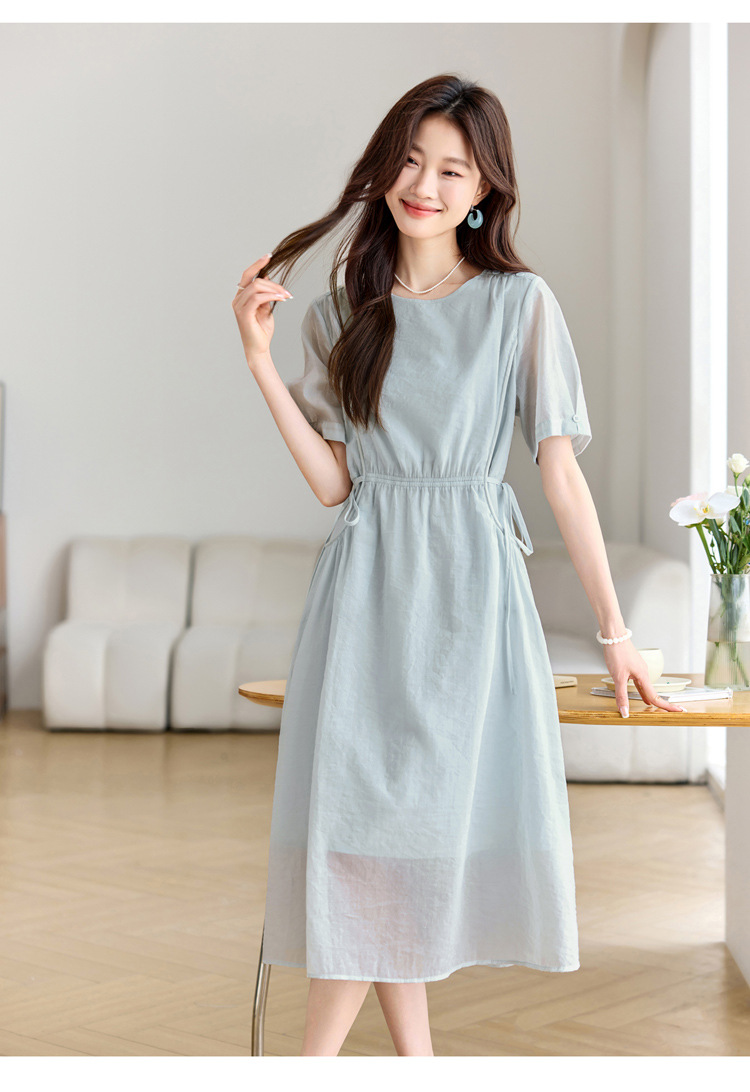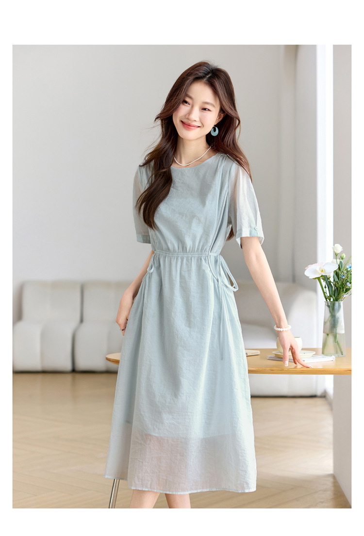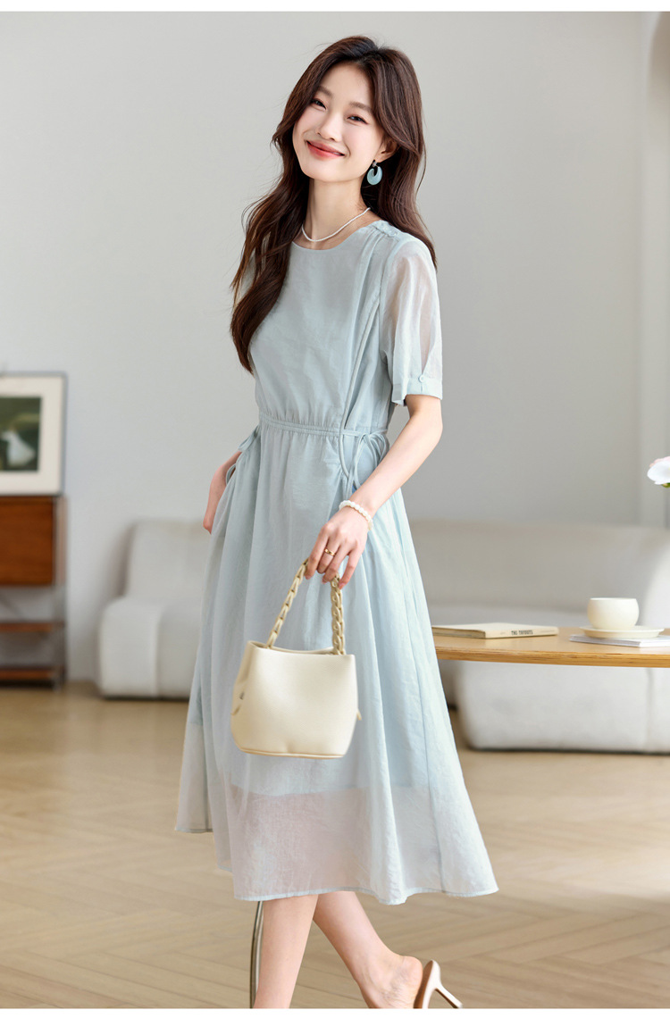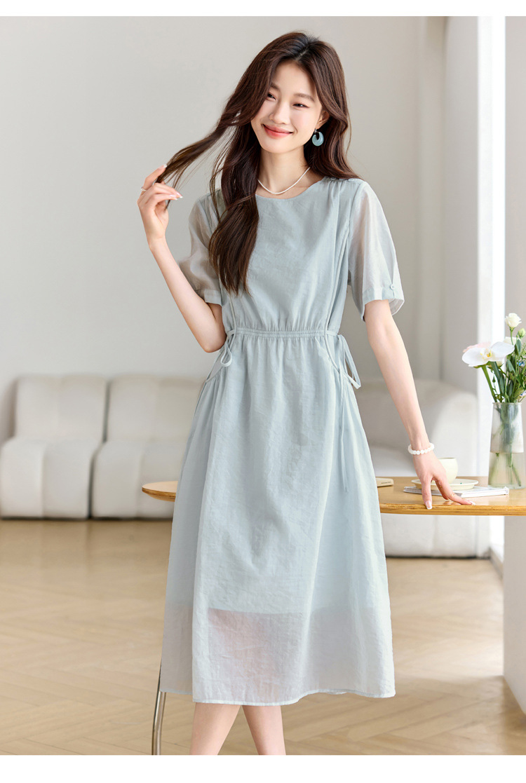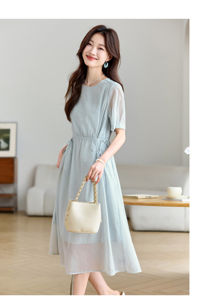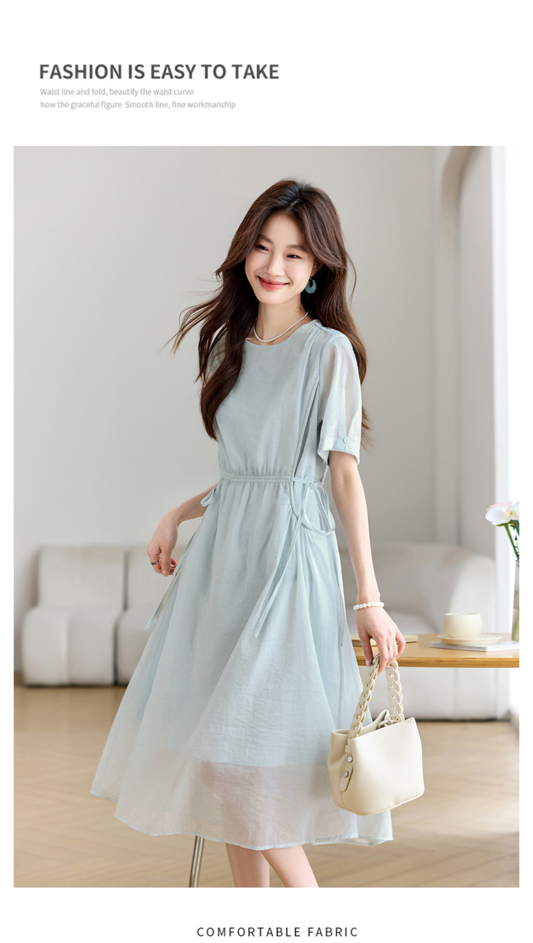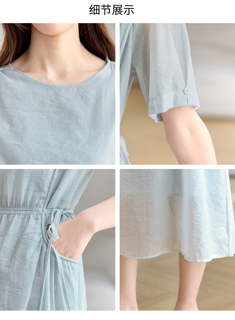 2025夏季新款时尚洋气减龄休闲百搭短袖中长裙连衣裙MUZL88055