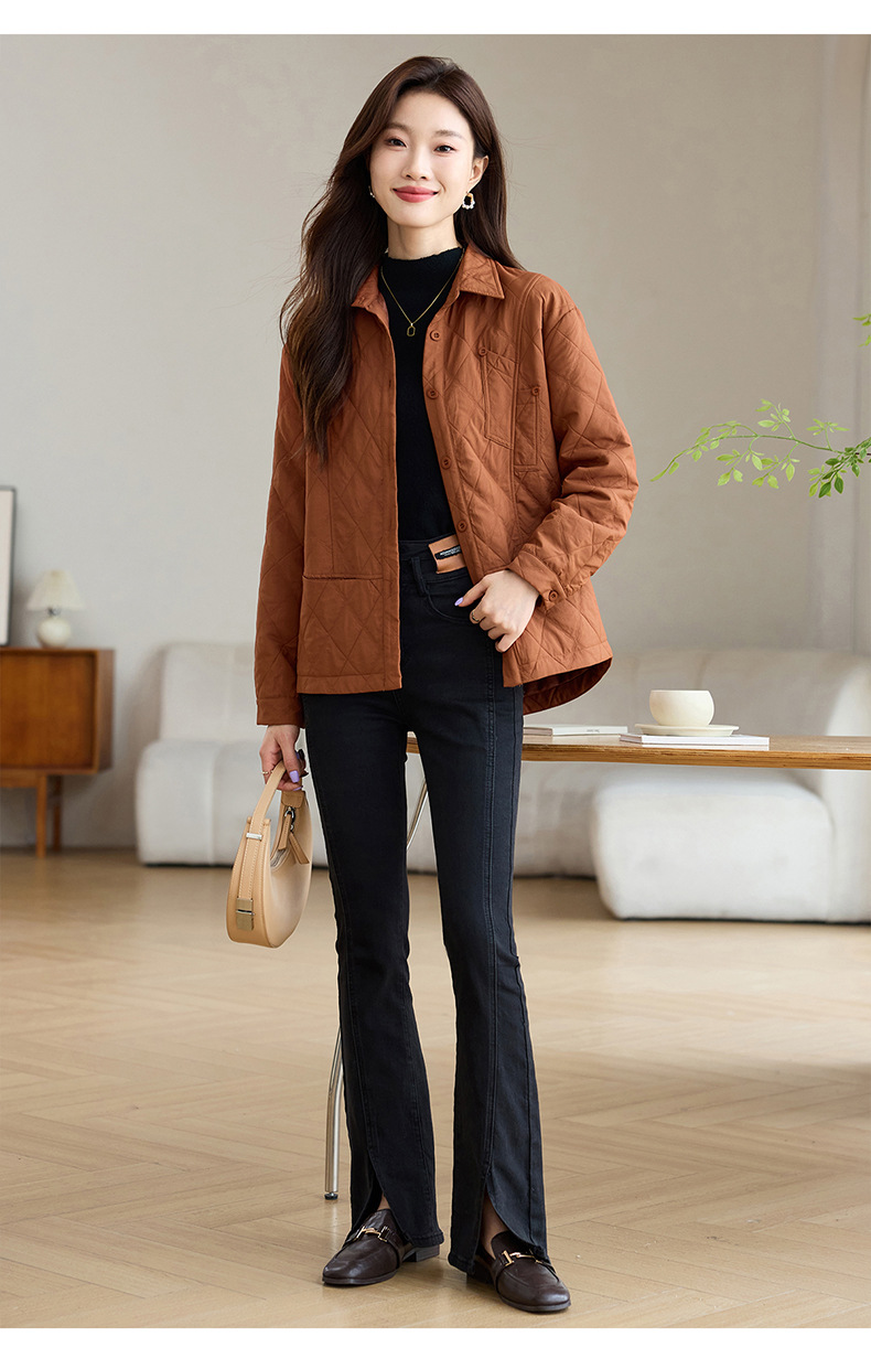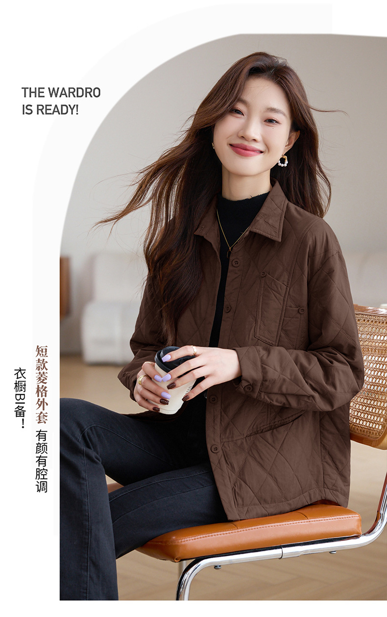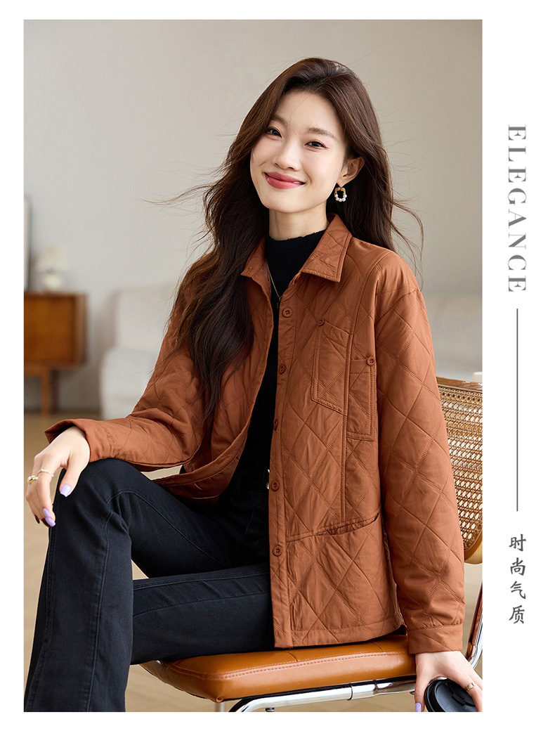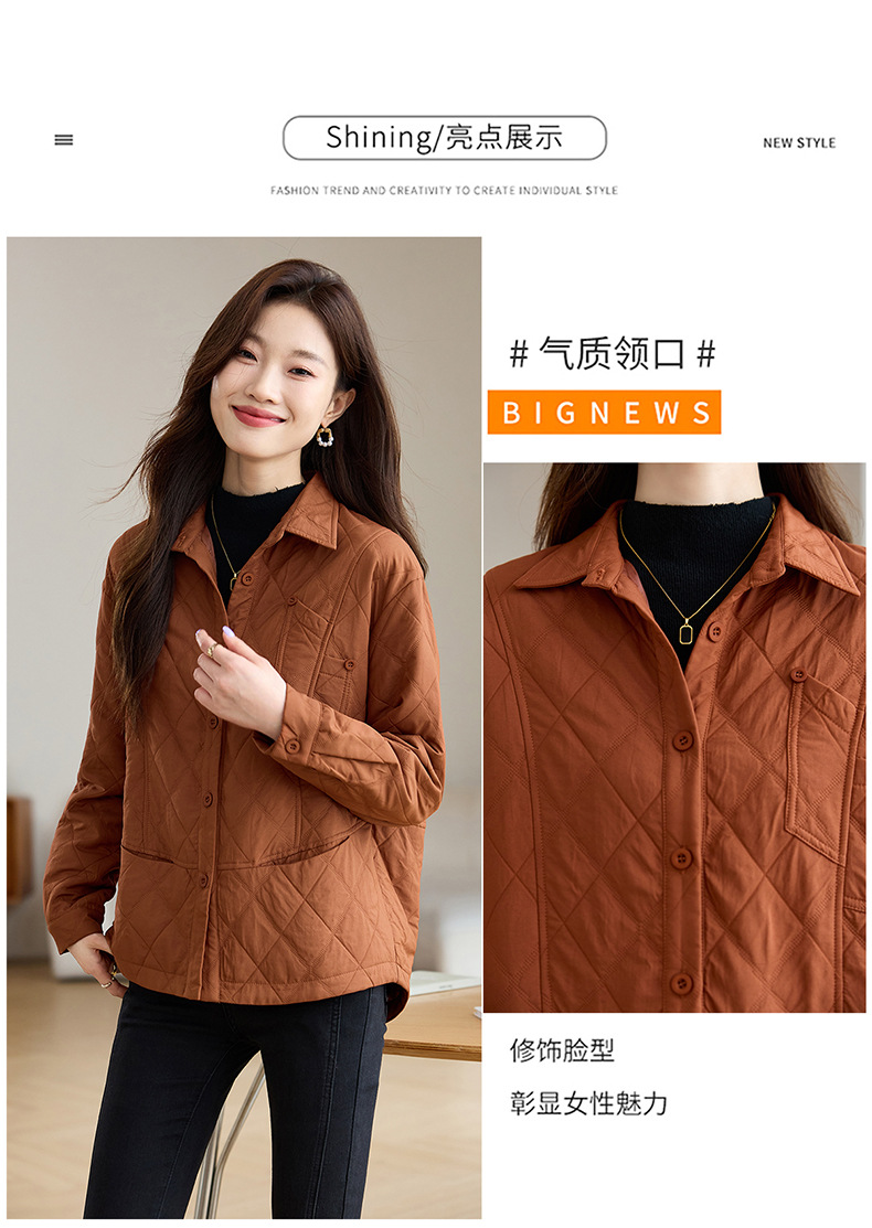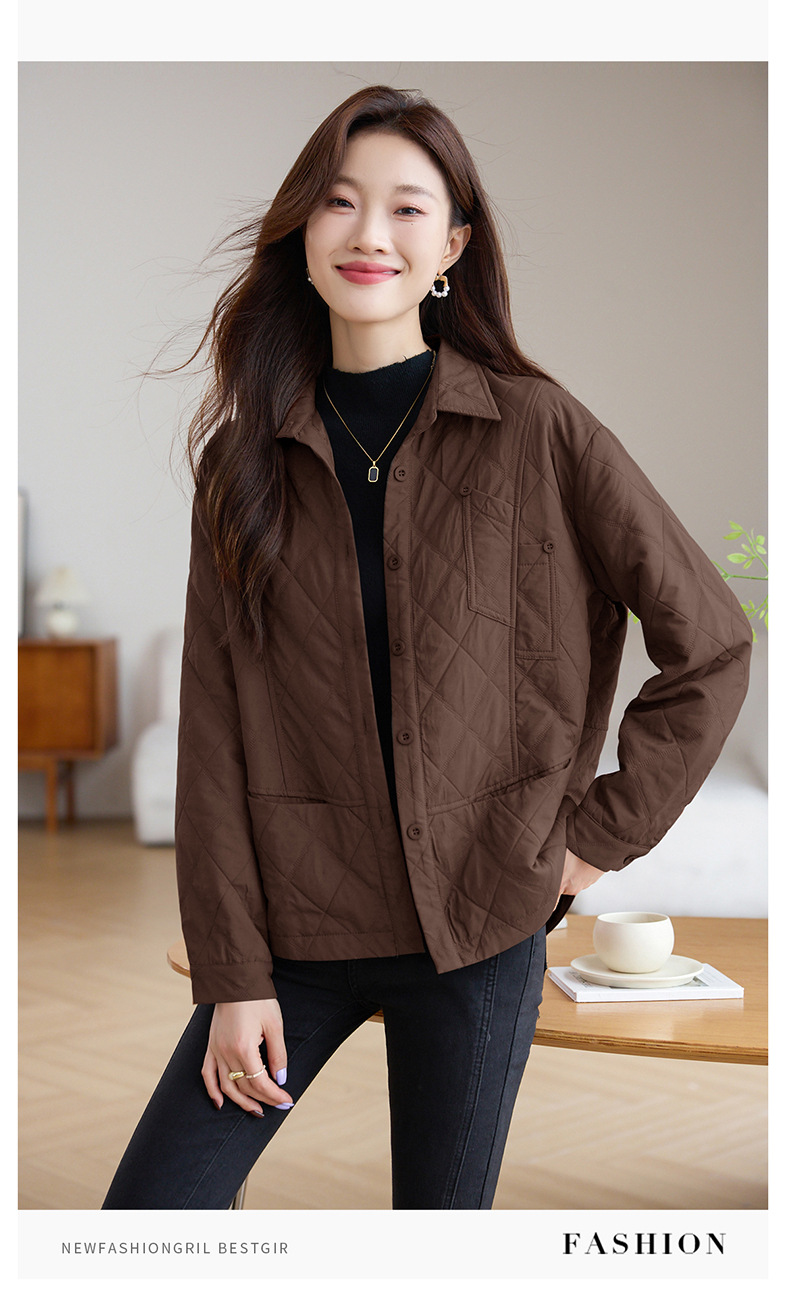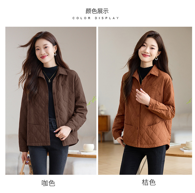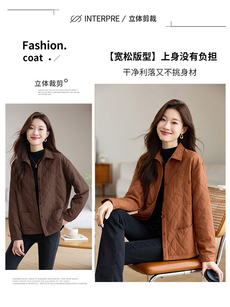 丁摩 春秋新款外套长袖夹棉薄款春秋翻领百搭短款上衣外搭遮肚子女6ZF-8682