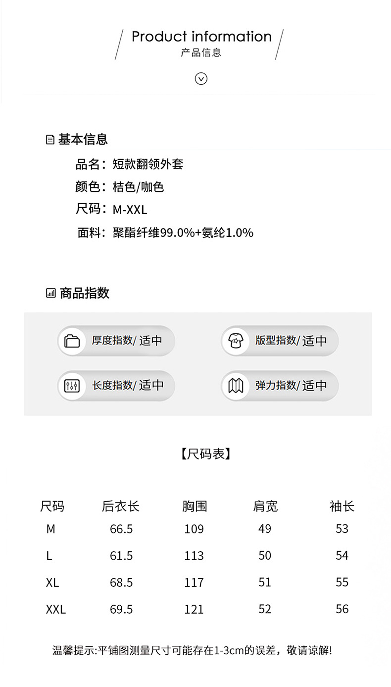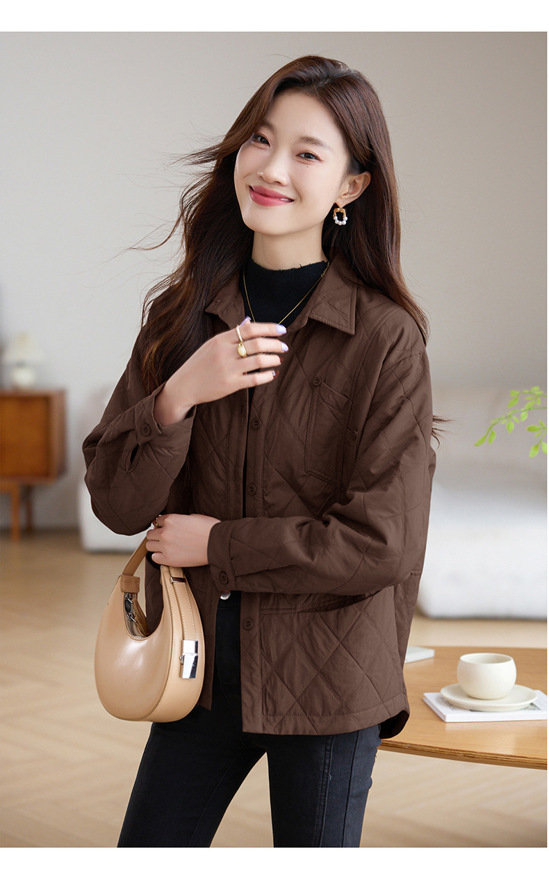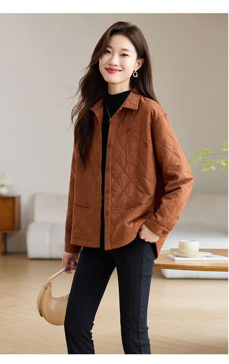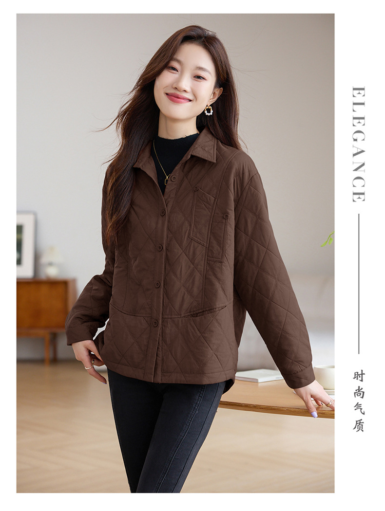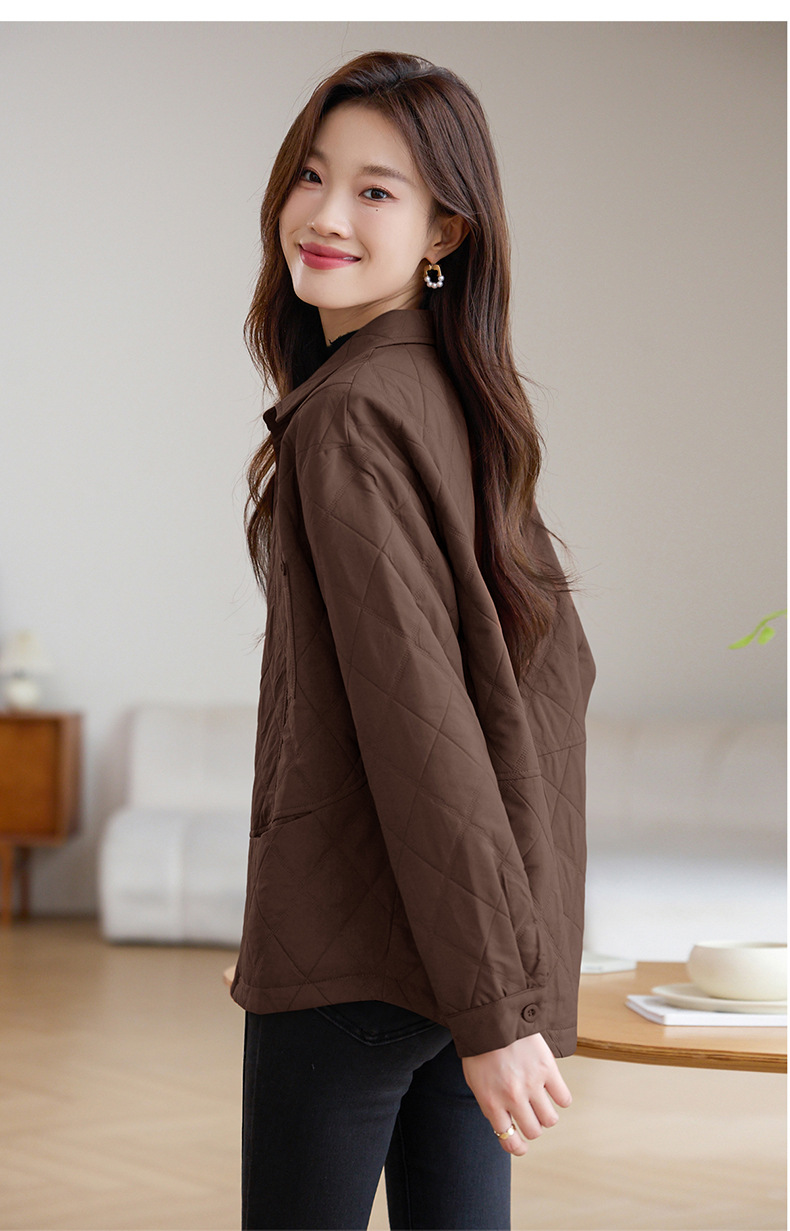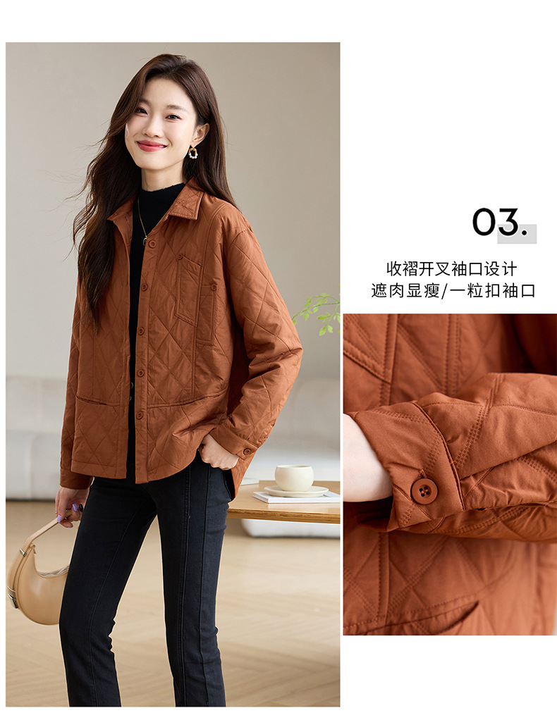 丁摩 春秋新款外套长袖夹棉薄款春秋翻领百搭短款上衣外搭遮肚子女6ZF-8682