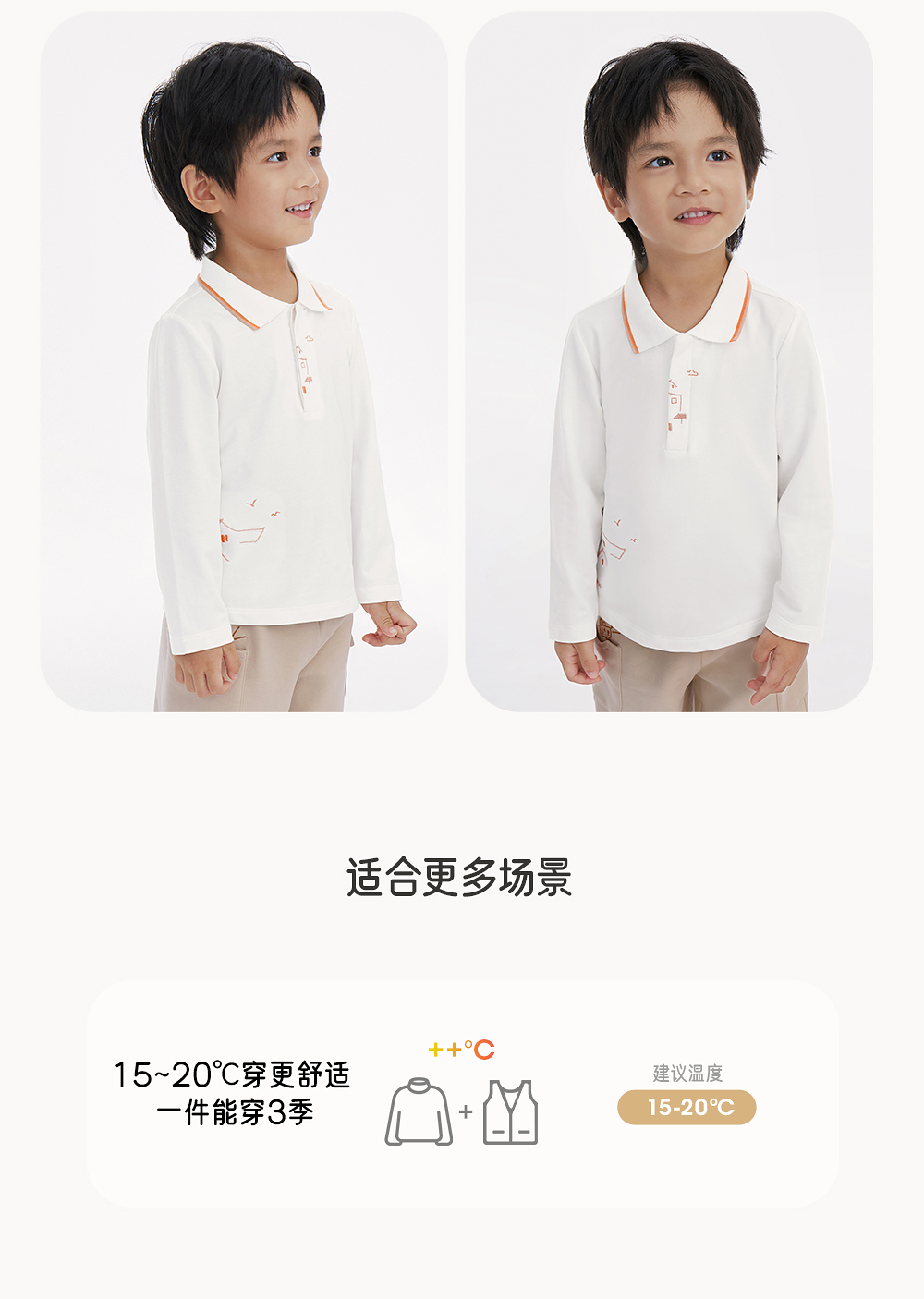 【商场同款】英氏儿童POLO衫上衣秋季新款男童翻领长袖T恤童装