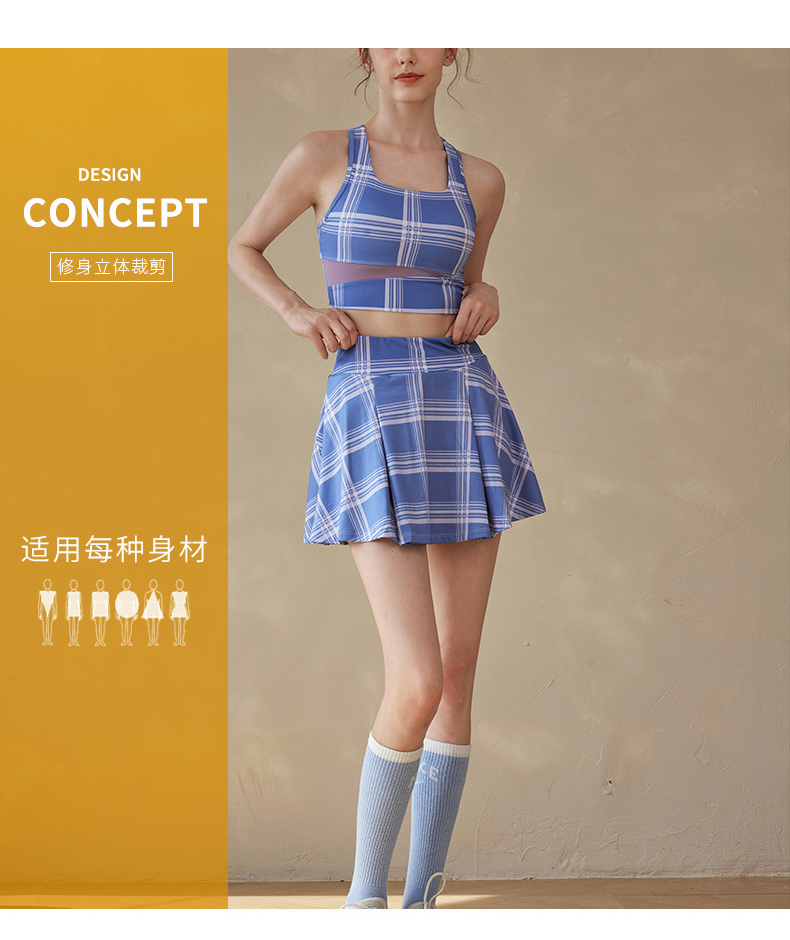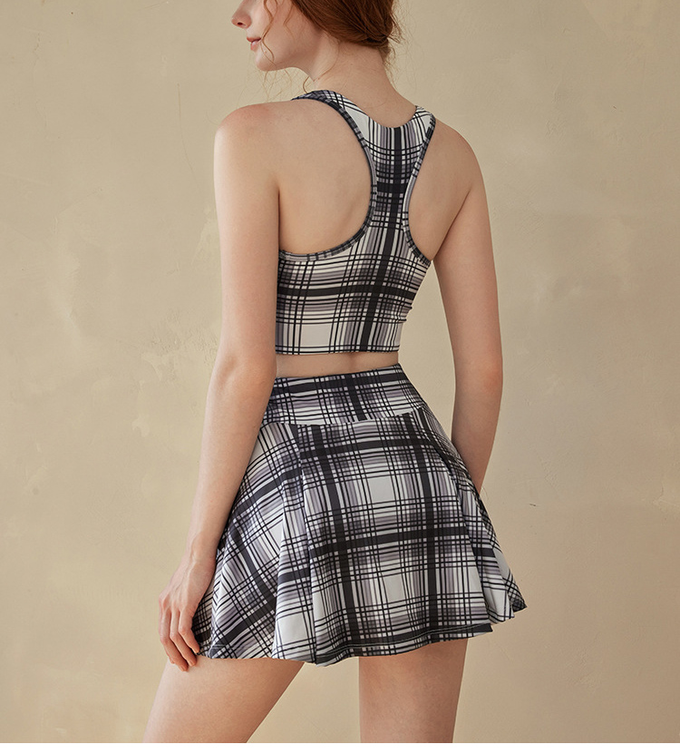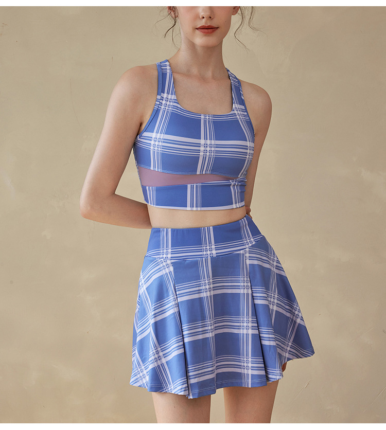 跃牌【洛水之神系列】撞色印花瑜伽运动背心格子健身文胸固定胸杯美背749