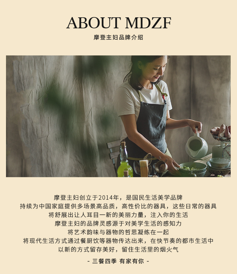 - 摩登主妇的创始人娜娜,是一个普通的80后妈妈,因为一个简单而执着的想法,要让“中国制造”的优质商品走进国内主妇们的生活,摩登主妇的品牌页由此而来。