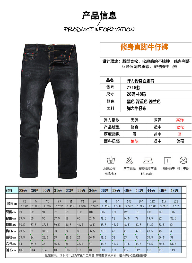 【新款DQ】大依优型大码牛仔裤男直筒修身大码中腰男式牛仔裤弹力简约商务长裤男休闲