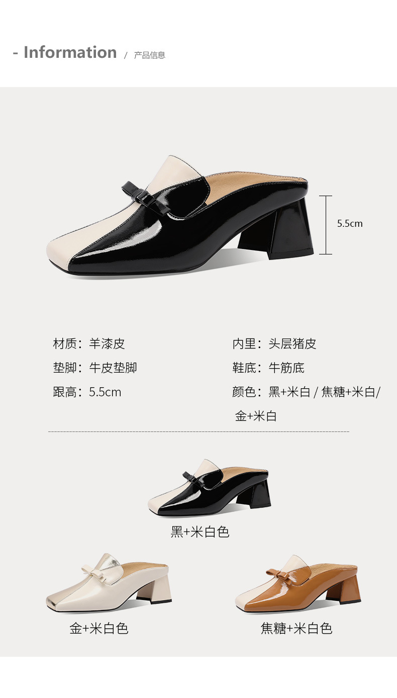 粗跟方头凉鞋,时尚百搭包头中跟凉拖鞋BY-H1979