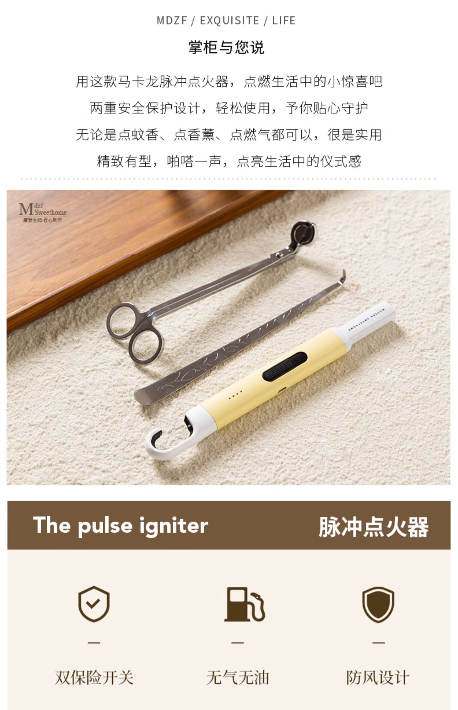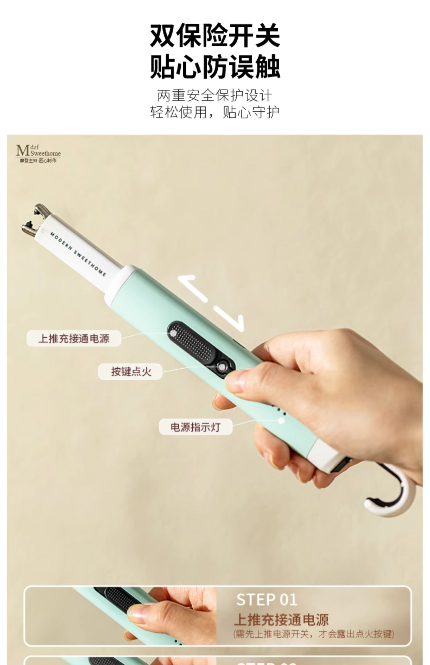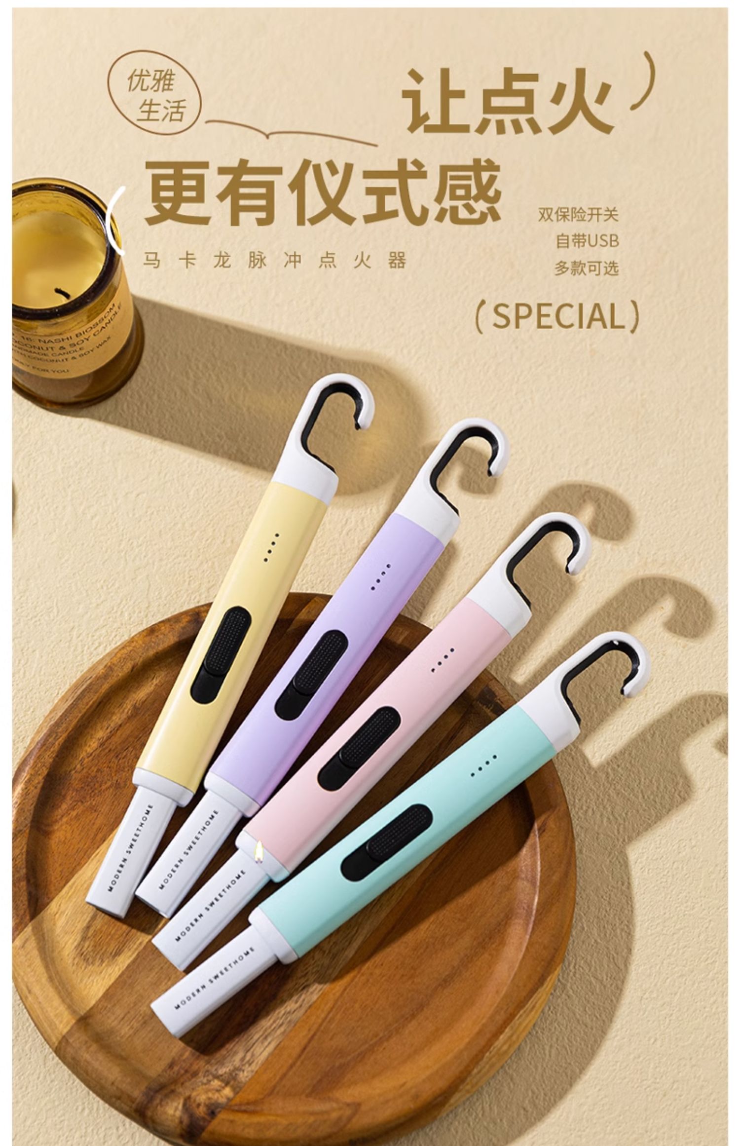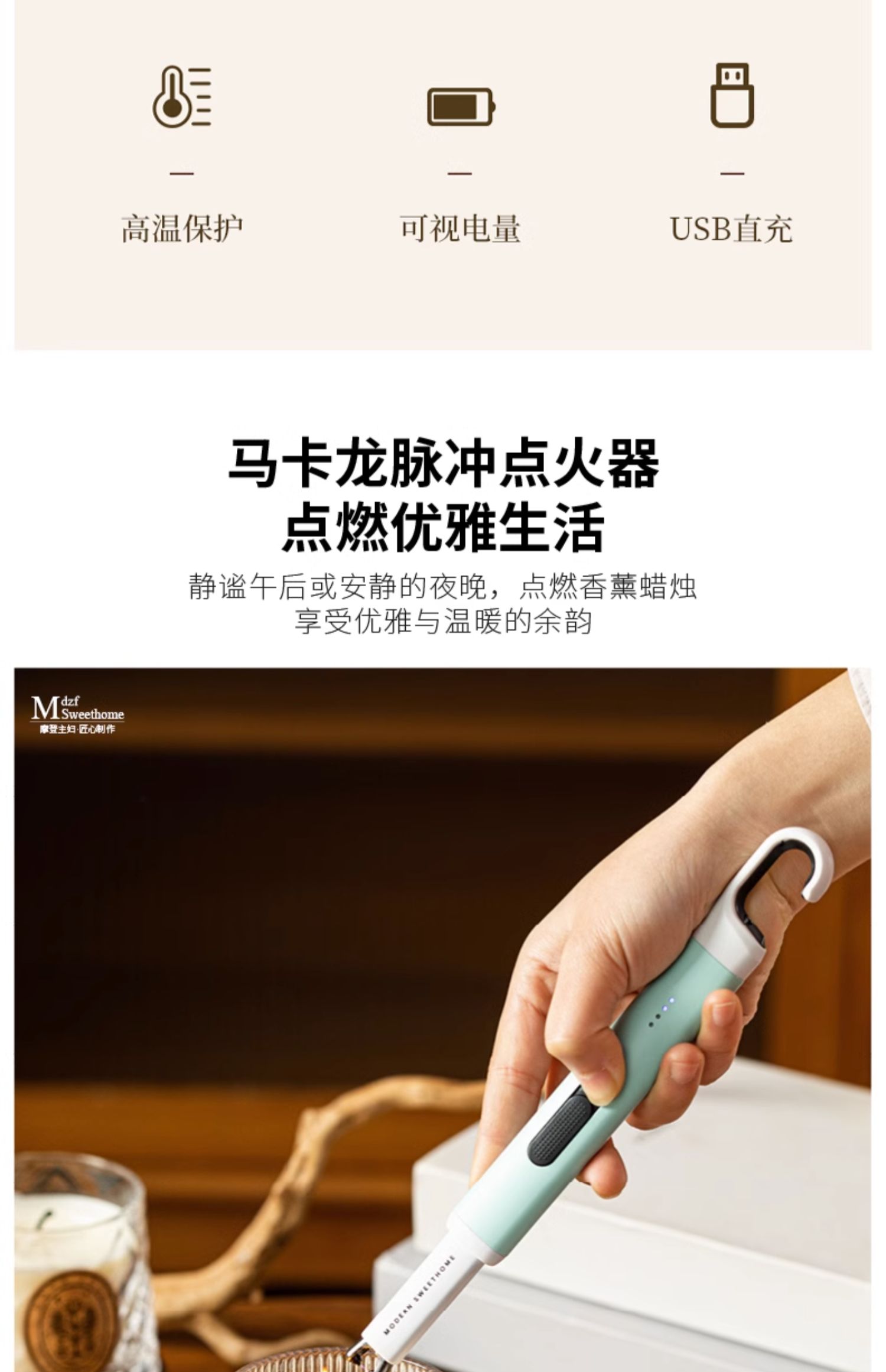 摩登主妇香薰蜡烛点火器电子脉冲点火枪点火棒点香器打火机长手柄