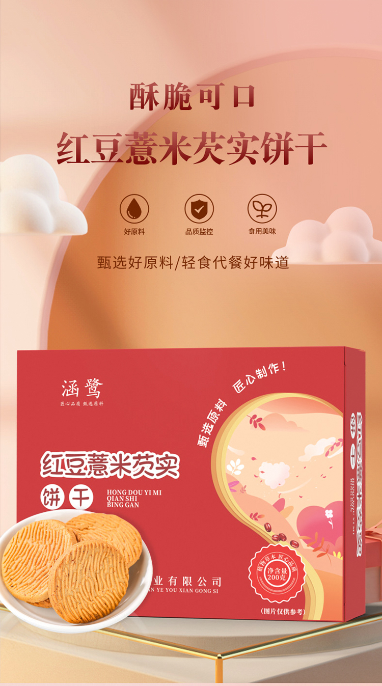 【轻食代餐好味道】红豆薏米芡实饼干赤小豆芡实薏米茶方便即食休闲代餐零食