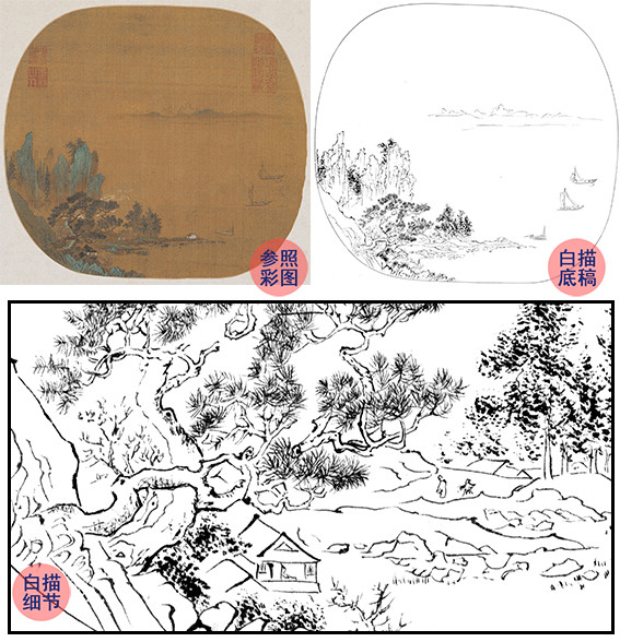 宋画山水小品白描底稿-佚名-《澄江碧岫图》-多种白描尺寸可选-GS37