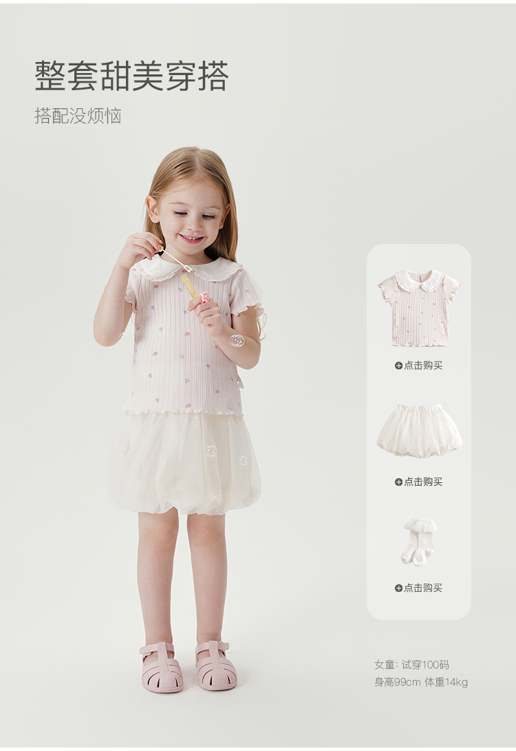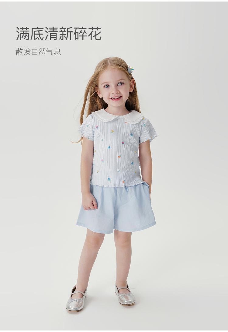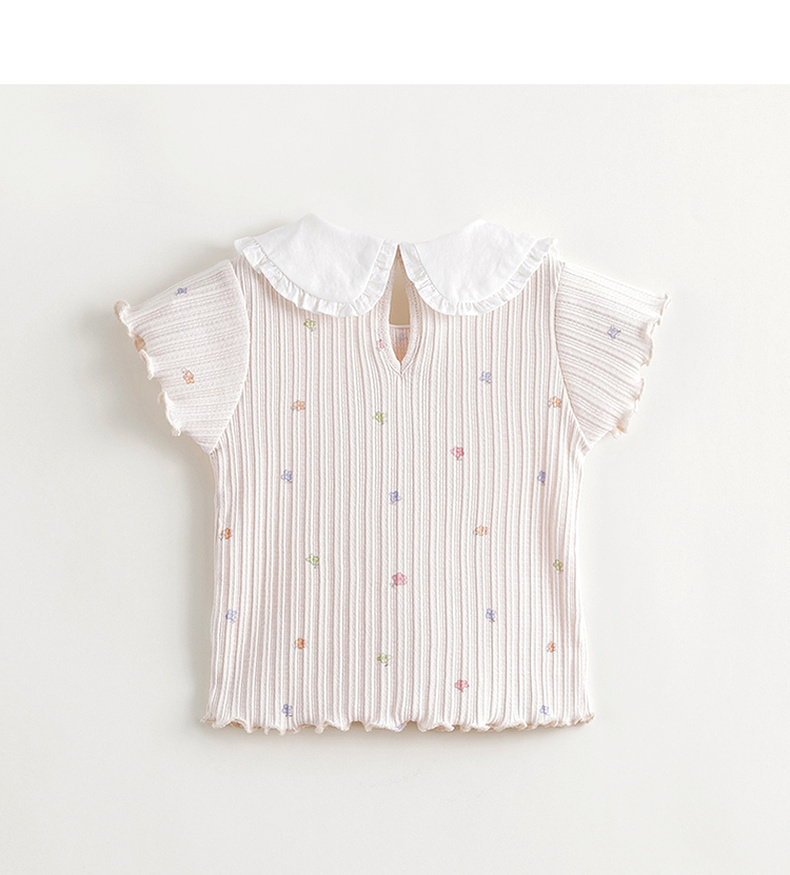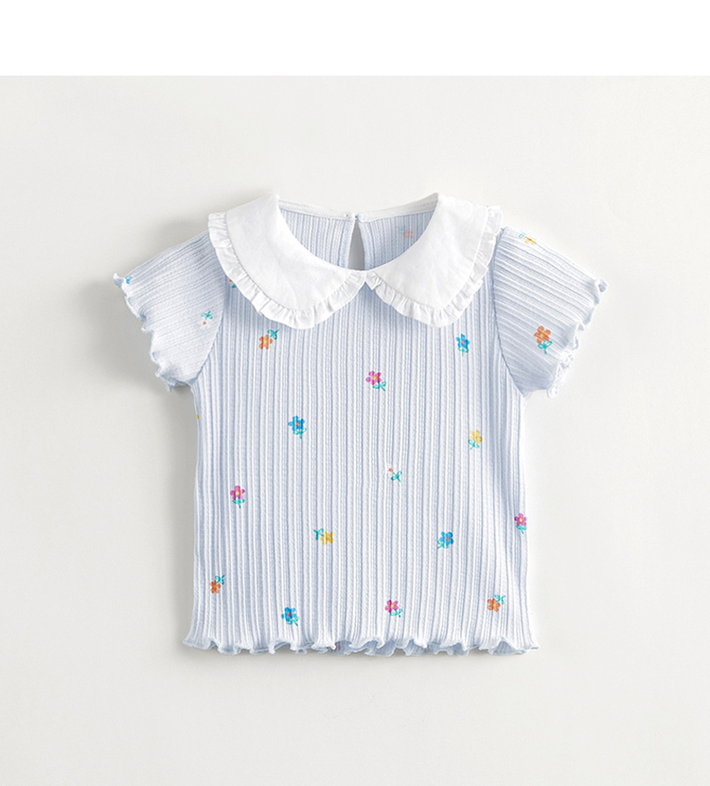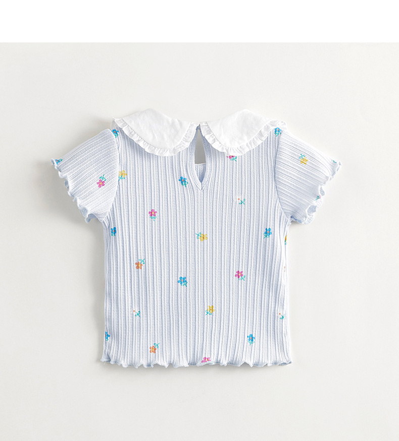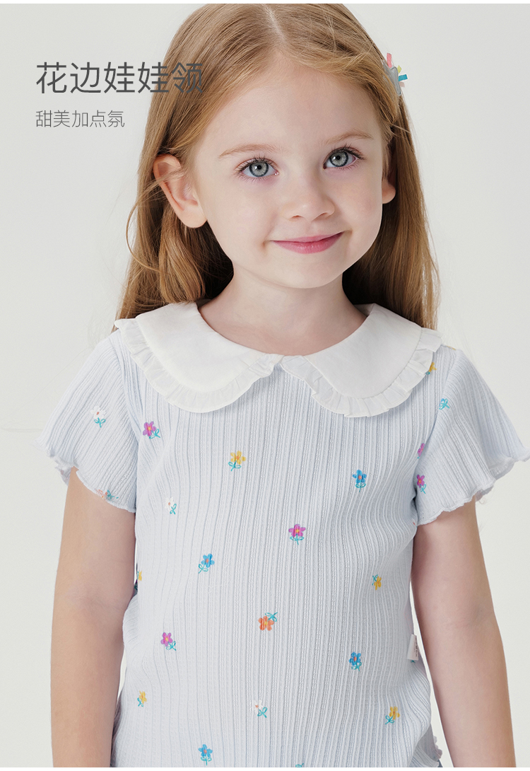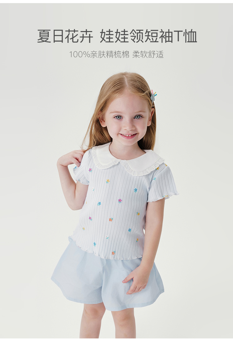 马克珍妮女童满底花卉娃娃领短袖T恤儿童纯棉上衣夏装新款240760